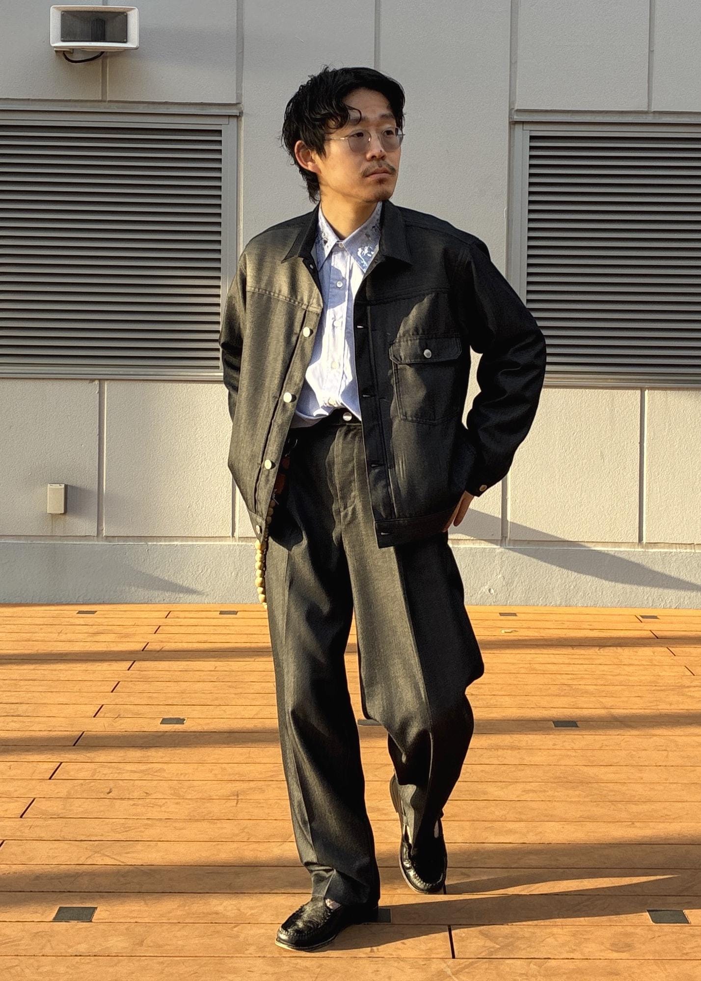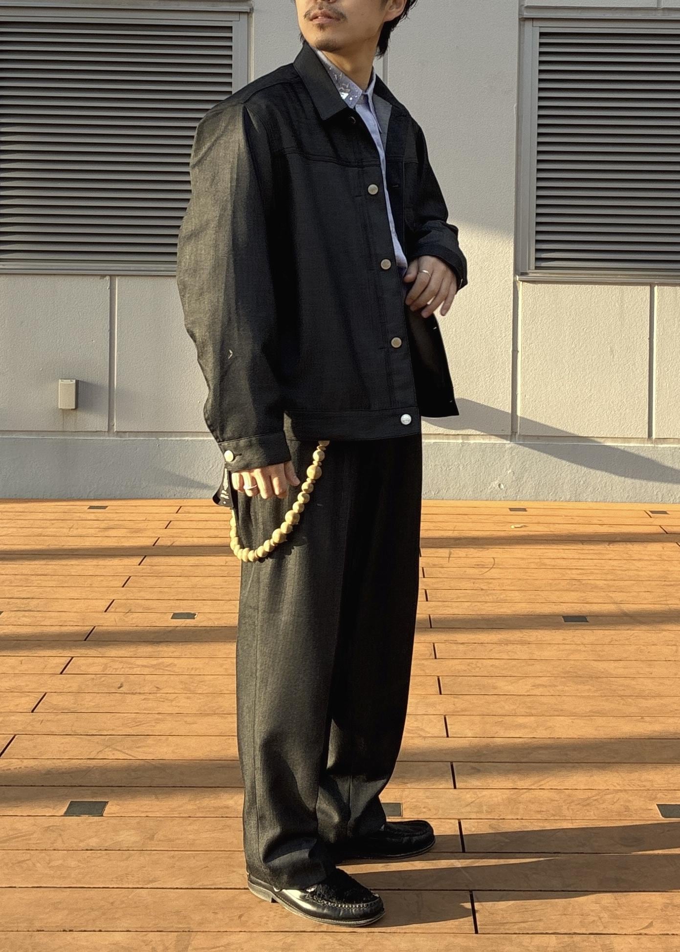 個人的にもお気に入りでリアルバイしているウールデニムのセットアップでのスタイリングです!