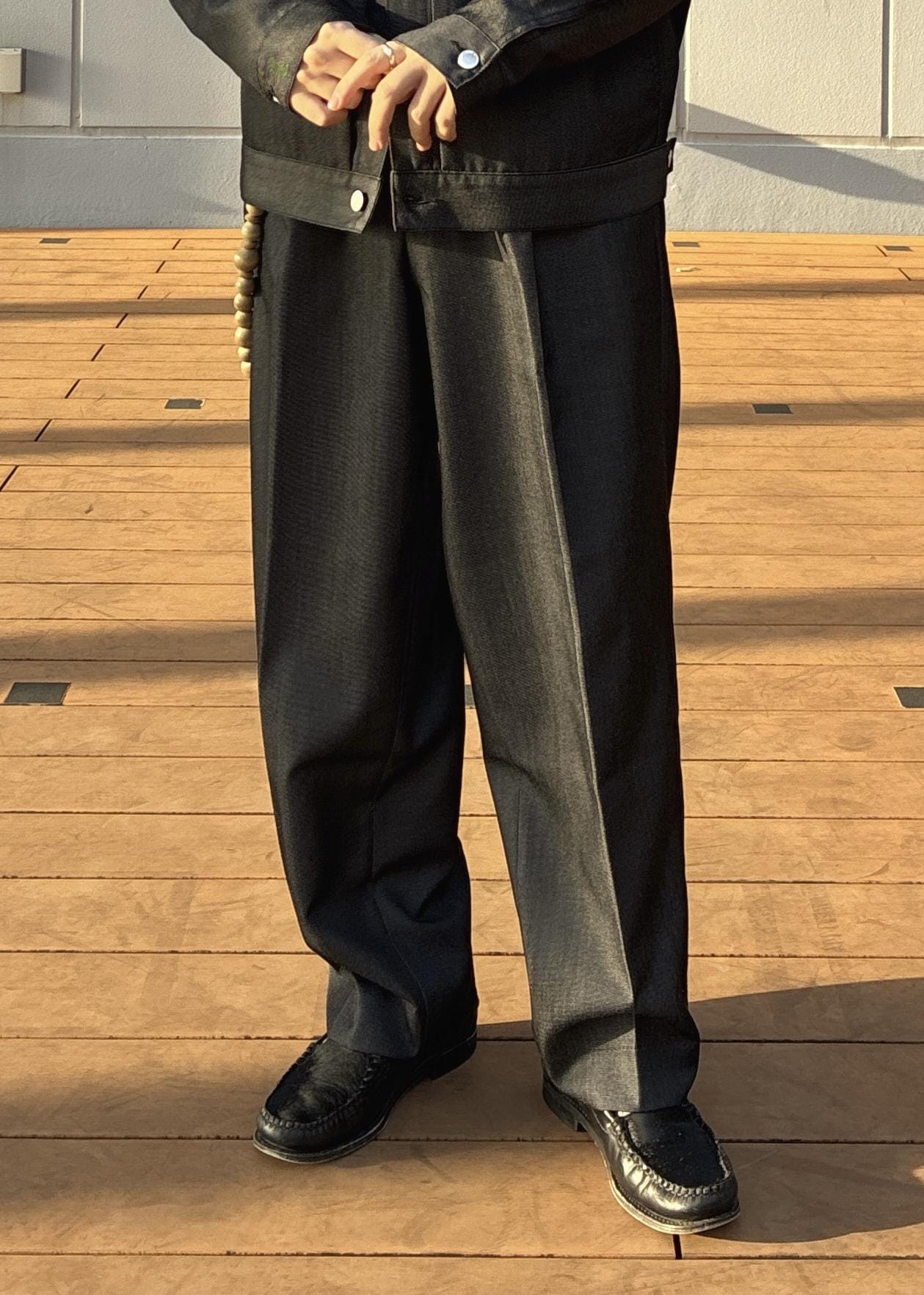 ADAM ET ROPÉ HOMME【NIKKE】ワイド イージー デニム スラックス / ADAM ET ROPE' JEANS -GRID-ブラック系 / M¥24,200レビューウエスト部分はゴム仕様になっており、ウエストサイズは幅広い方に着用いただけます。ウールデニムなので、デニム要素としてカジュアルなスタイリングにはもちろん、素材の美しさからスラックス要素として綺麗めなスタイリングにも合わせることができる、ハイブリッドなパンツとなっております。