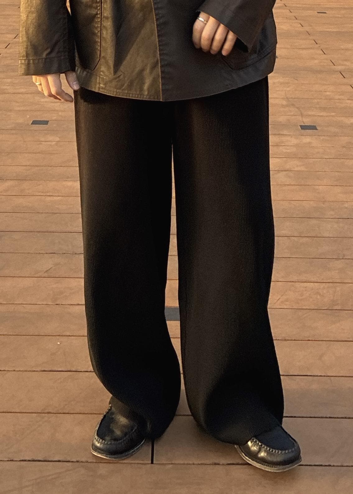 ボトムスはニットパンツで柔らかさを加えてあげるくらいのバランスがおすすめです◎