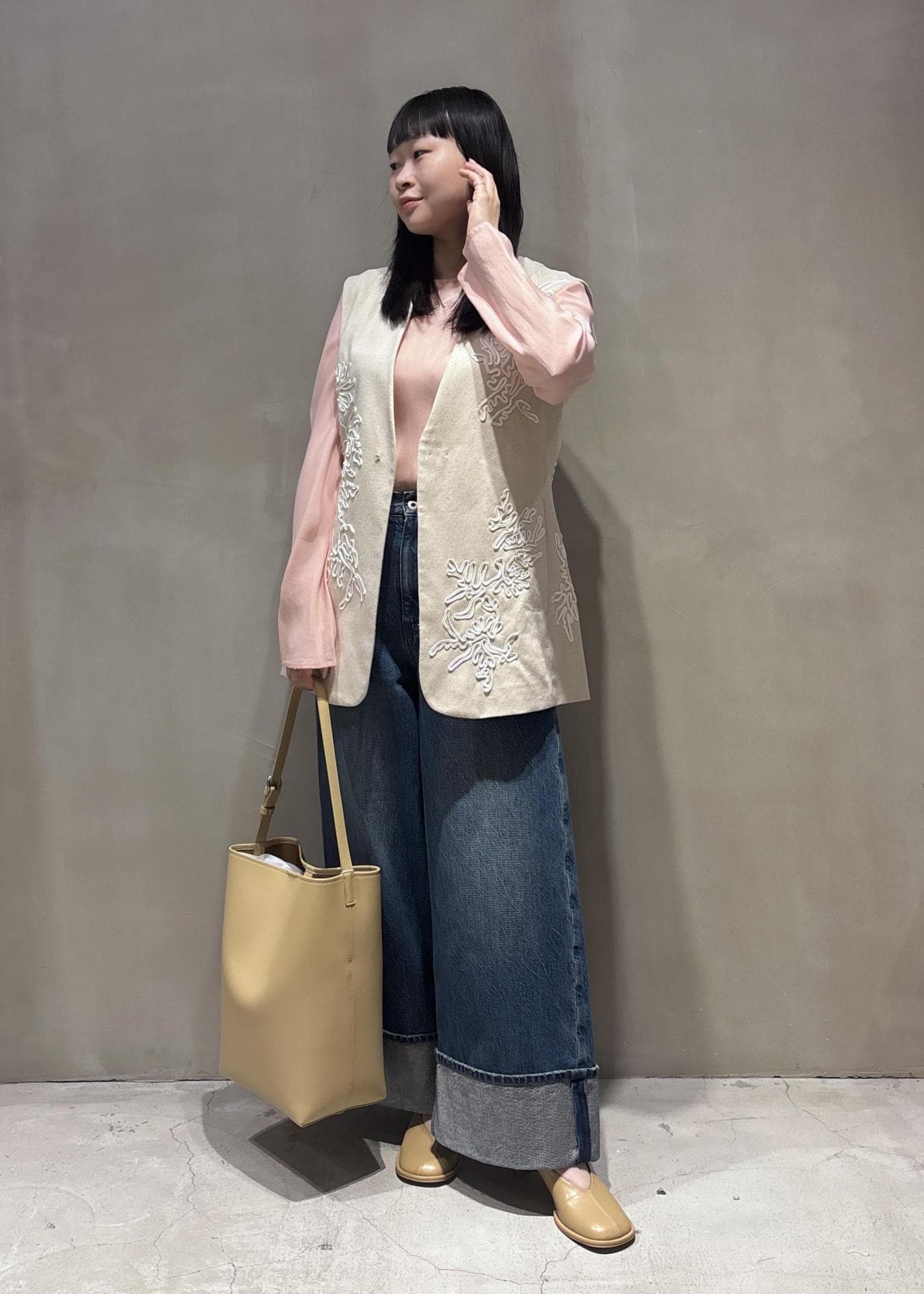 今回は新作のエンブロイダリージレを使ったお出かけコーデを作りました♪
