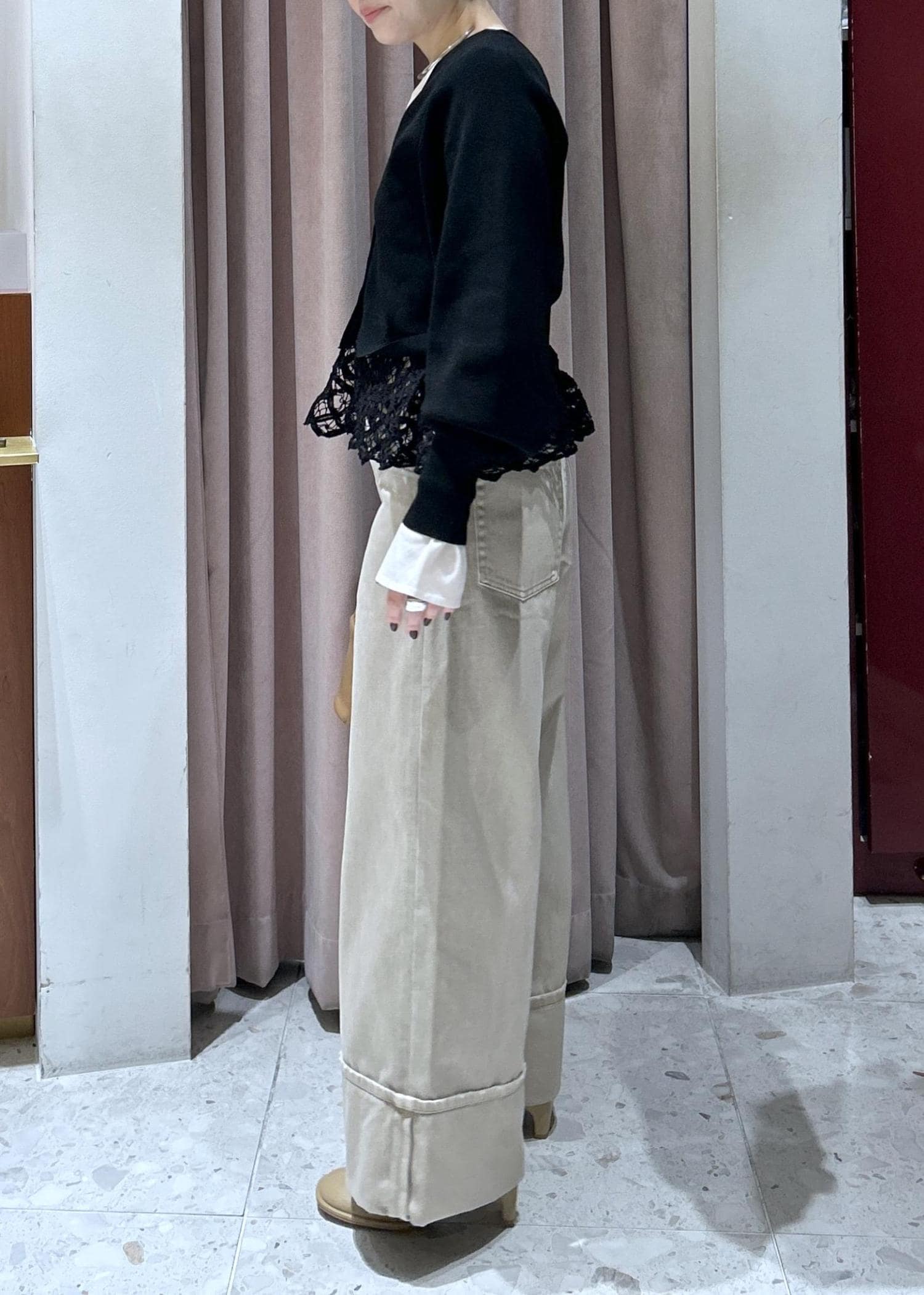 デニムはワイドシルエットと裾の折り返しがポイント!