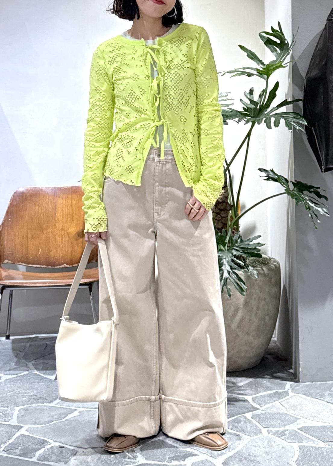 ホワイトのワントーンにグリーンの差し色を加えてスタイリングしました!