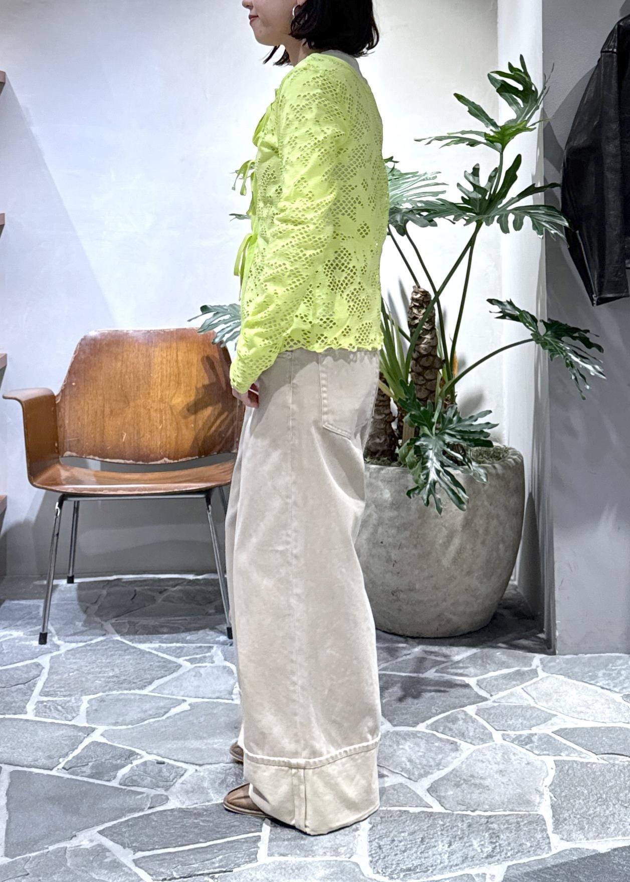 ADAM ET ROPÉ FEMMEターンナップアジャストデニムベージュ / 36¥20,900レビューワイド感が可愛いデニム。元々丈は短めのデザインで、36サイズでローヒールで床ギリギリの着丈です。