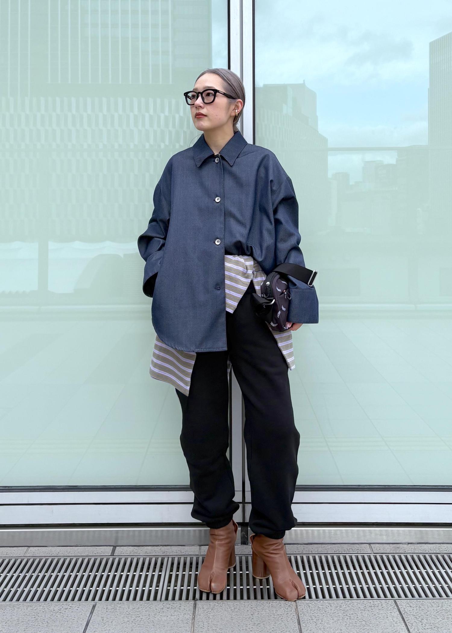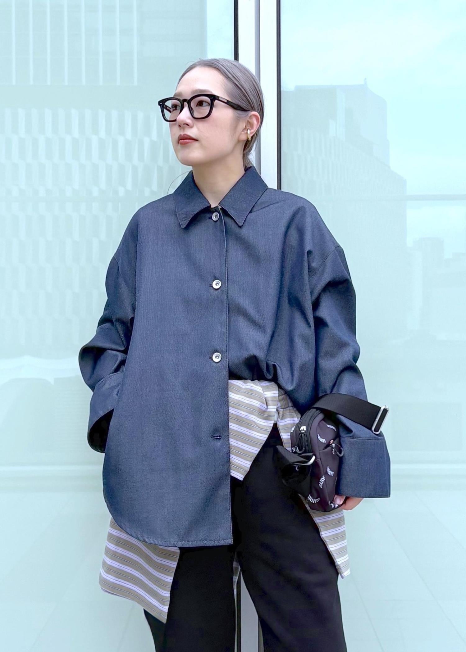 全体的にゆとりのあるサイズ感です。ポケットもついており、羽織として着用しやすいです。身幅にもゆとりがあり、スウェットやニットも着込めそうです!