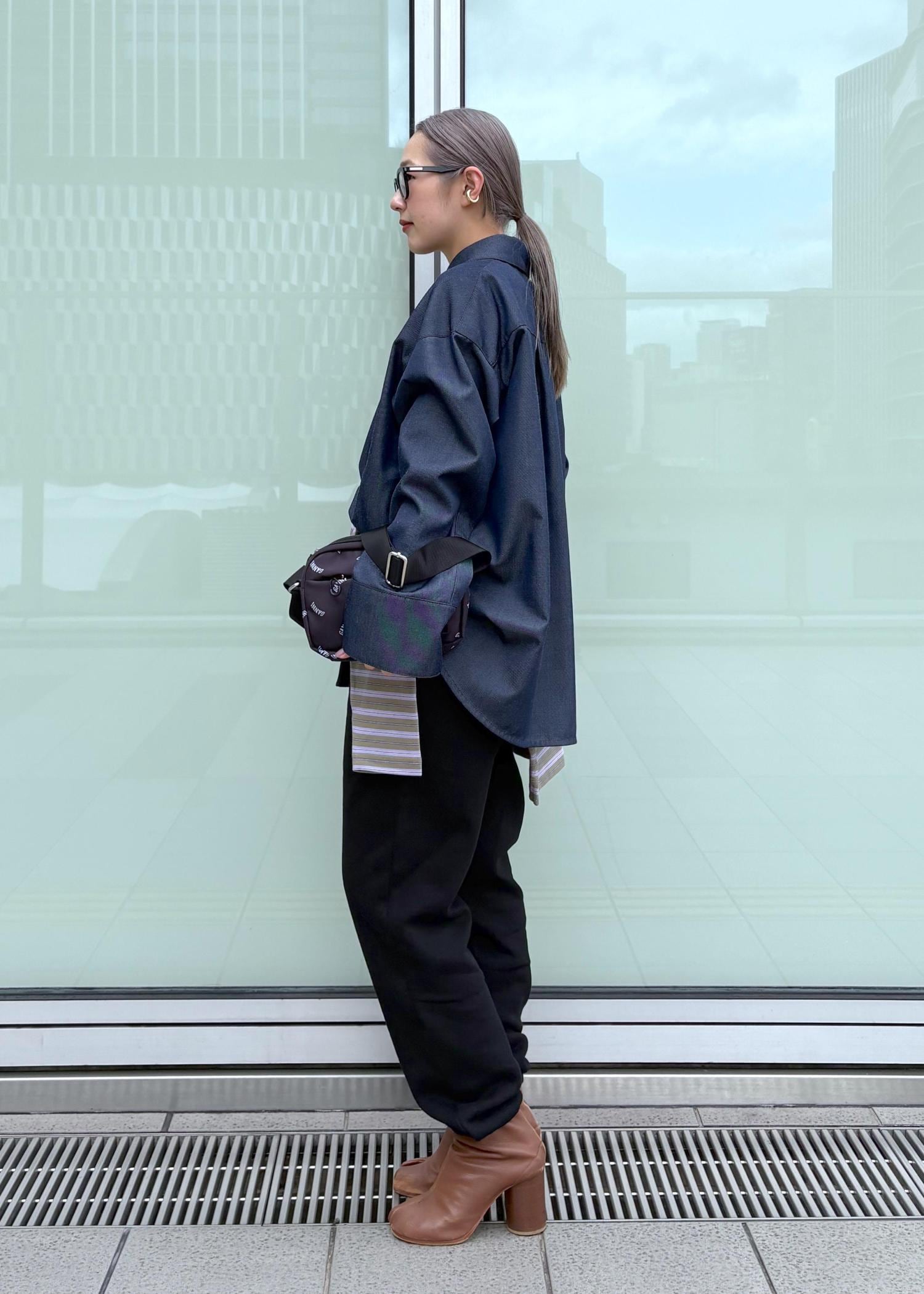 小物が入るコンパクトなサイズ感です。コーディネートに合わせやすいネイビーカラーでスタイリングも選ばず合わせていただきやすいです◎