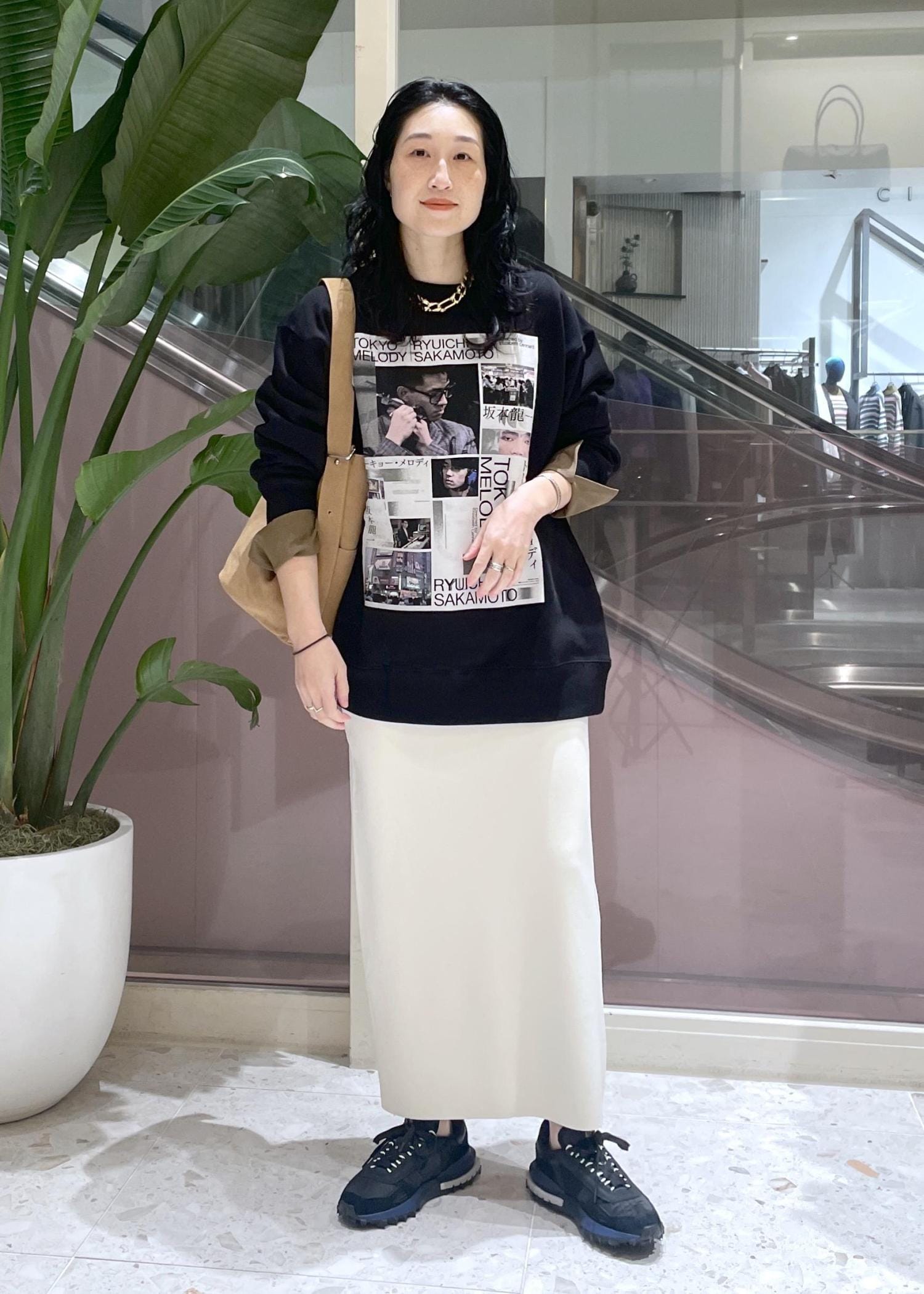 タイトスカートに合わせて、Lサイズをゆるっと着ています☺︎