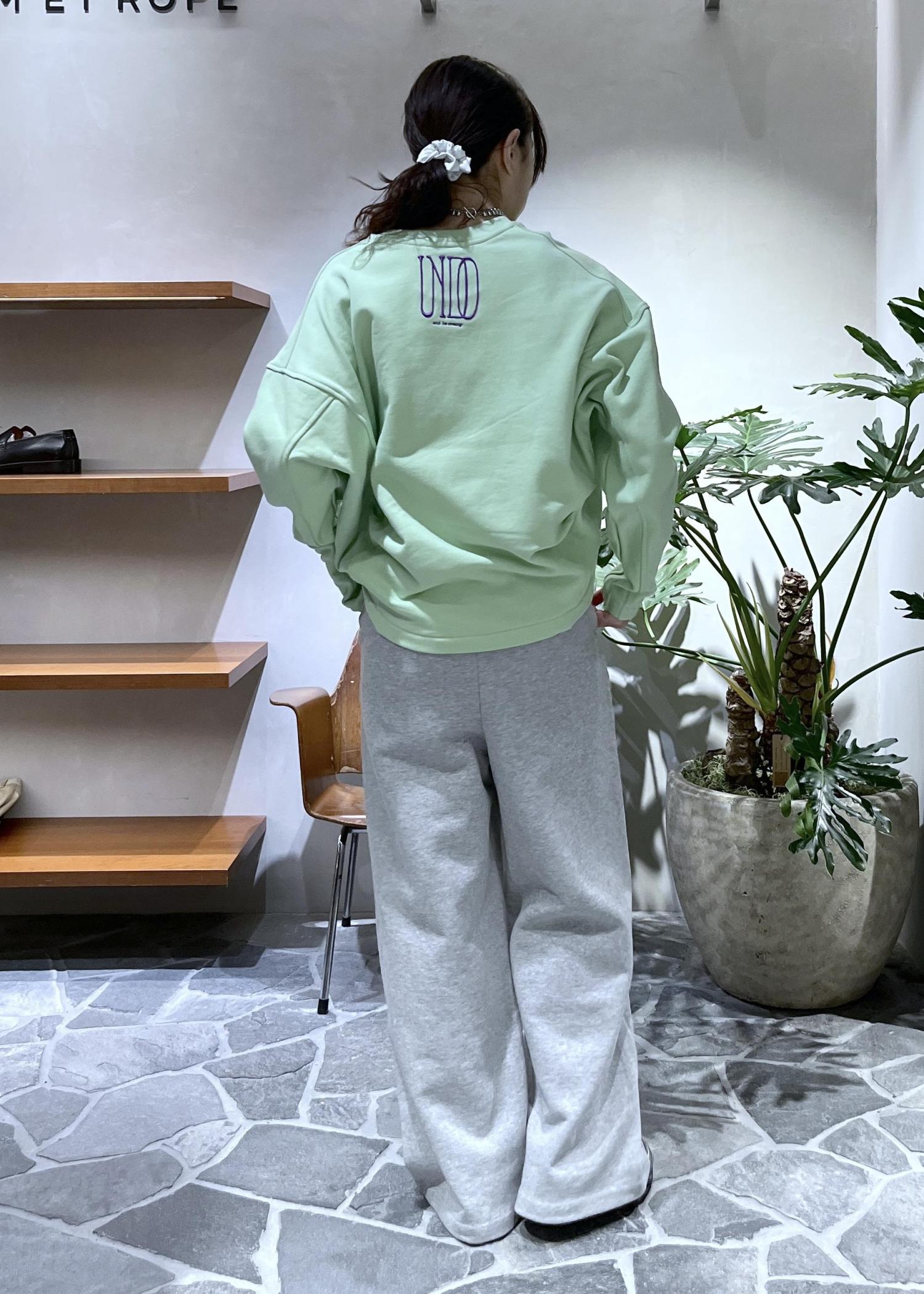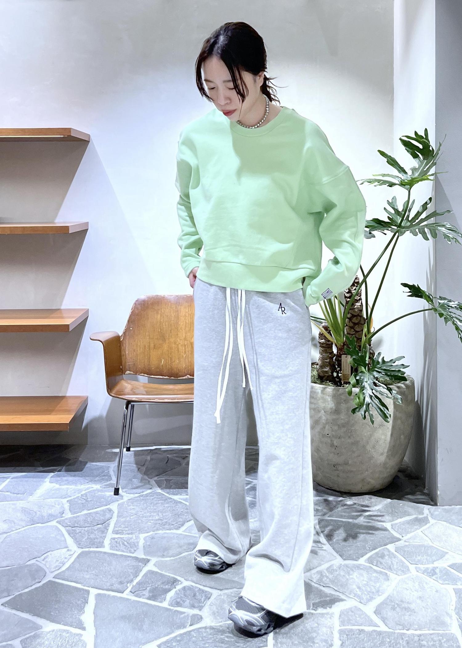 ADAM ET ROPÉ FEMME【サステナブル】ロゴフォルムスウェットライトグリーン / F¥17,600レビュー前後差のあるシルエットで、少し長めの袖丈になります。裏毛素材でロングシーズン着用できます。