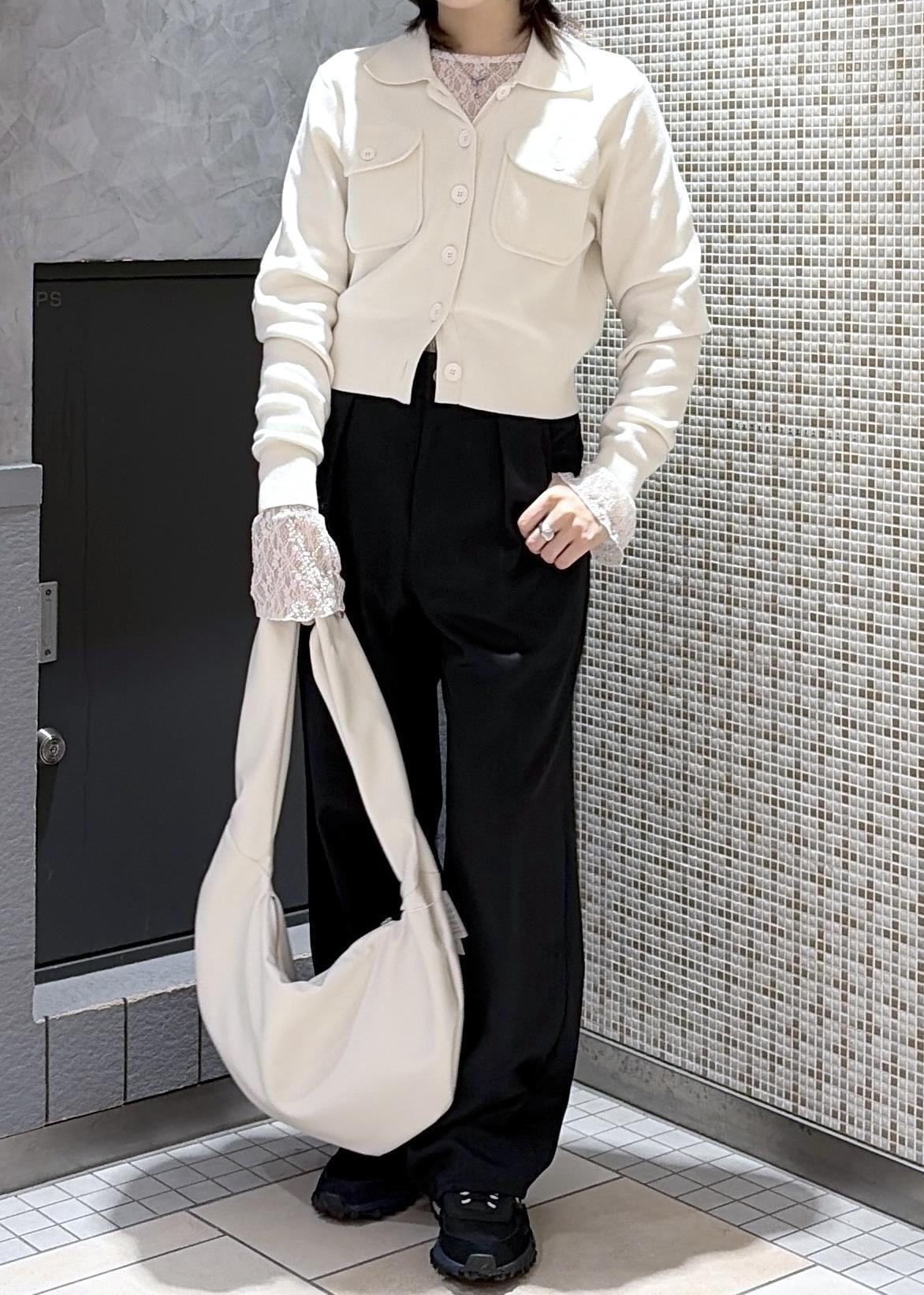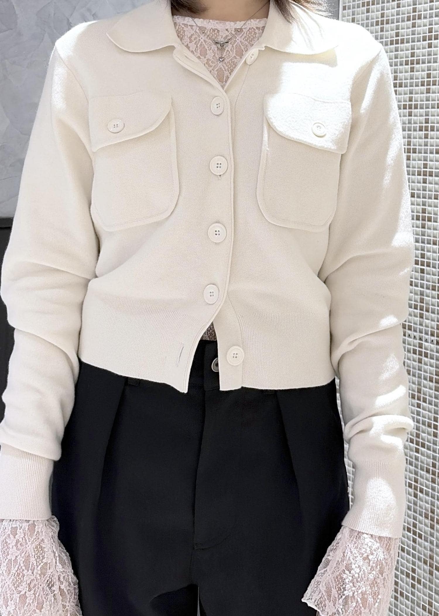 ADAM ET ROPÉ FEMMEコットンカシミヤポケットカーディガンオフホワイト / F¥24,200レビューコットンカシミヤ素材なので、もちもちしていて肌触り◎ 袖はやや長めで、コンパクトなシルエットですが丈感も程よい長さあります!