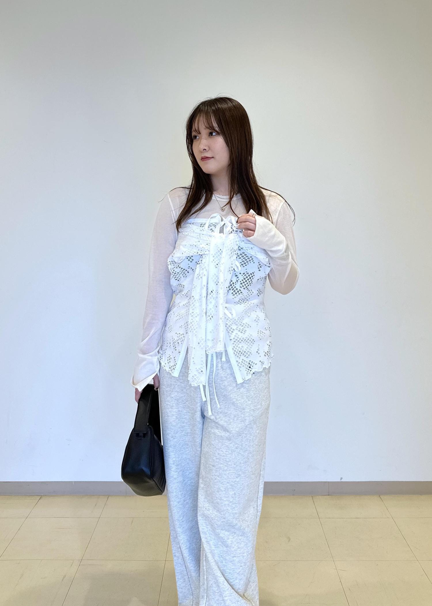 ADAM ET ROPÉ FEMME2WAYホールジャガードトップスホワイト / F¥15,950レビュー前後どちらでも着ていただけるトップス、1枚でも、インナーとしても可愛いです。袖を通さず着るとビスチェ風に着られますよ:)