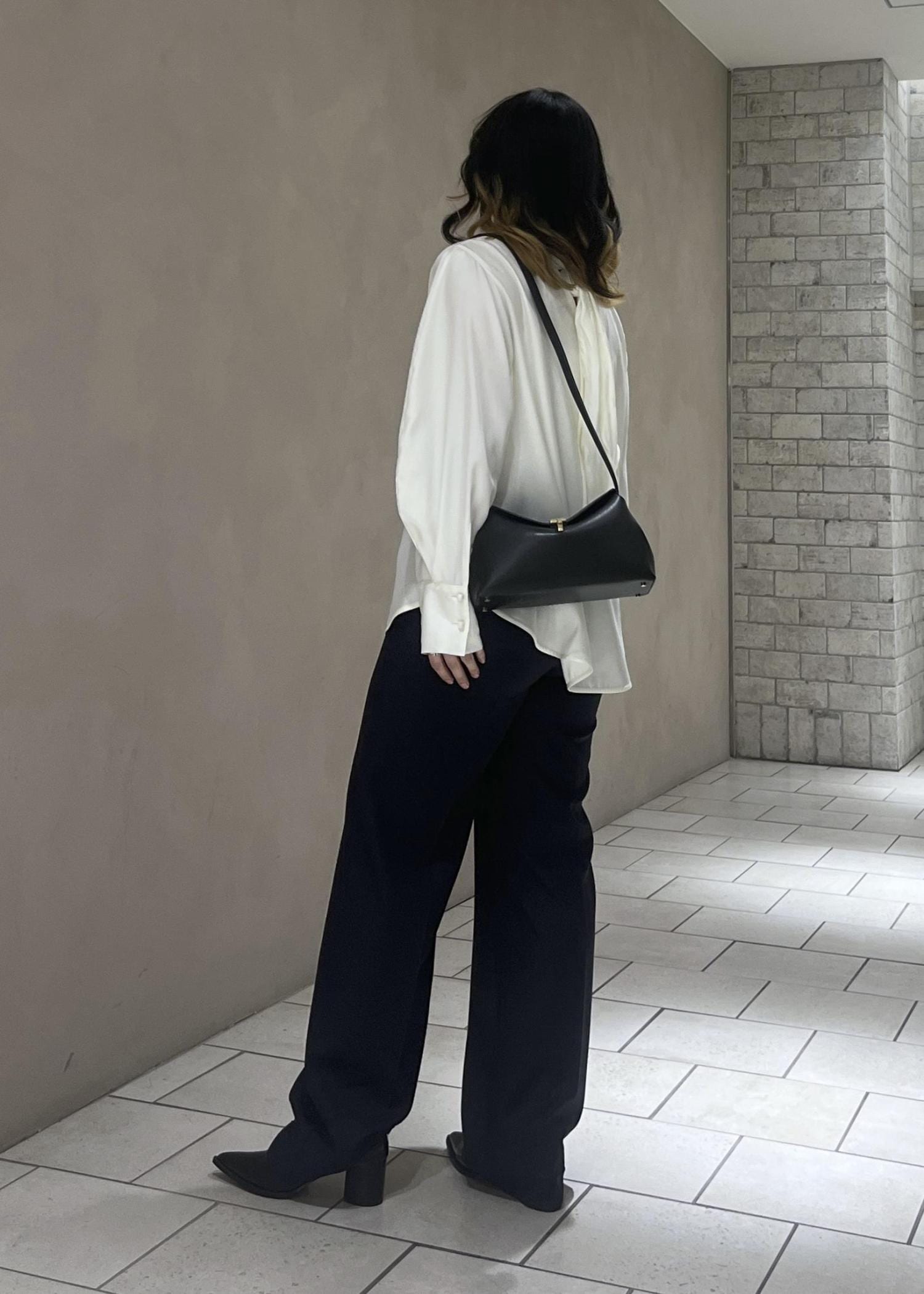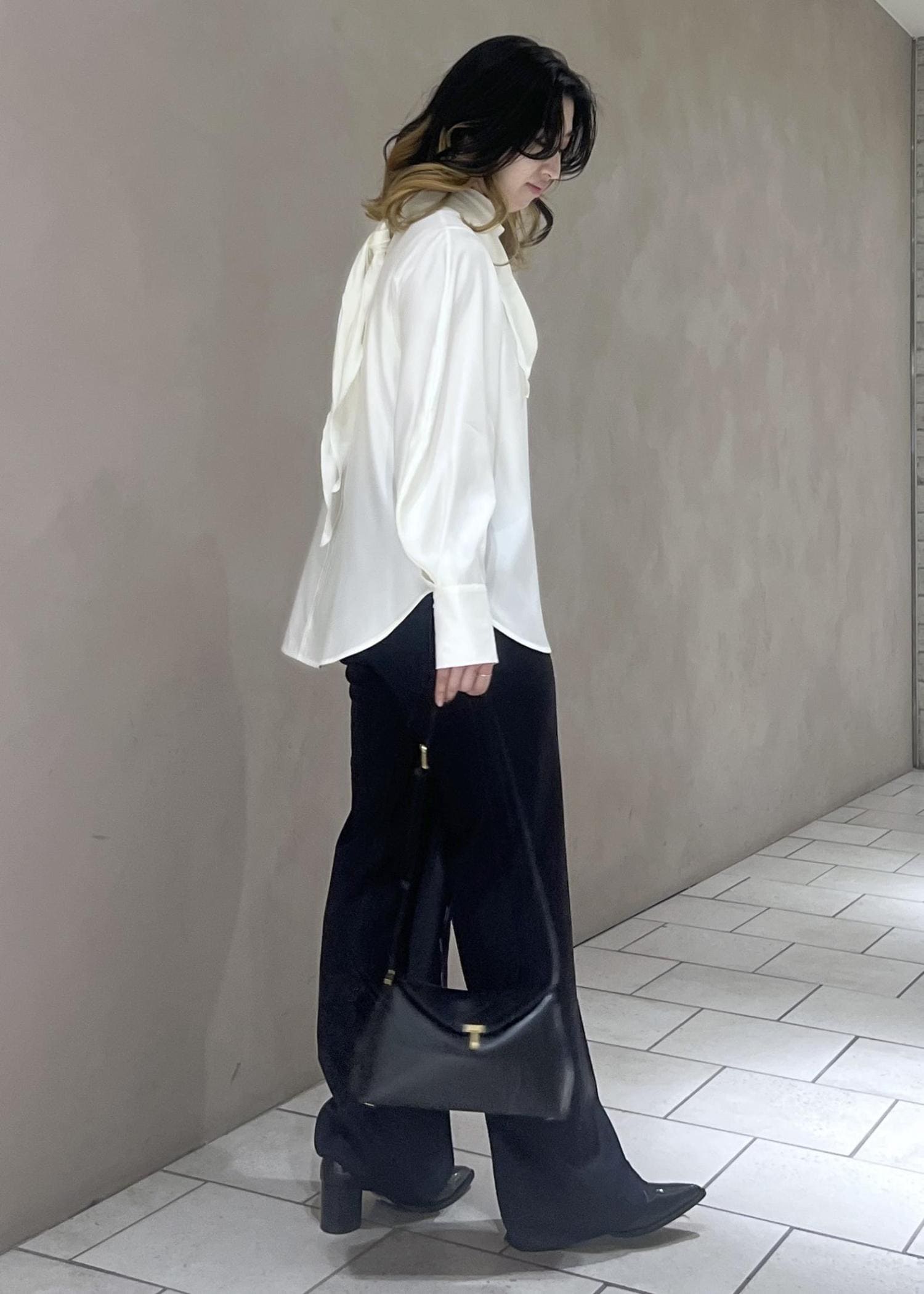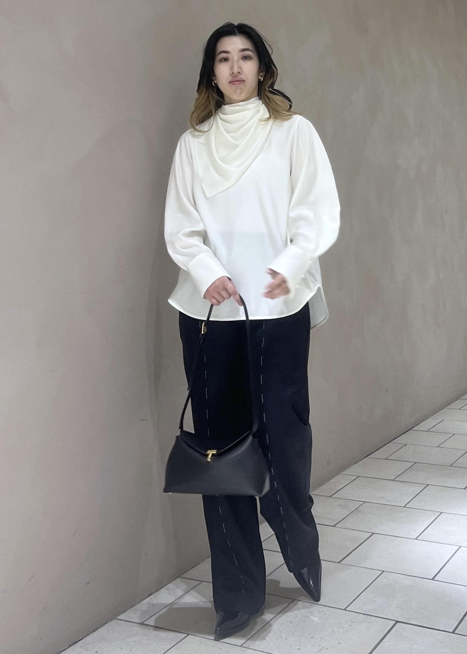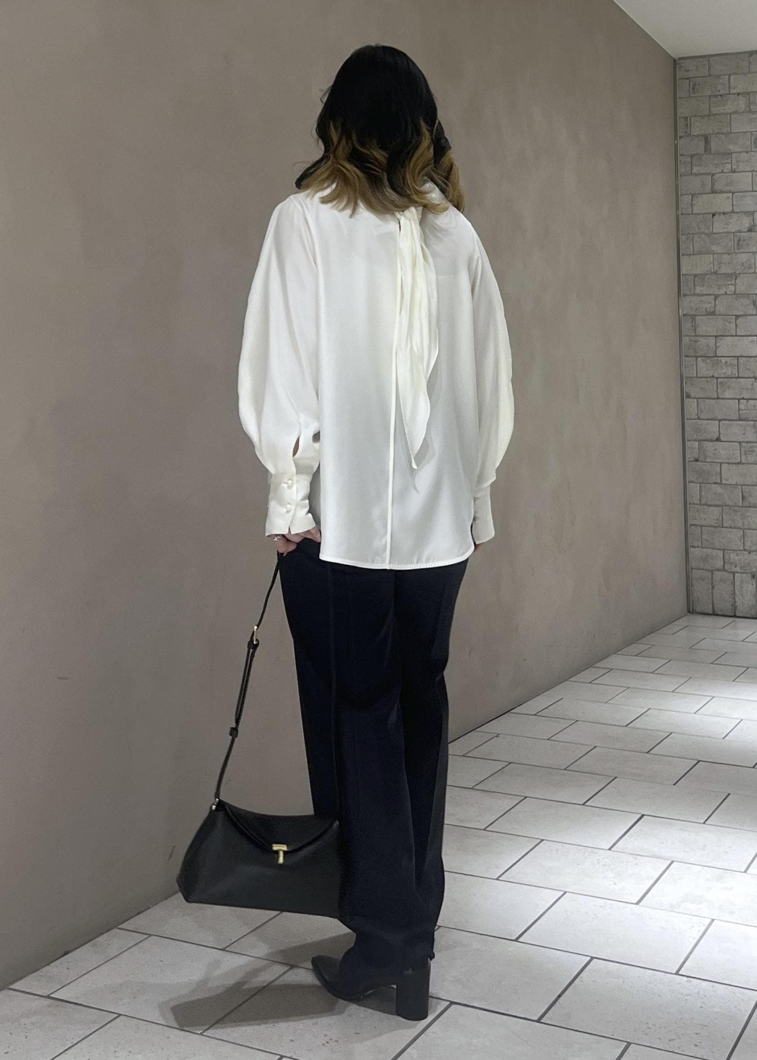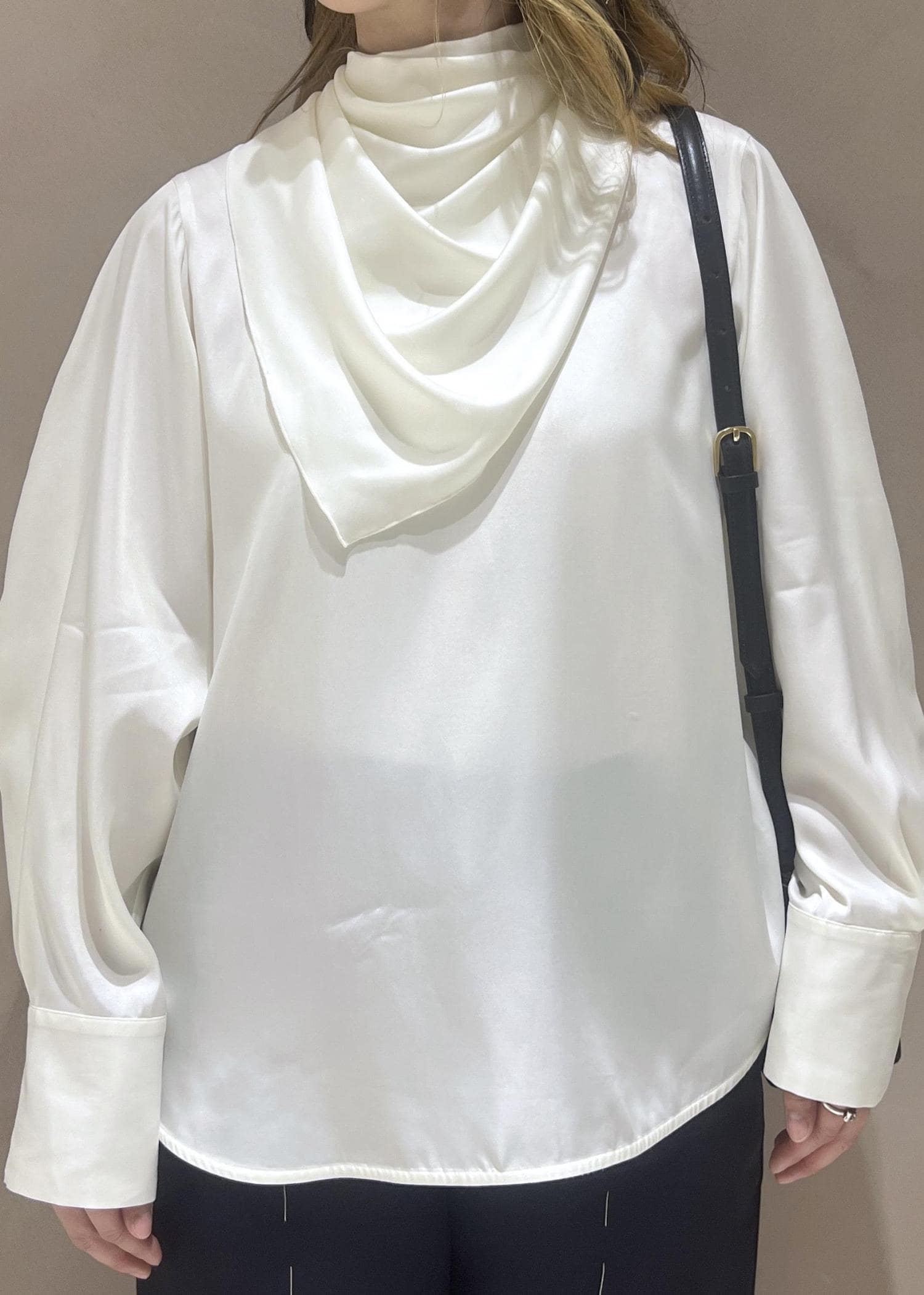 ADAM ET ROPÉ FEMMEフィブリルロンTEEスカーフブラウスオフホワイト / F¥17,600レビュートロンとした素材感と光沢感が上品さを引き出してくれます!お尻が隠れるくらいの丈感でアウトで着るのも◎です♪セットのストールが大きめなのでいろんなスタイリングを楽しめます!