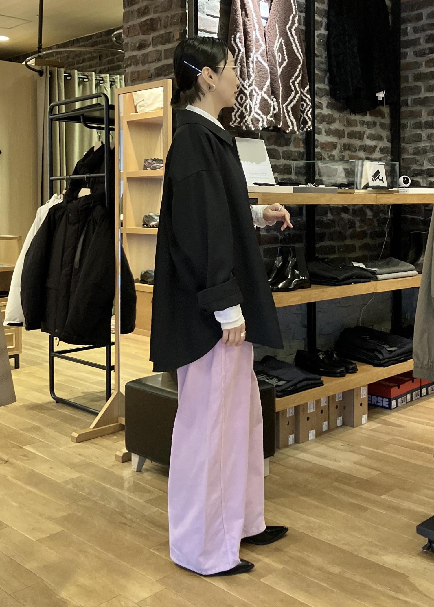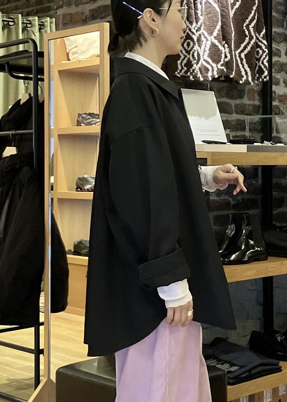 オーバーサイズなので、まだ寒いうちは中にニットやスウェットを着ることが出来ます。