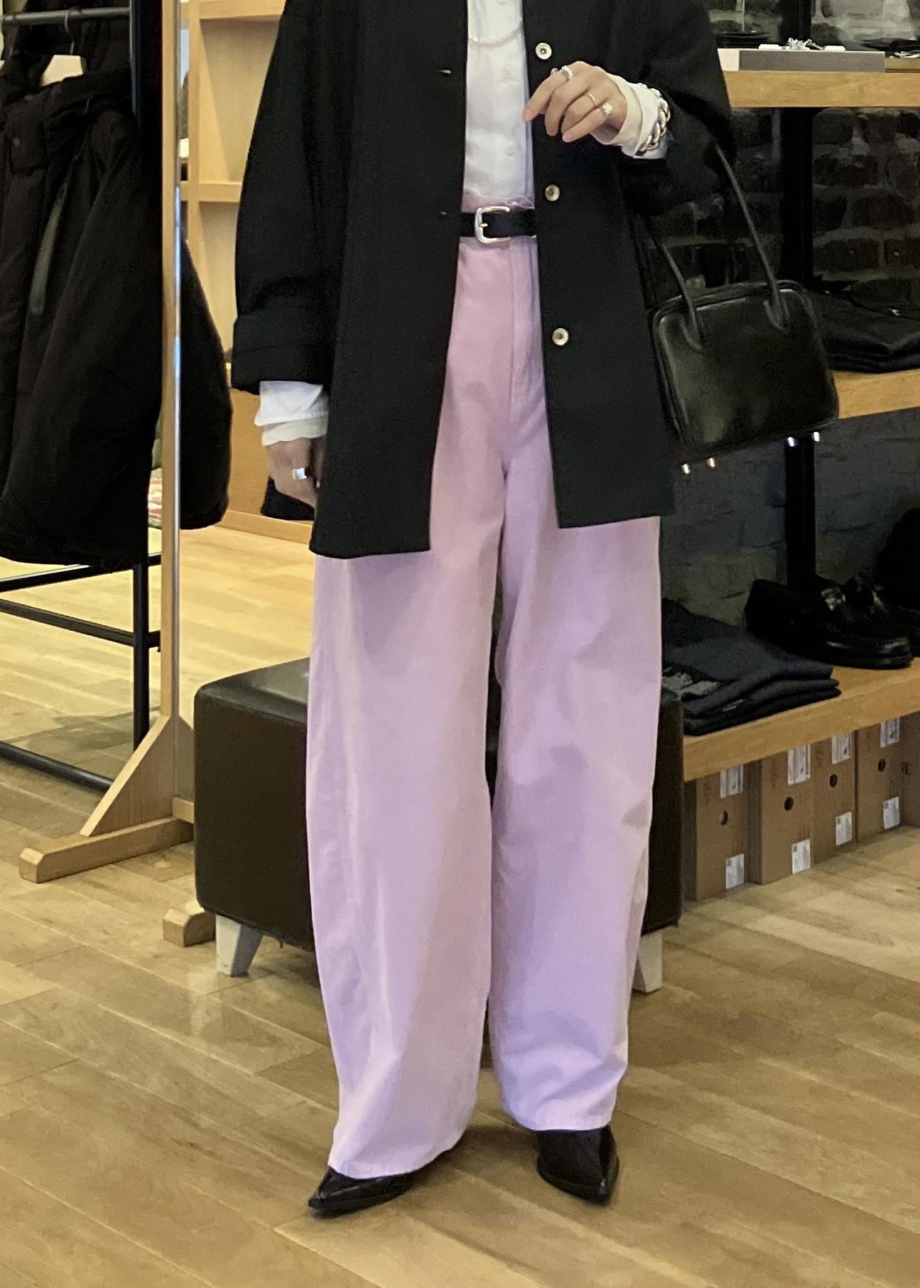 ゆるめのシルエットも色も可愛いく、コンパクトなトップスや、短丈トップスとの相性が◎です! -