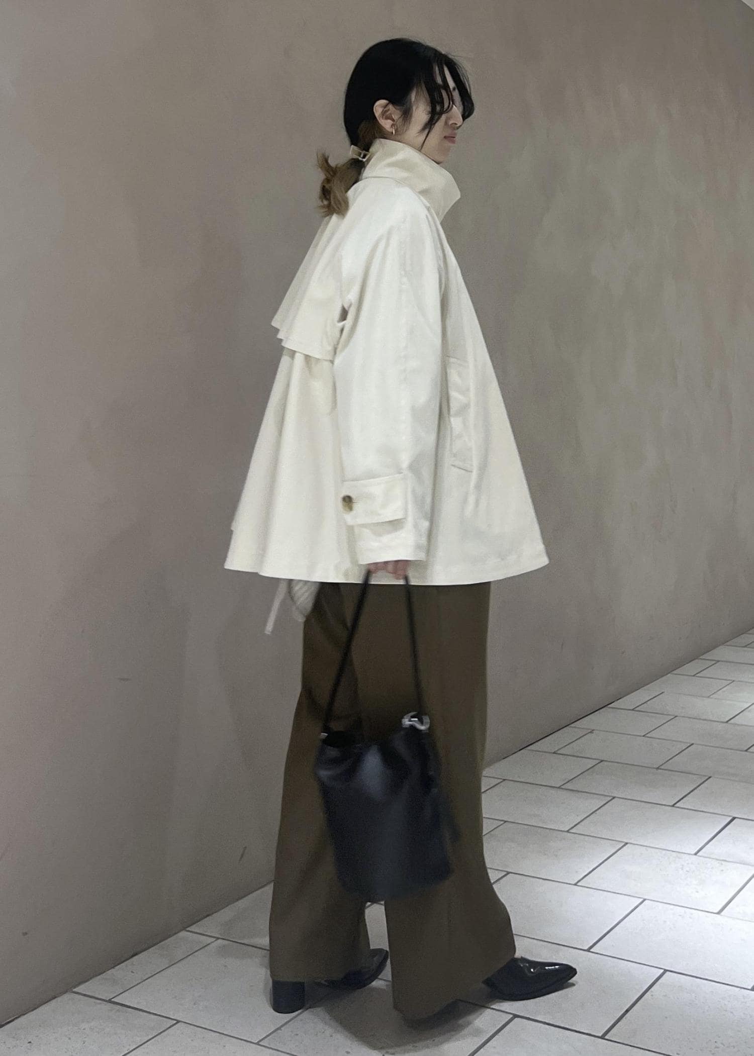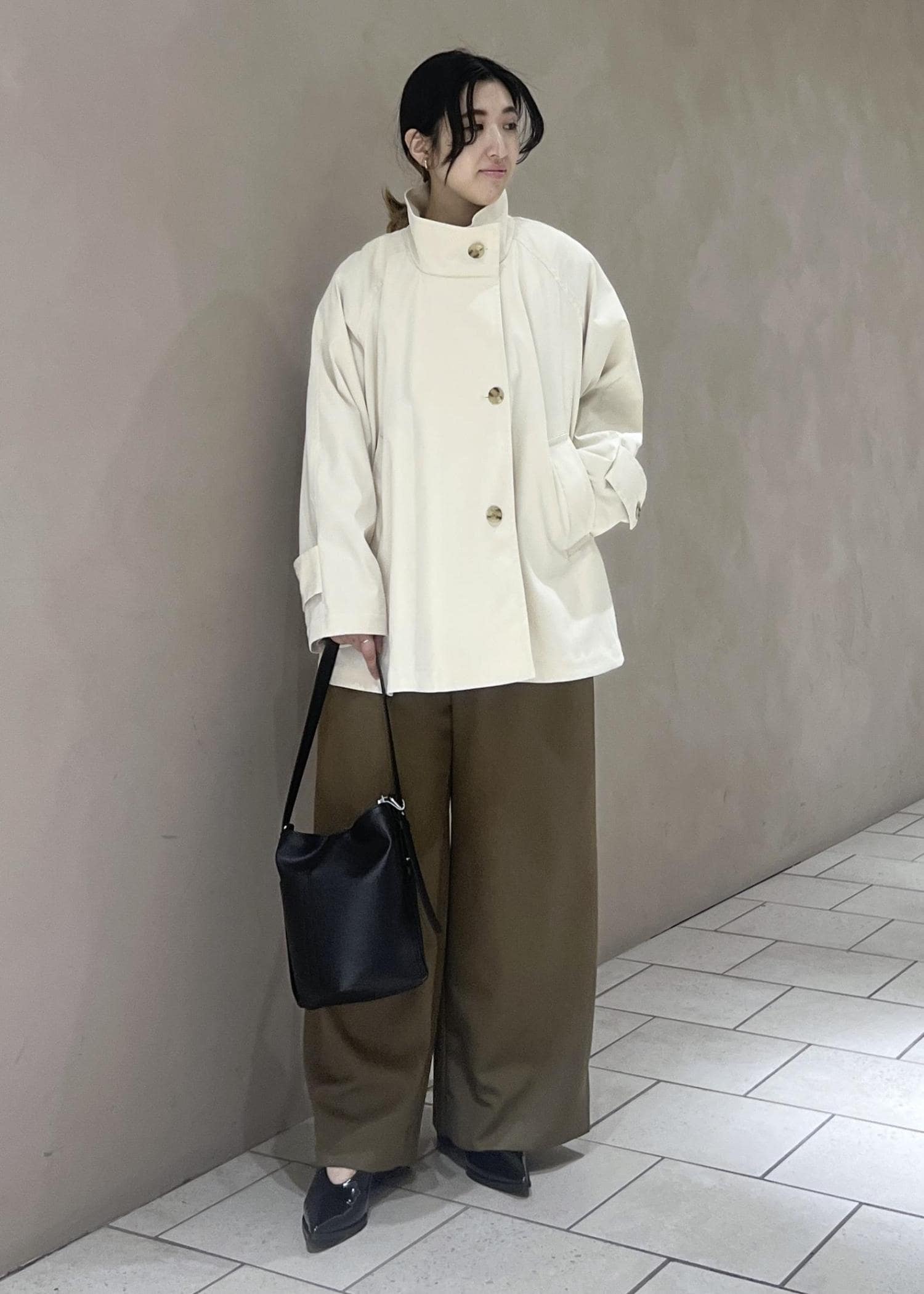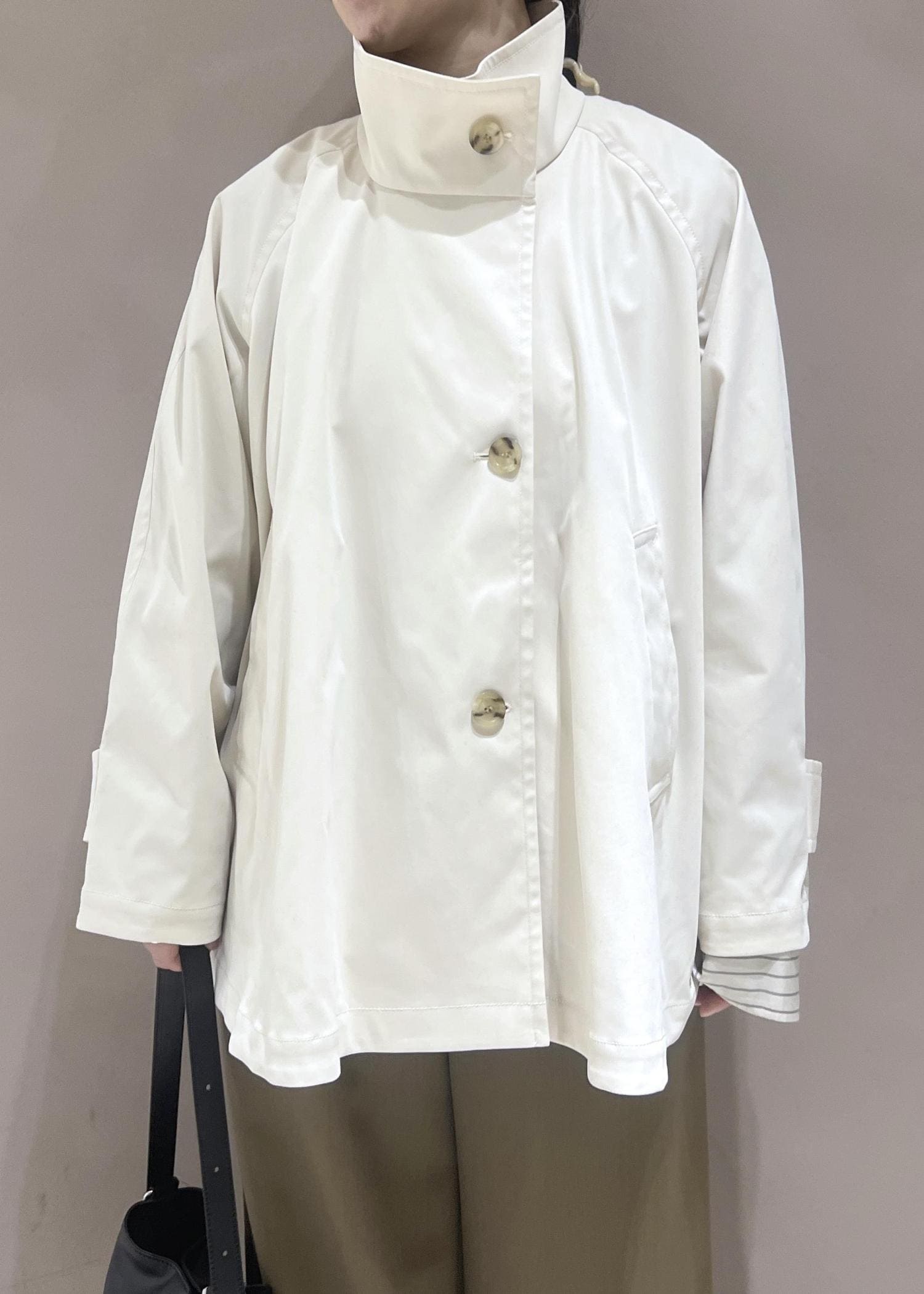 オフホワイトの色感が絶妙で何にでも合わせやすく上品な印象にしてくれます♪ -