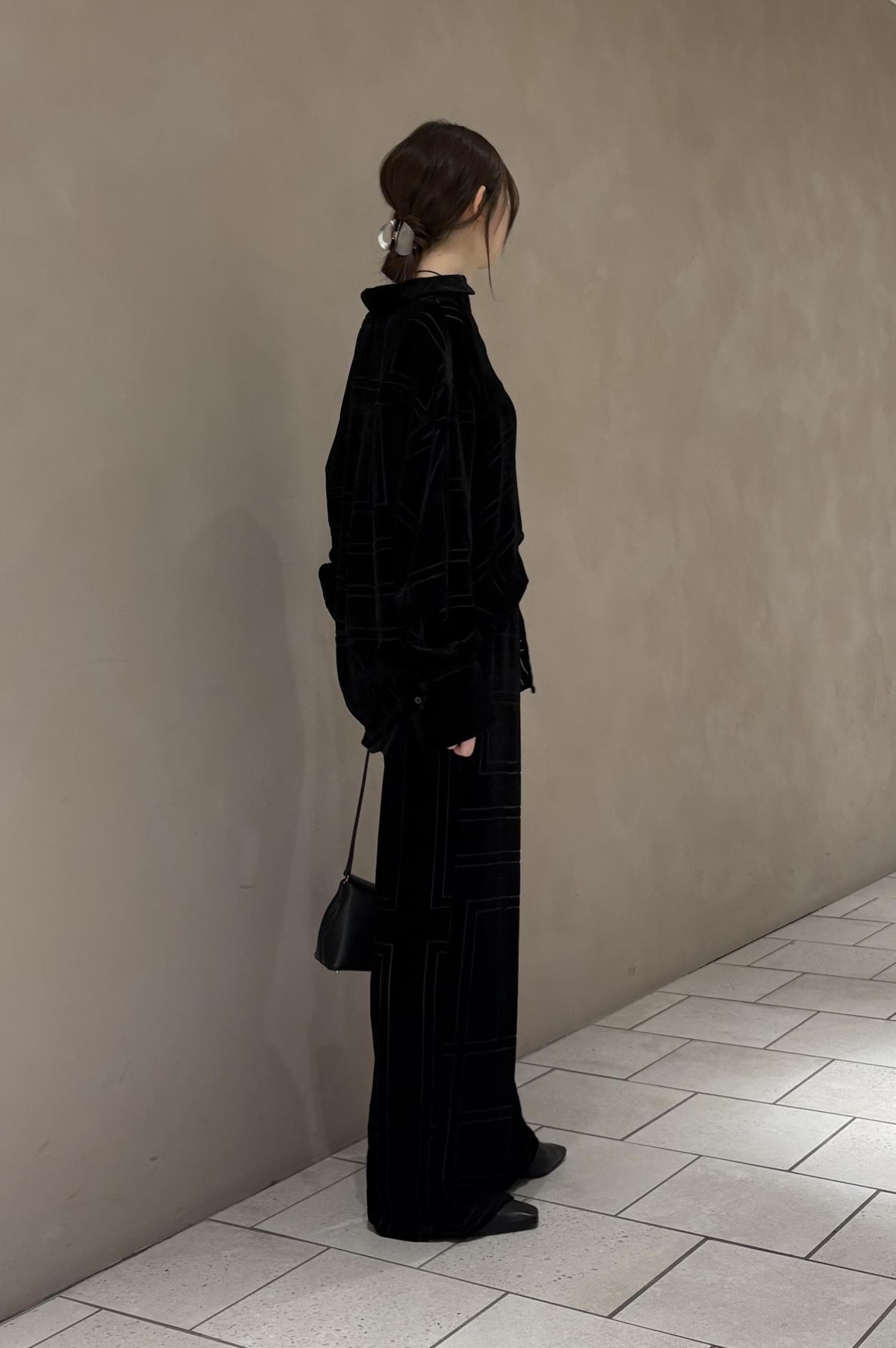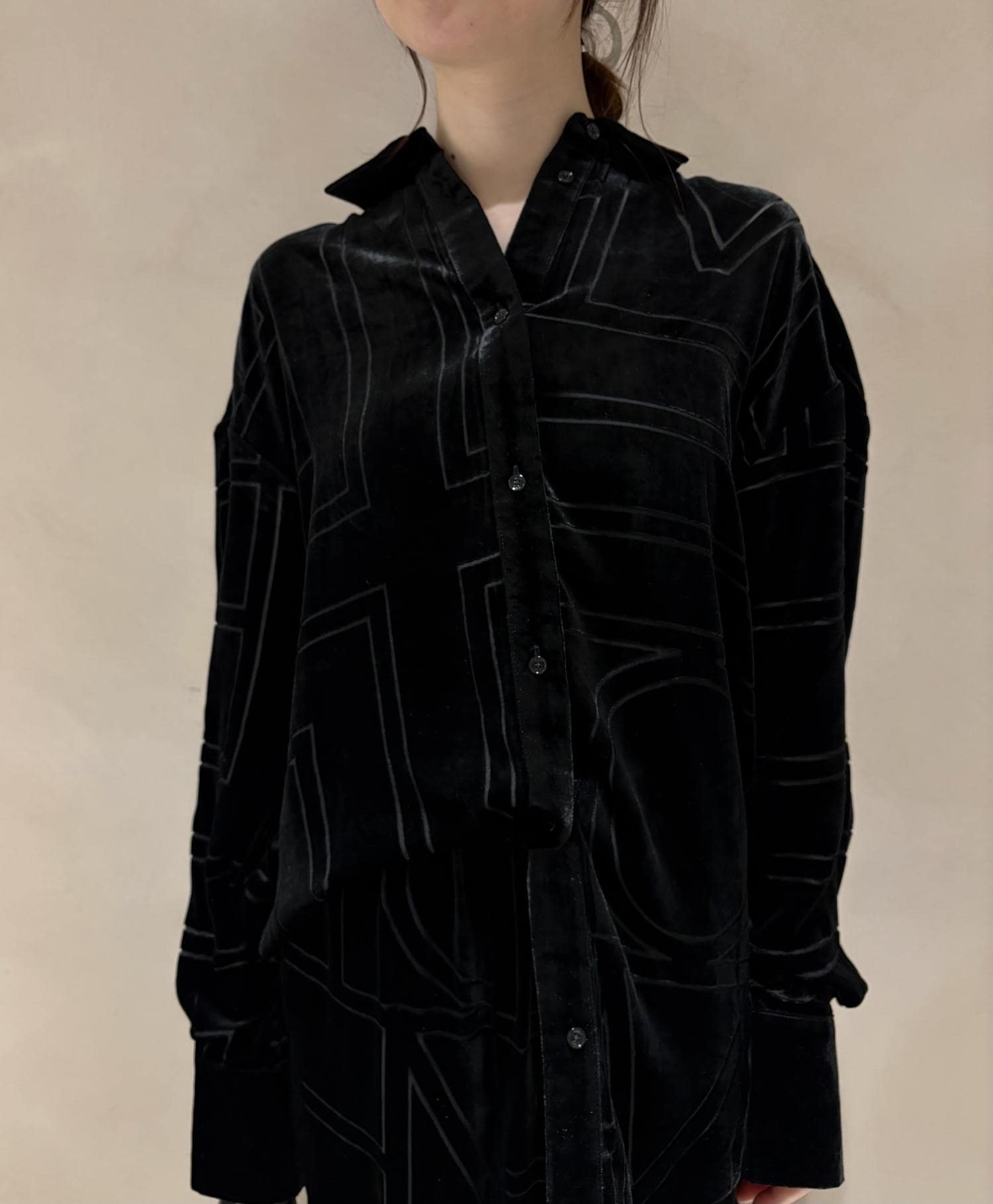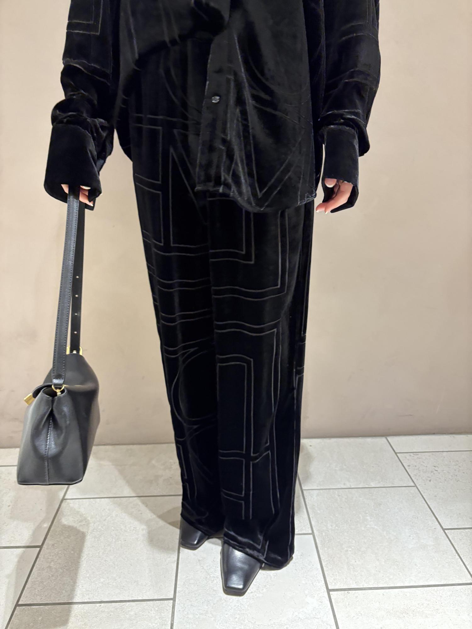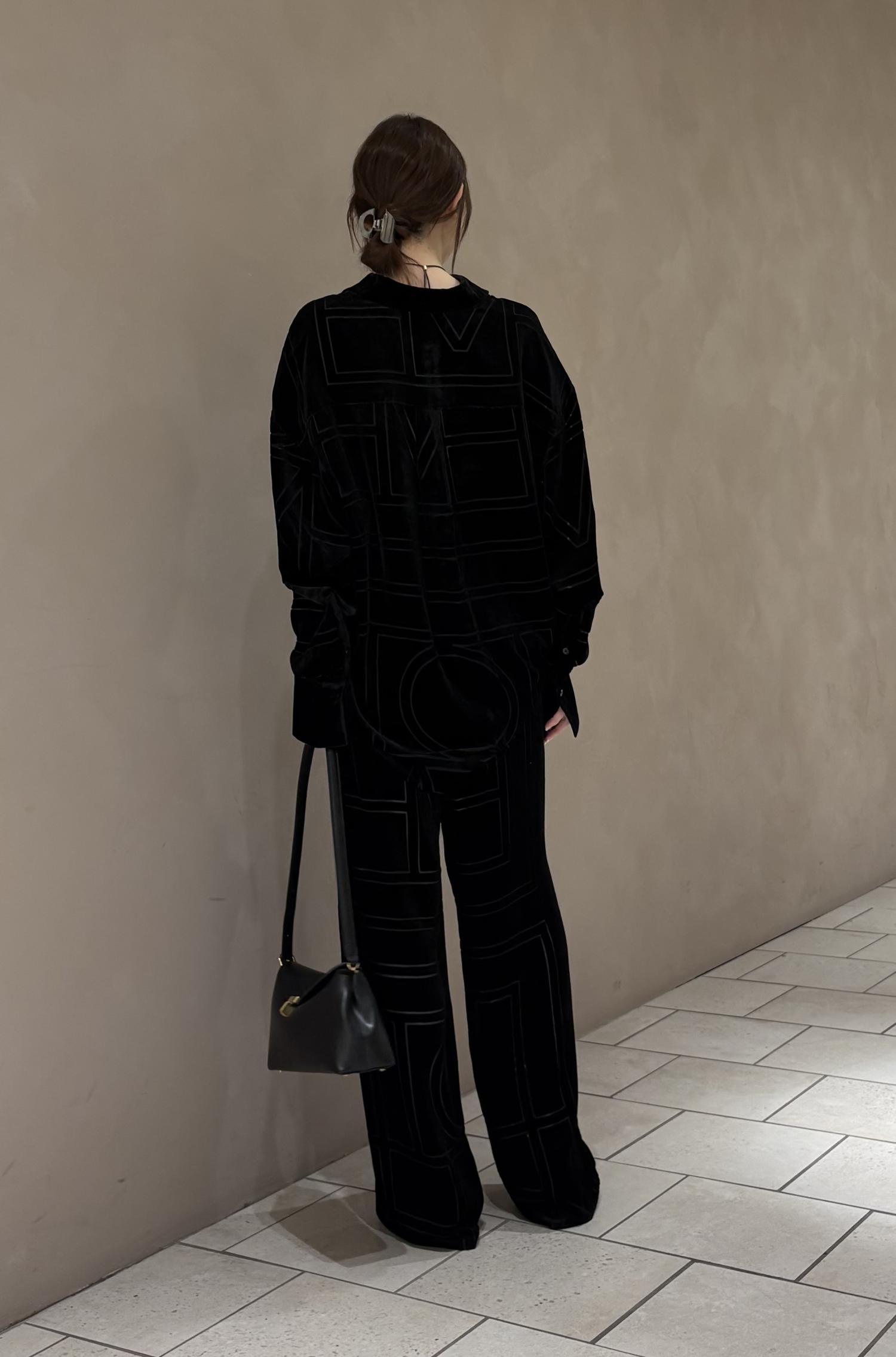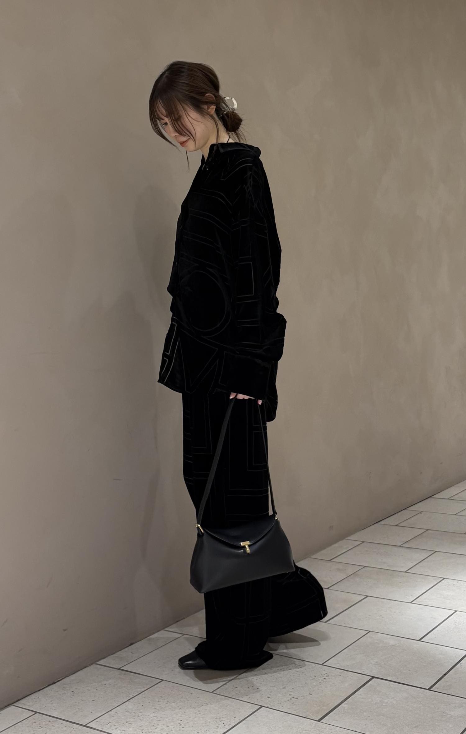 ベロア素材ですがモノグラム柄の部分に程よく透け感があり上品にヘルシーに見せてくれるところがポイントです!