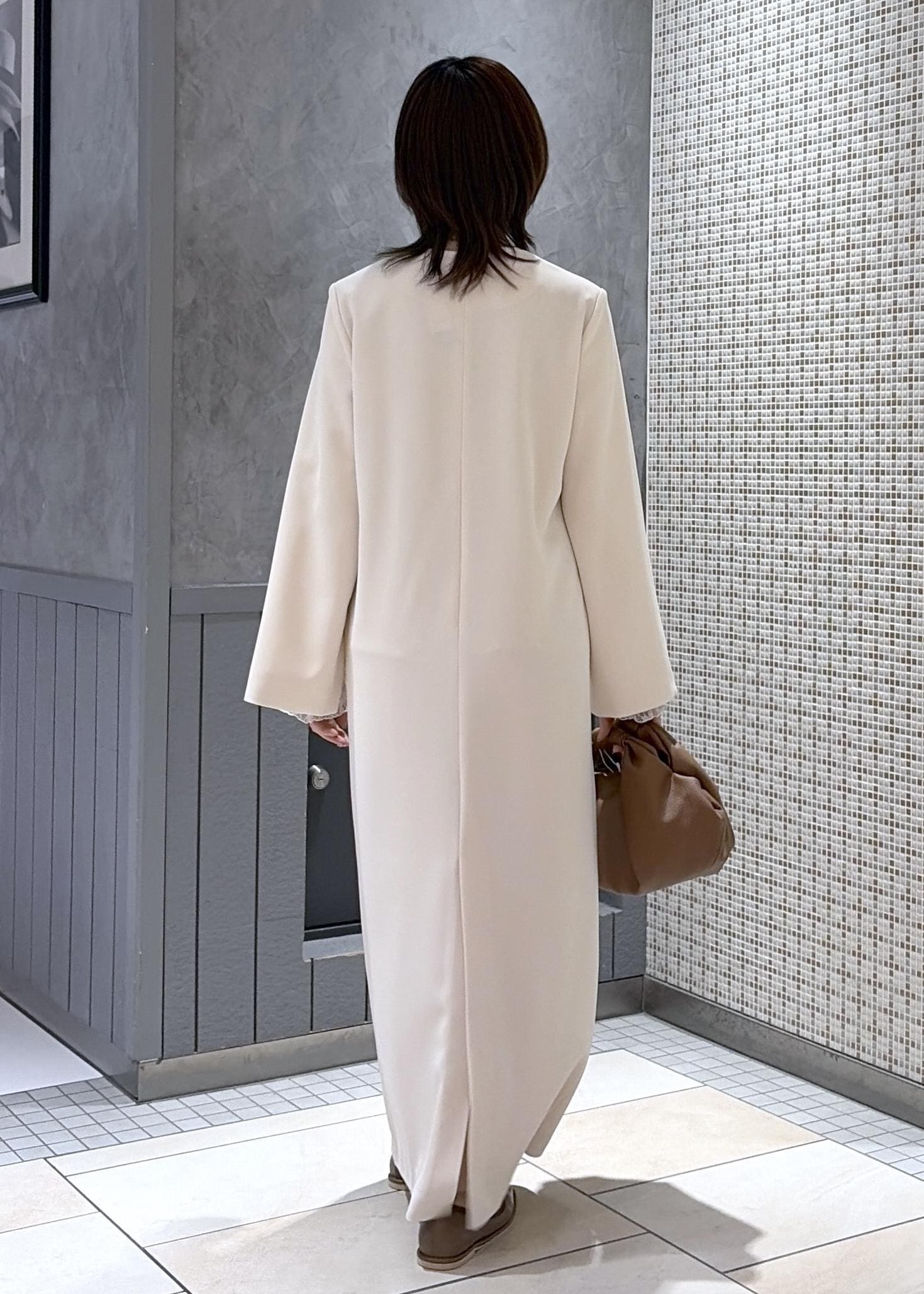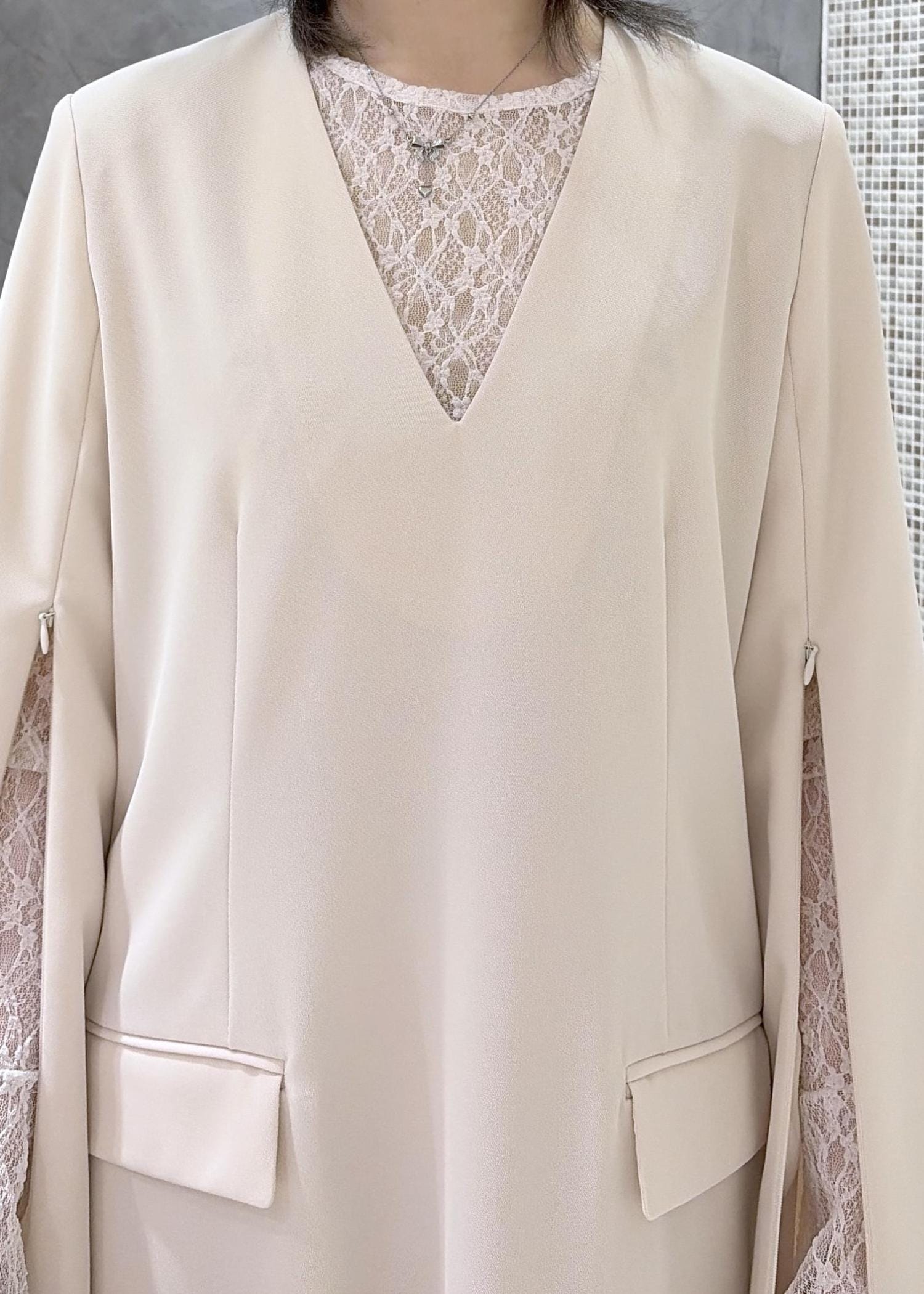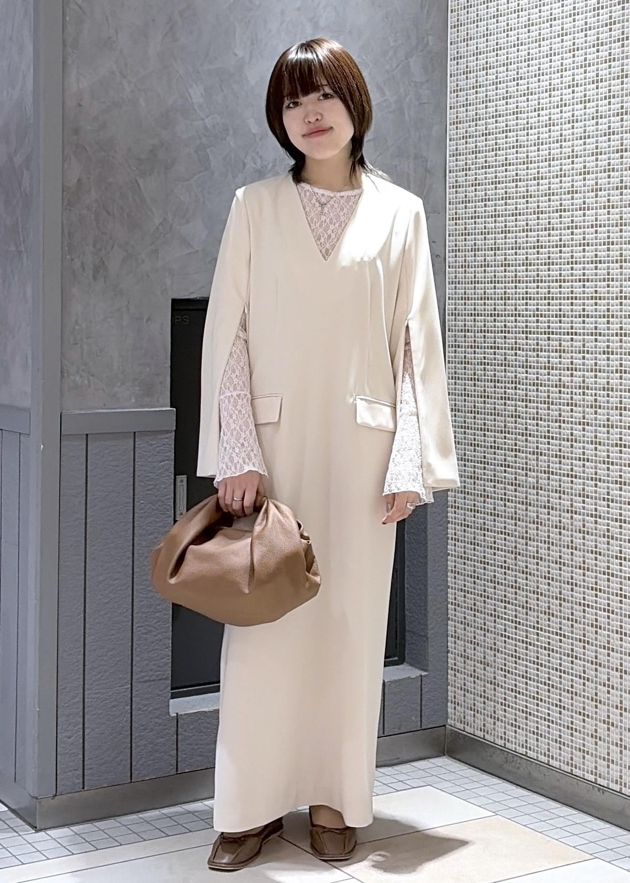 今回はスリットスリーブワンピースを使って、ややフォーマルな雰囲気にしてみました。単品使いでもインナーをいれても素敵に仕上がります!