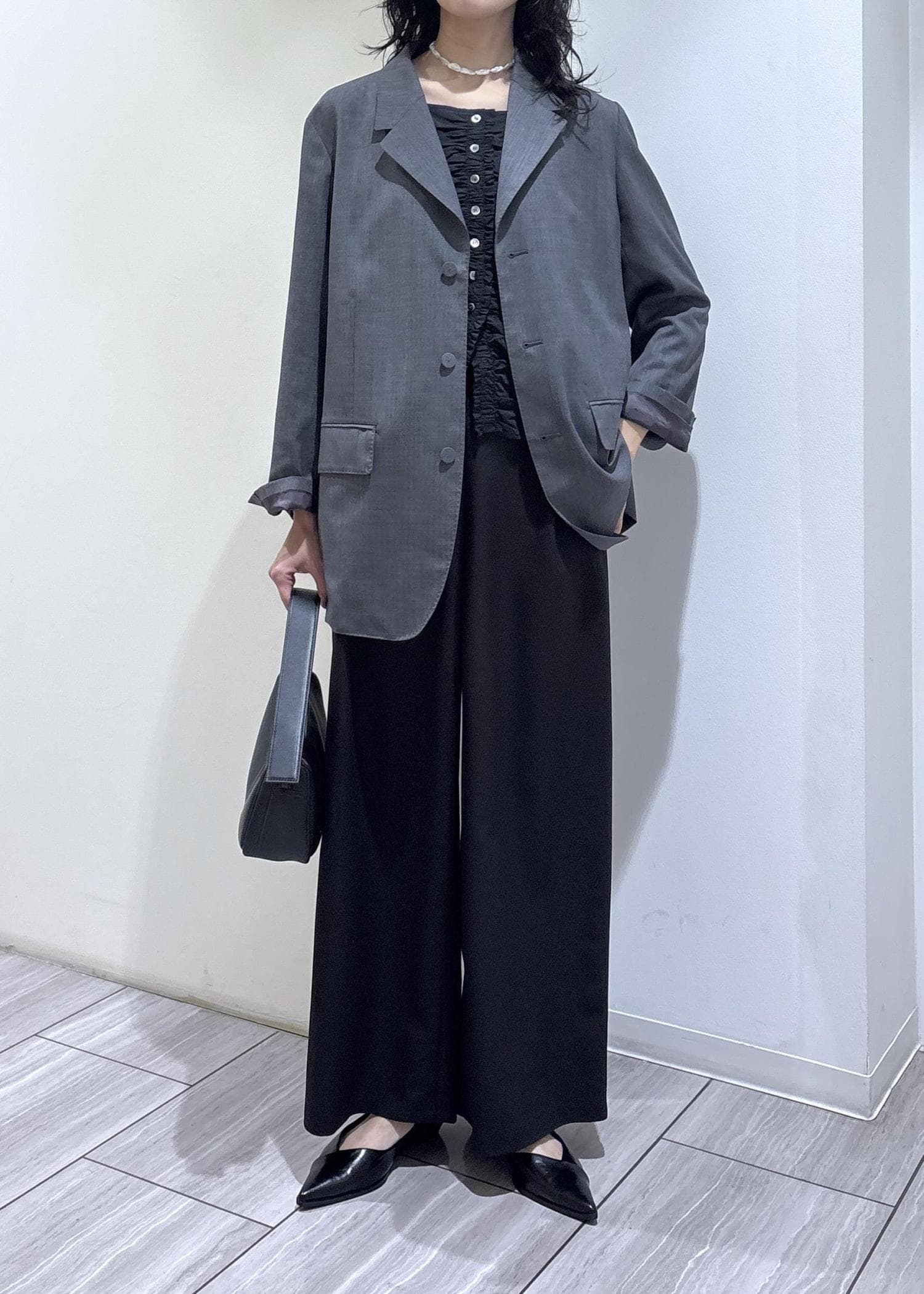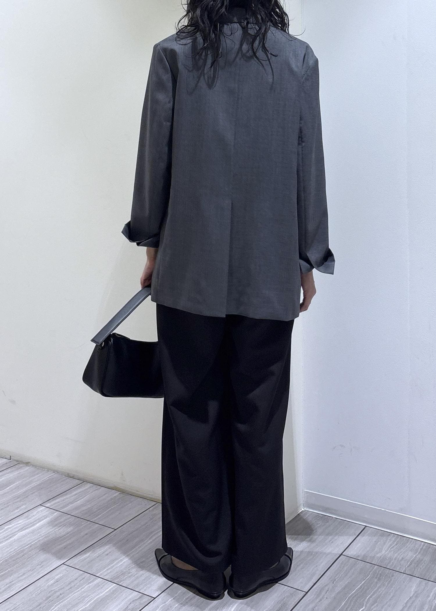 ジャケットはシングルでスッキリ、シャツ感覚でさっと羽織れてシワにもなりにくく便利な一着です◎