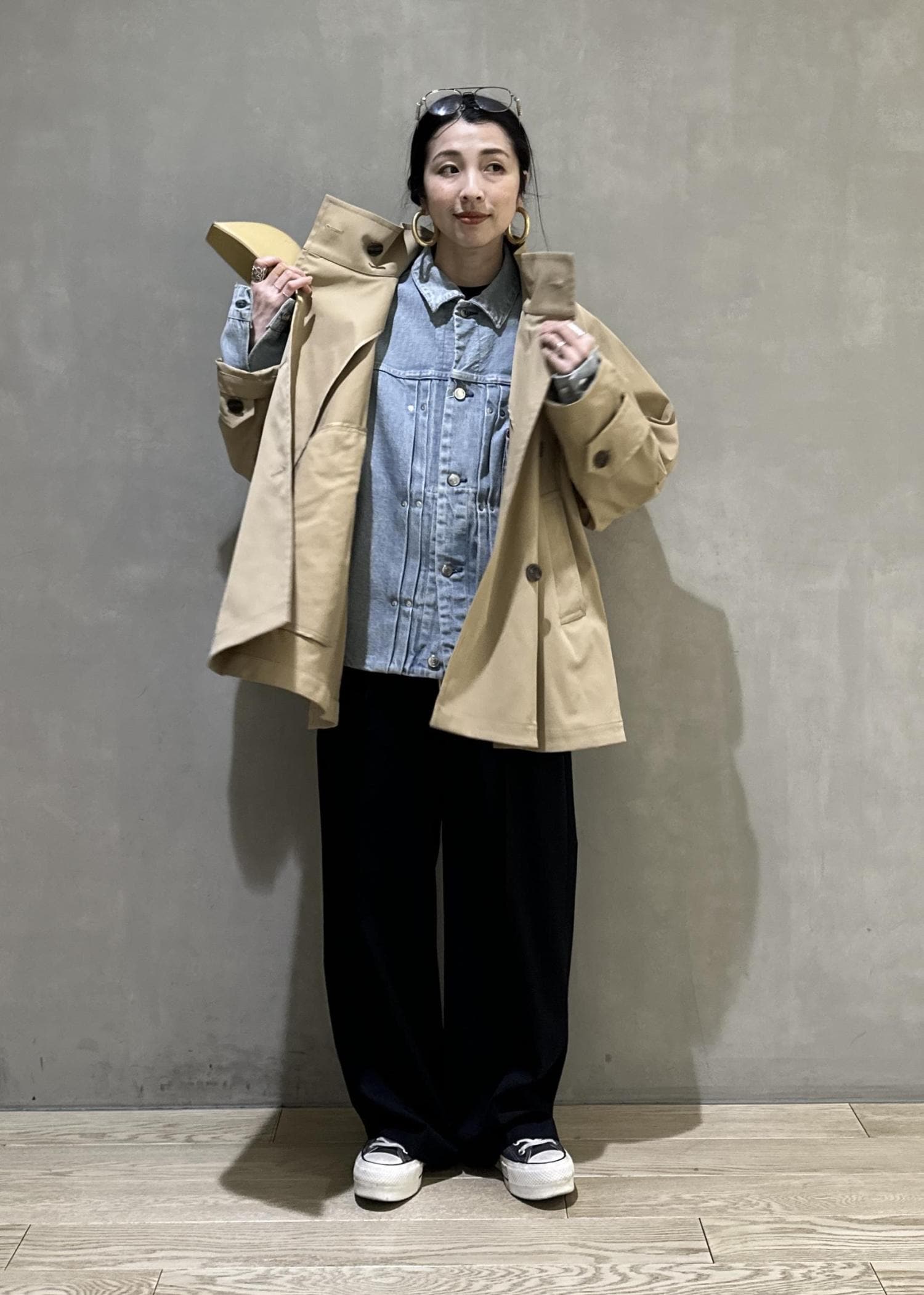 春といえばデニムですが、そちらにトレンチを合わせるスタイリングはもはや定番!!