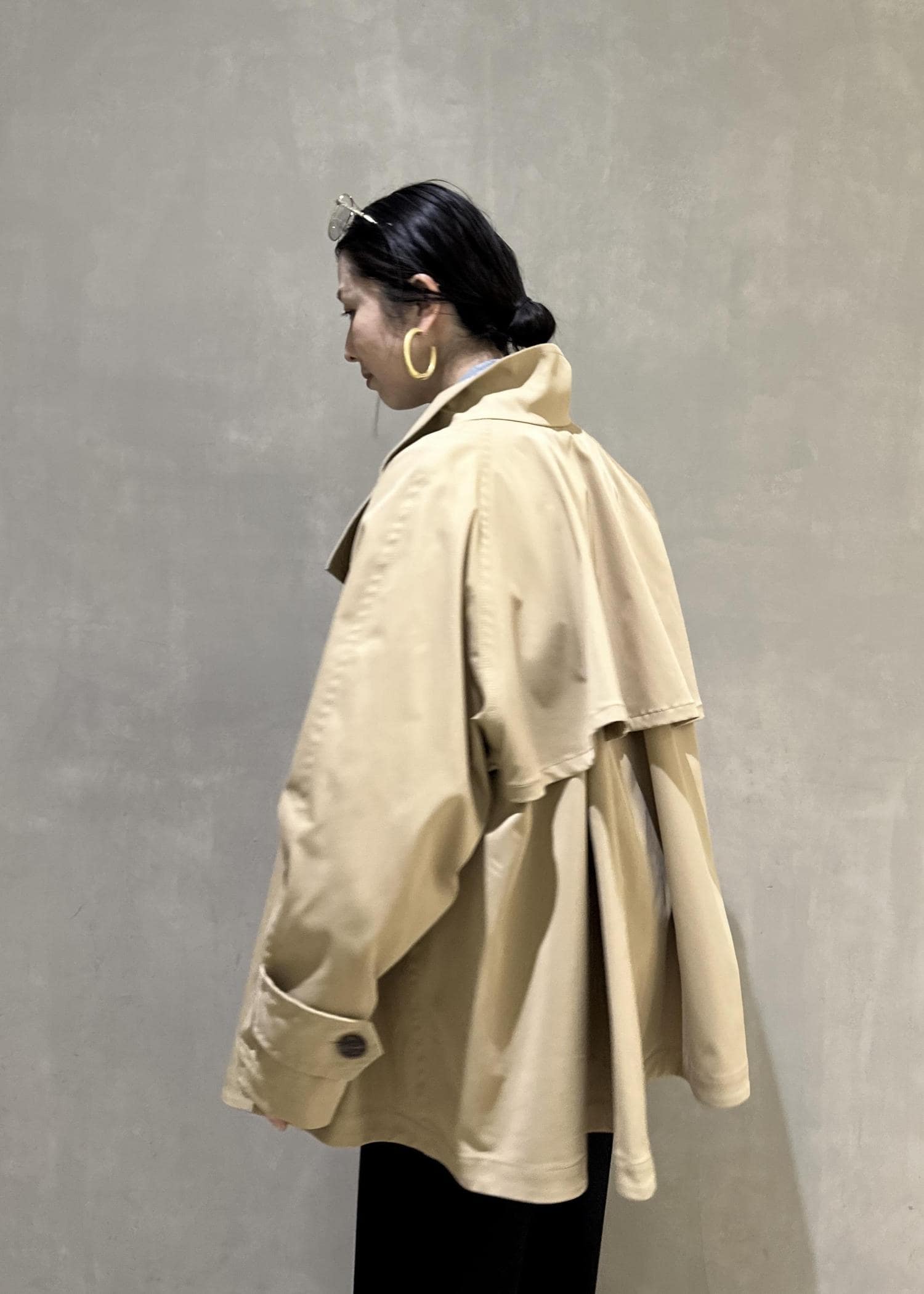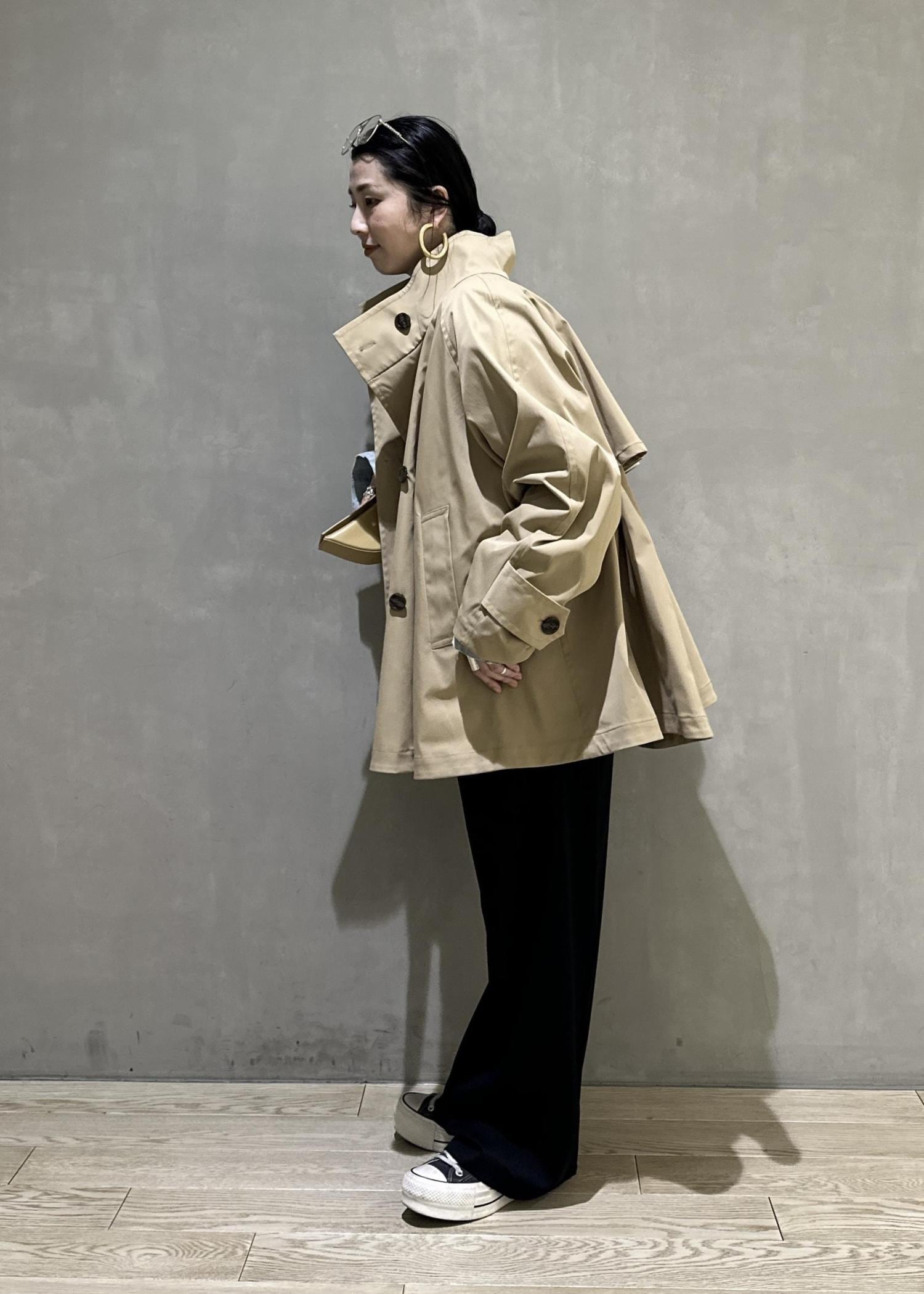 ADAM ET ROPÉ FEMMEフレアーミドルトレンチコートベージュ / F¥33,000レビューフレアデザインのトレンチコートです。ポンチョのようなニュアンスで合わせていただけ、細身のパンツやワイドパンツなどボトムのシルエットに左右されず幅広いボトムと合わせていただけます。