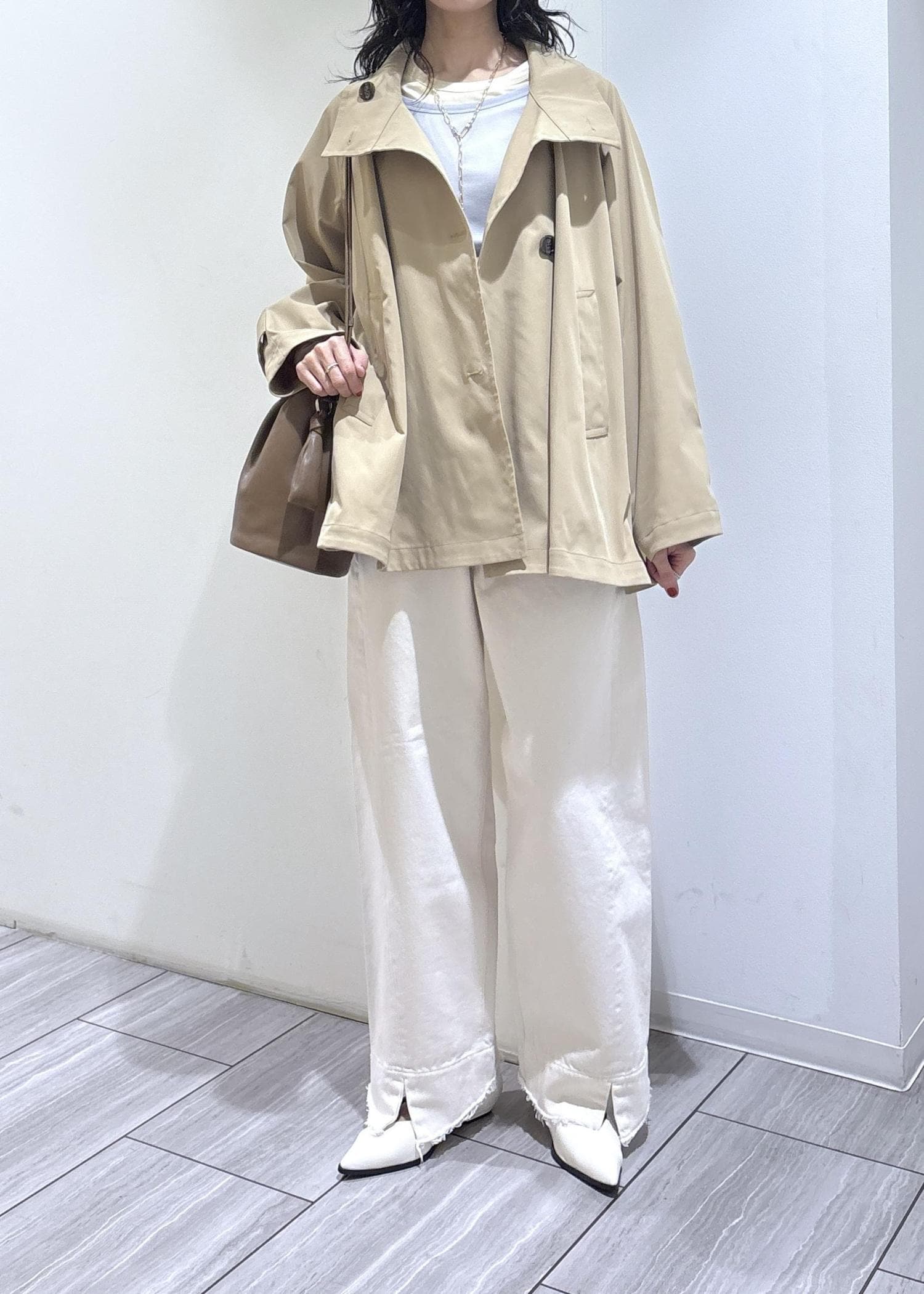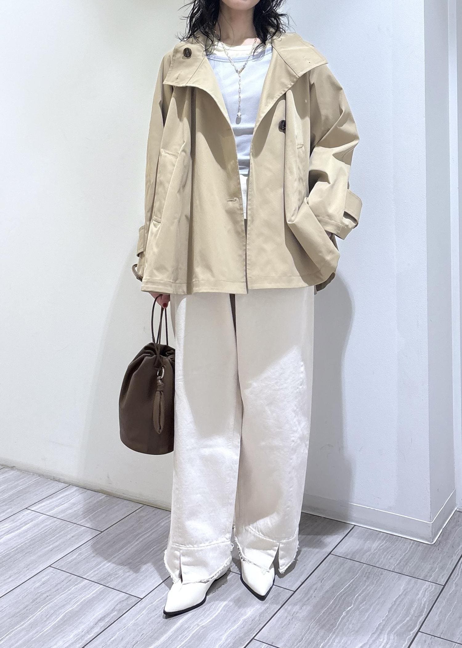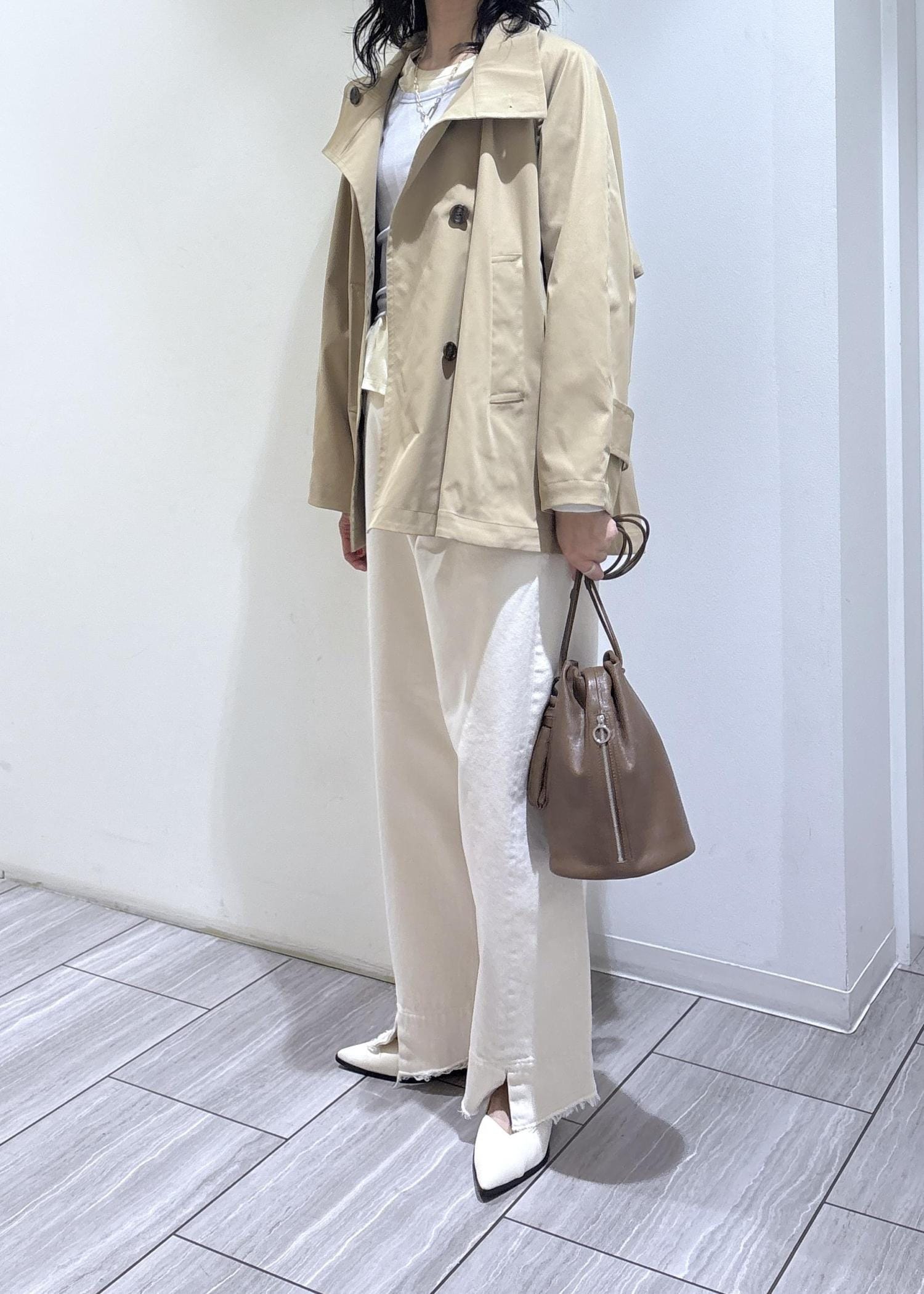 本日は、新作のトレンチコート主役に、ワントーンでまとめたカジュアルスタイルのご紹介です。