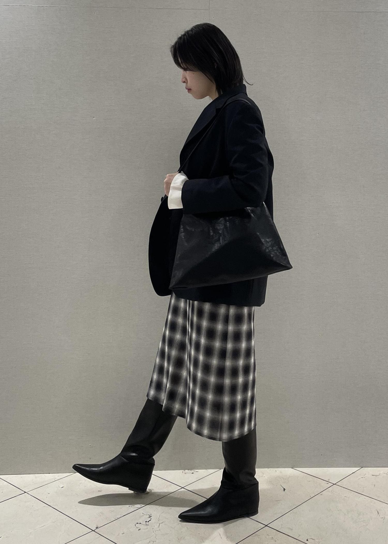 本日は新作のチェックブルオーバーを使って、かっこいいけれど、可愛さも感じられるようなモードコーデを組んでみました!!