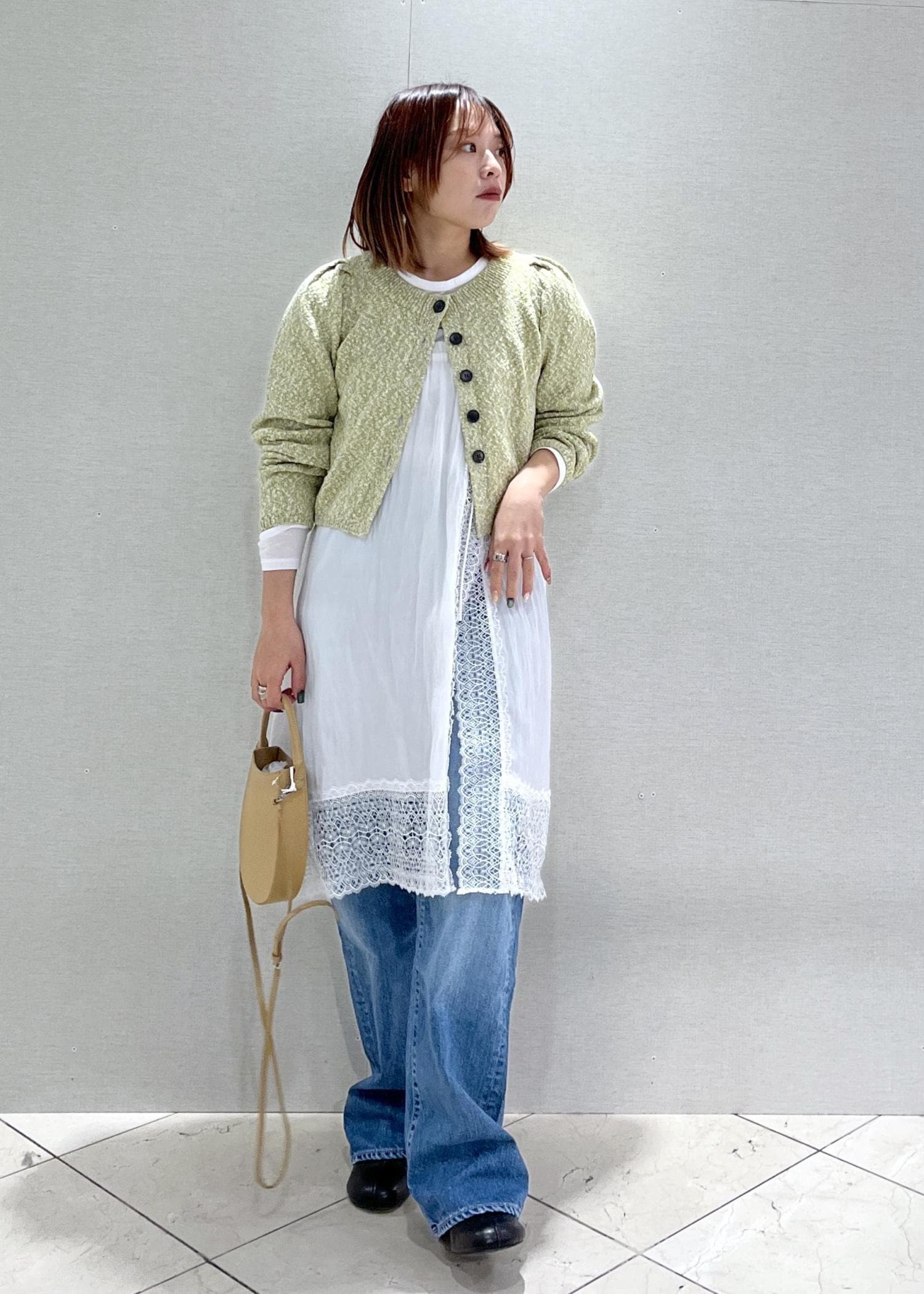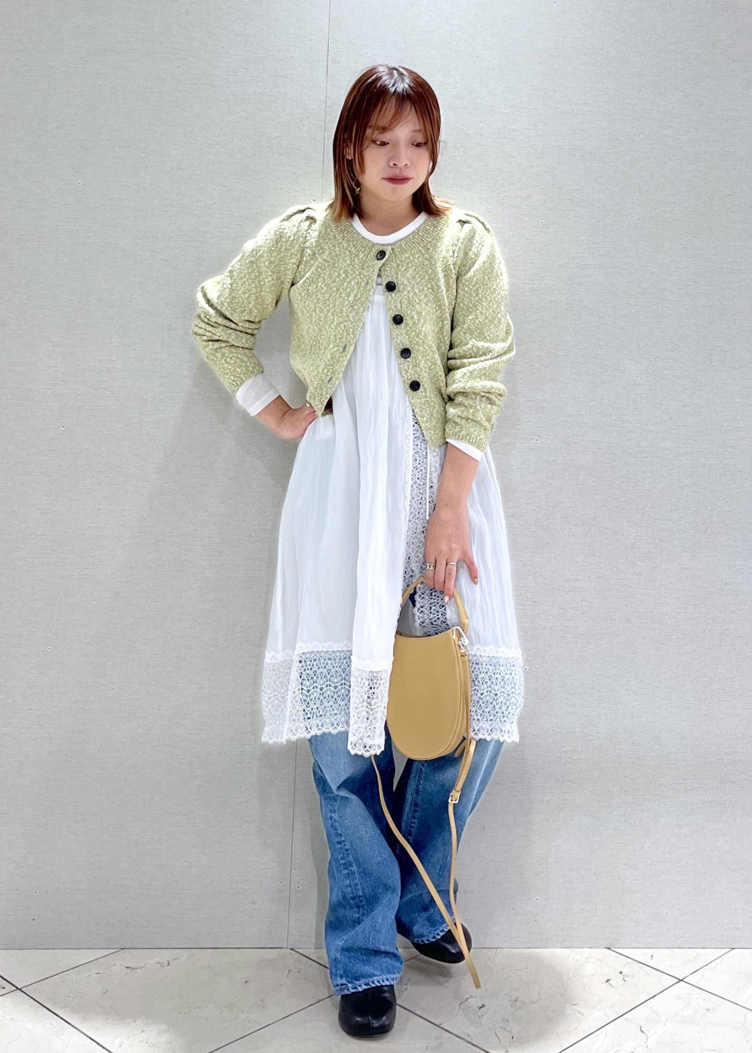 ADAM ET ROPÉ FEMME【サステナブル】カラーメランジパフスリーブカーディガングリーン系 / F¥22,000レビュー柔らかく新車さんもありますが、リブのデザインがすっきりしていて着痩せします