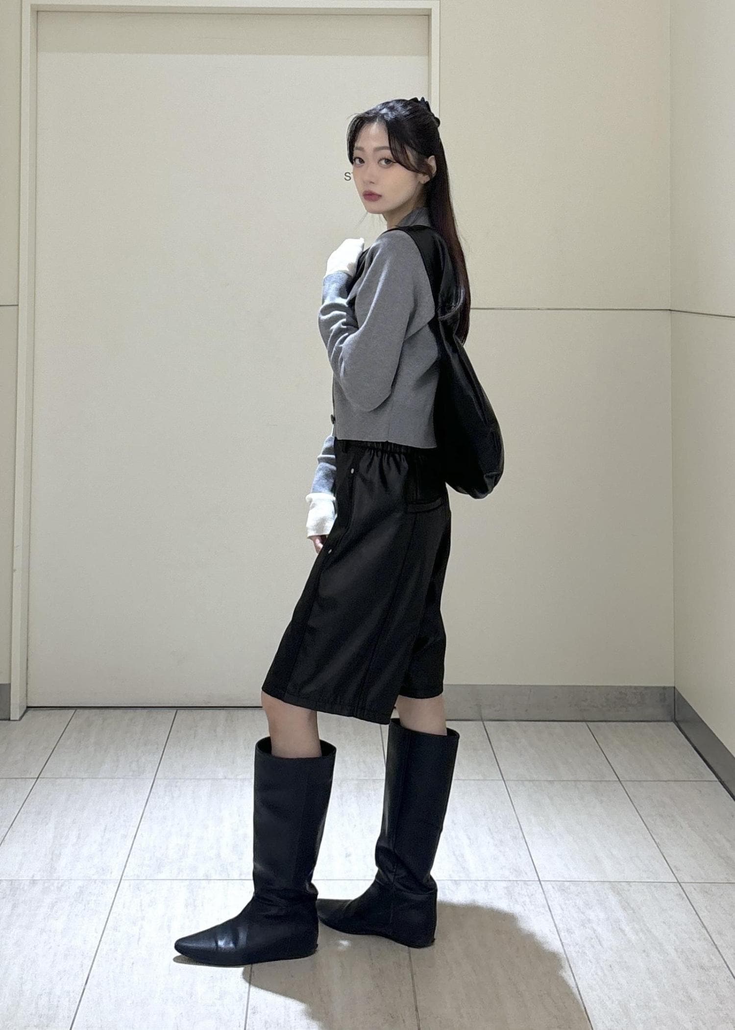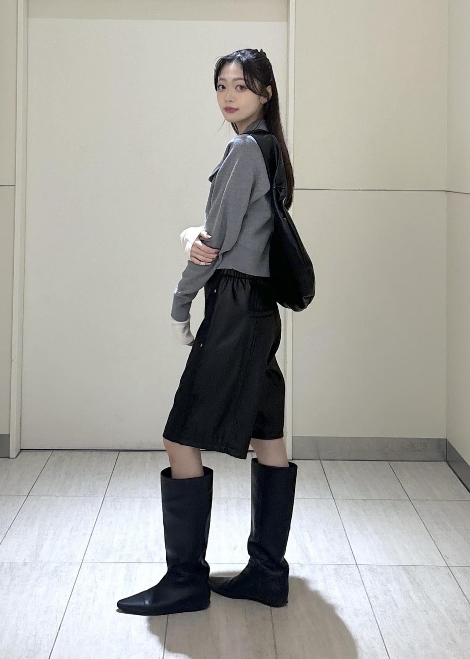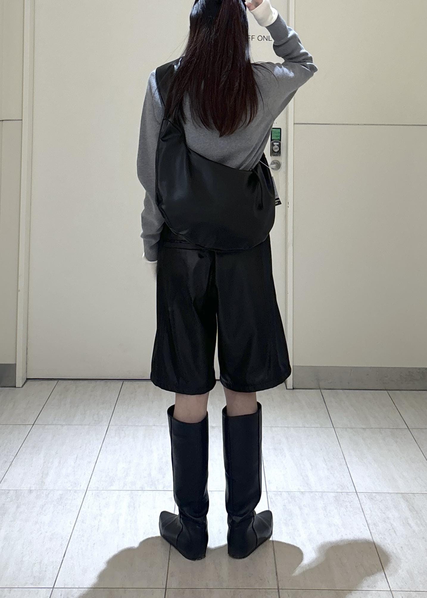 ADAM ET ROPÉ FEMMEグロスコクーンハーフパンツブラック / 36¥11,220レビュー膝上の丈感でスッキリとした印象です◎