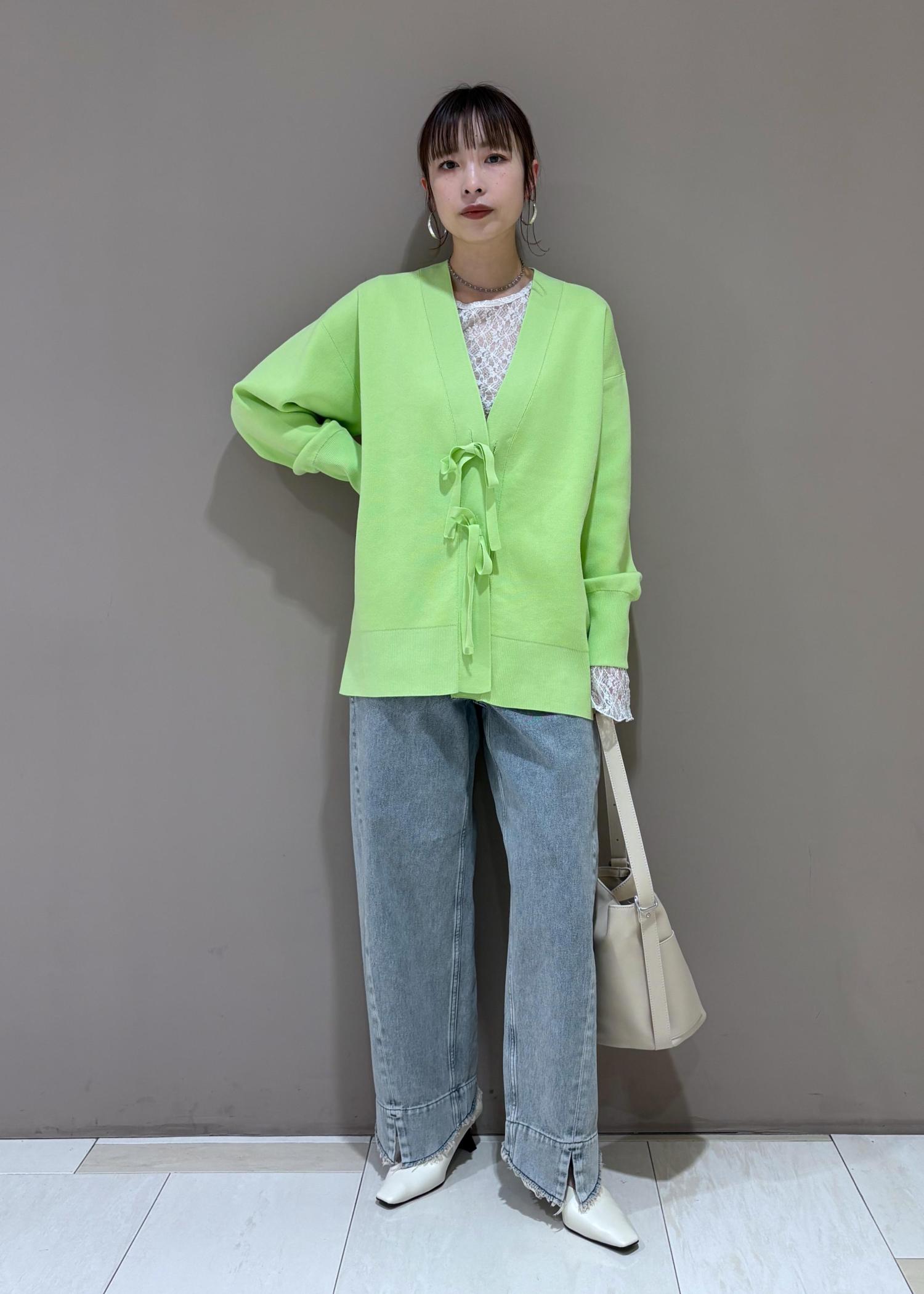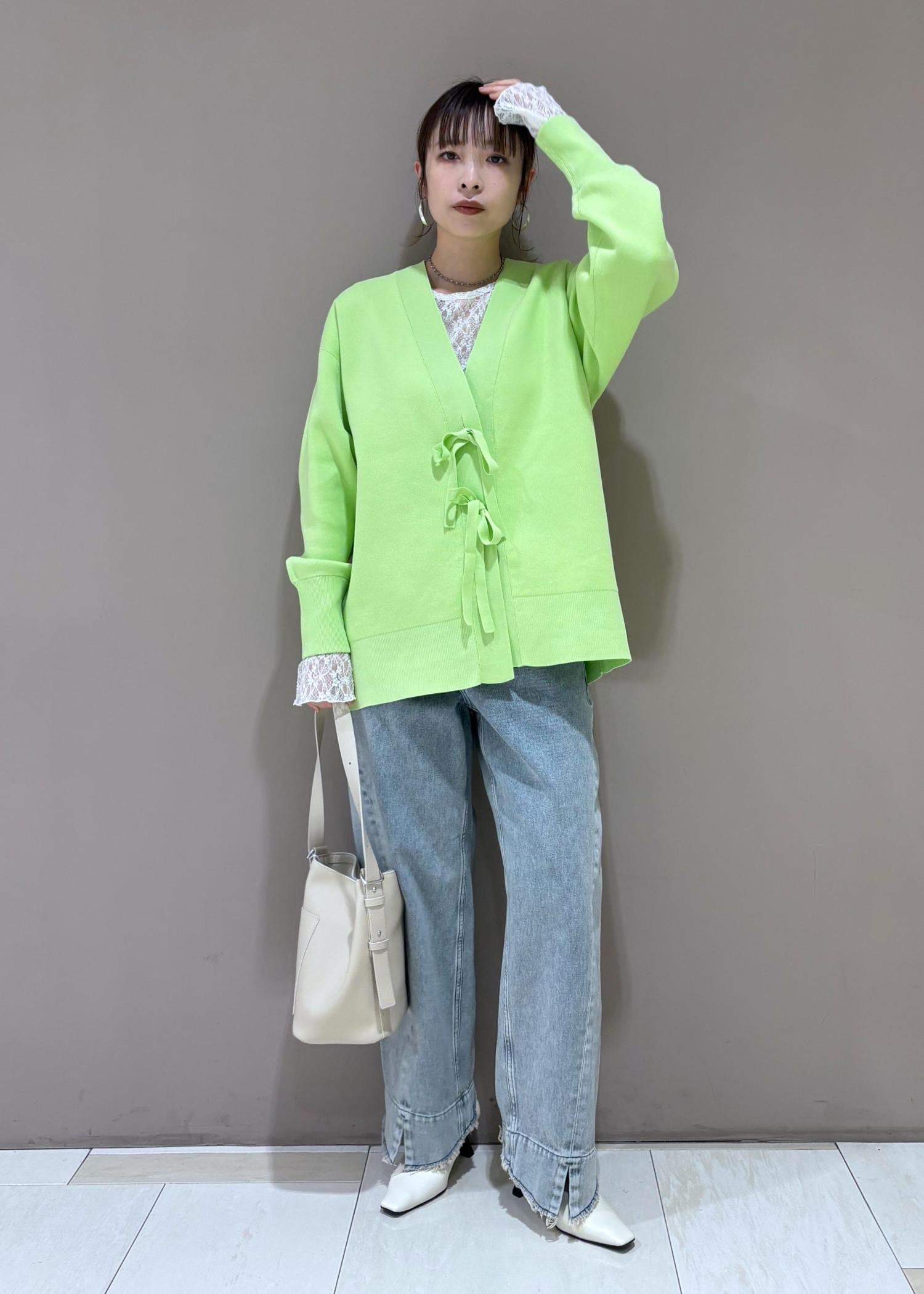 ADAM ET ROPÉ FEMME【サステナブル】マルチwayリボンミドルカーディガンライトグリーン / F¥18,150レビュー2パターンのボタンのデザインを楽しめるカーディガン◎