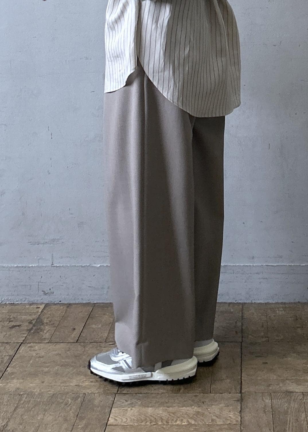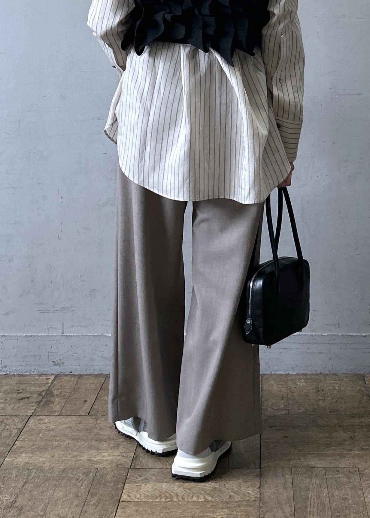 ワイドパンツですが、カジュアルすぎずキレイめなアイテムとの相性も◎ -