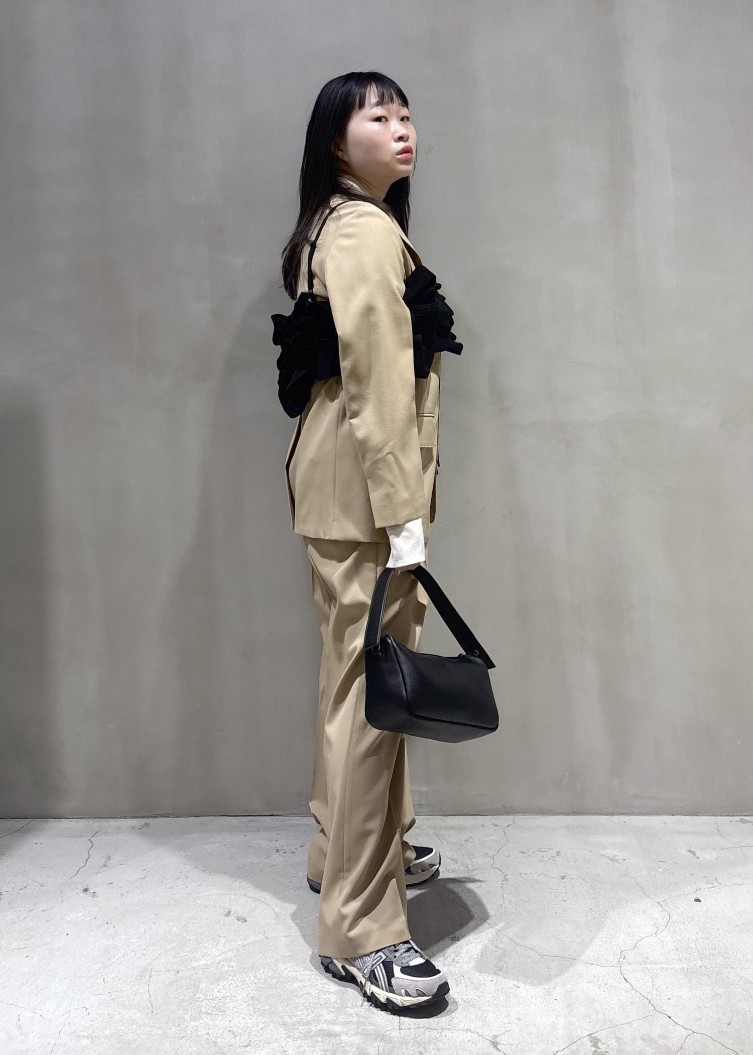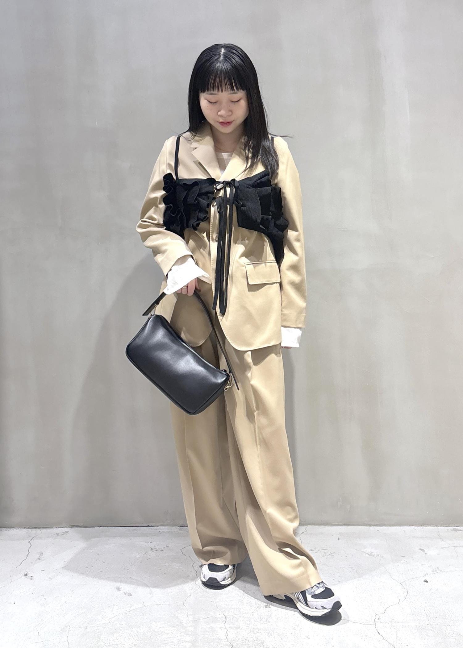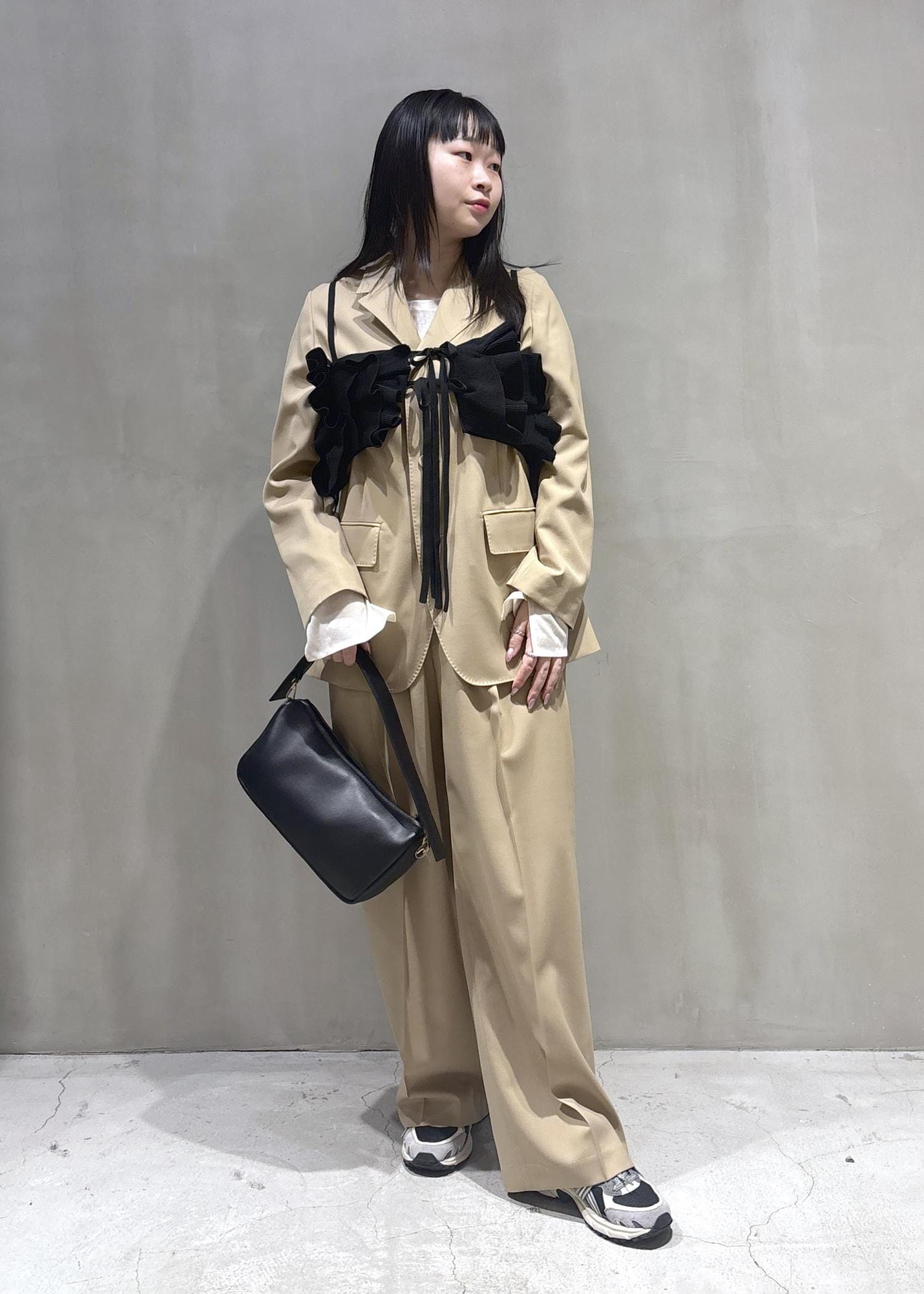 今回はベージュのセットアップにビスチェを使用したきれいめカジュアルスタイリングを作りました♪