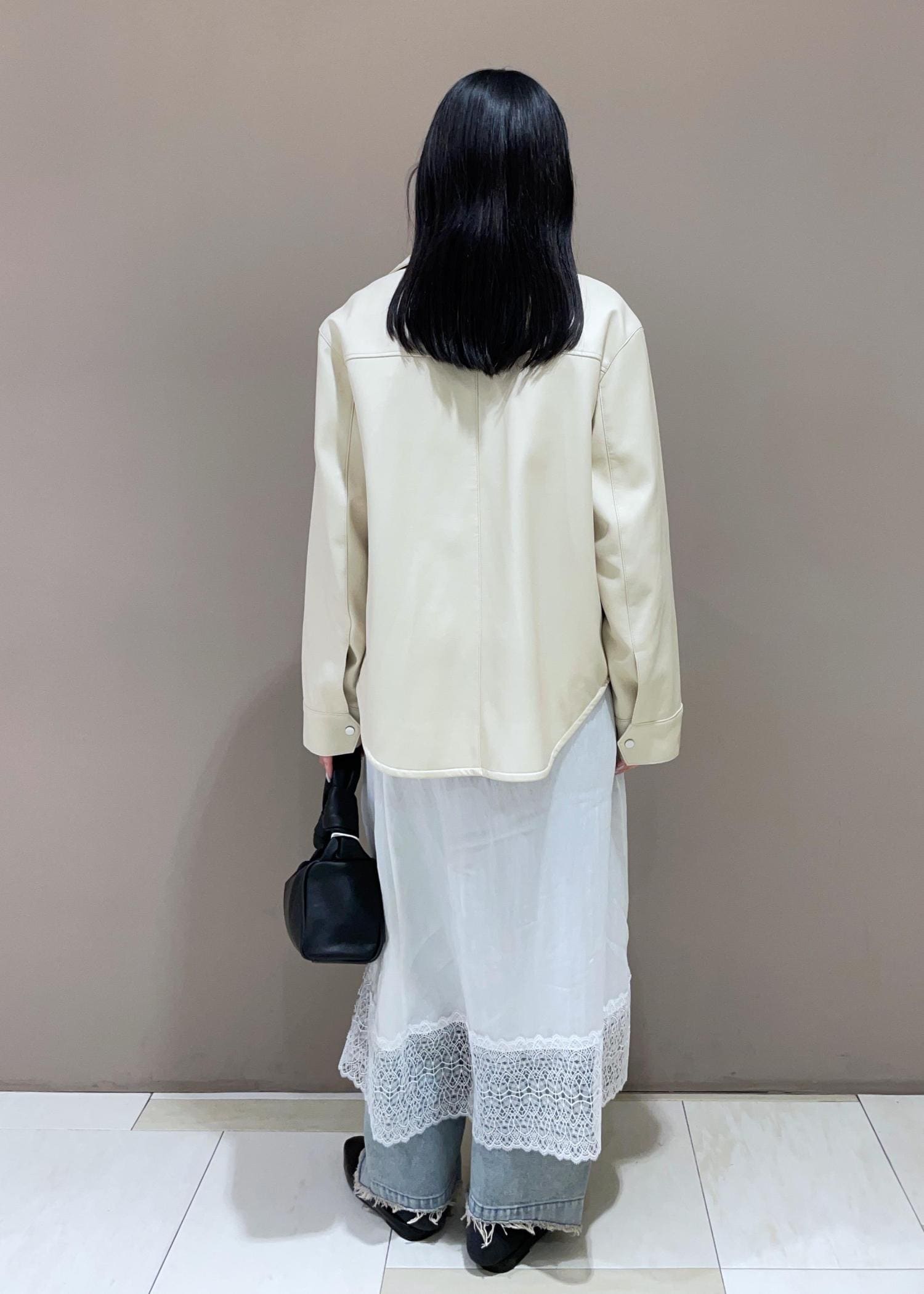 ベージュのレザーブルゾンを使った春コーデのご紹介です!