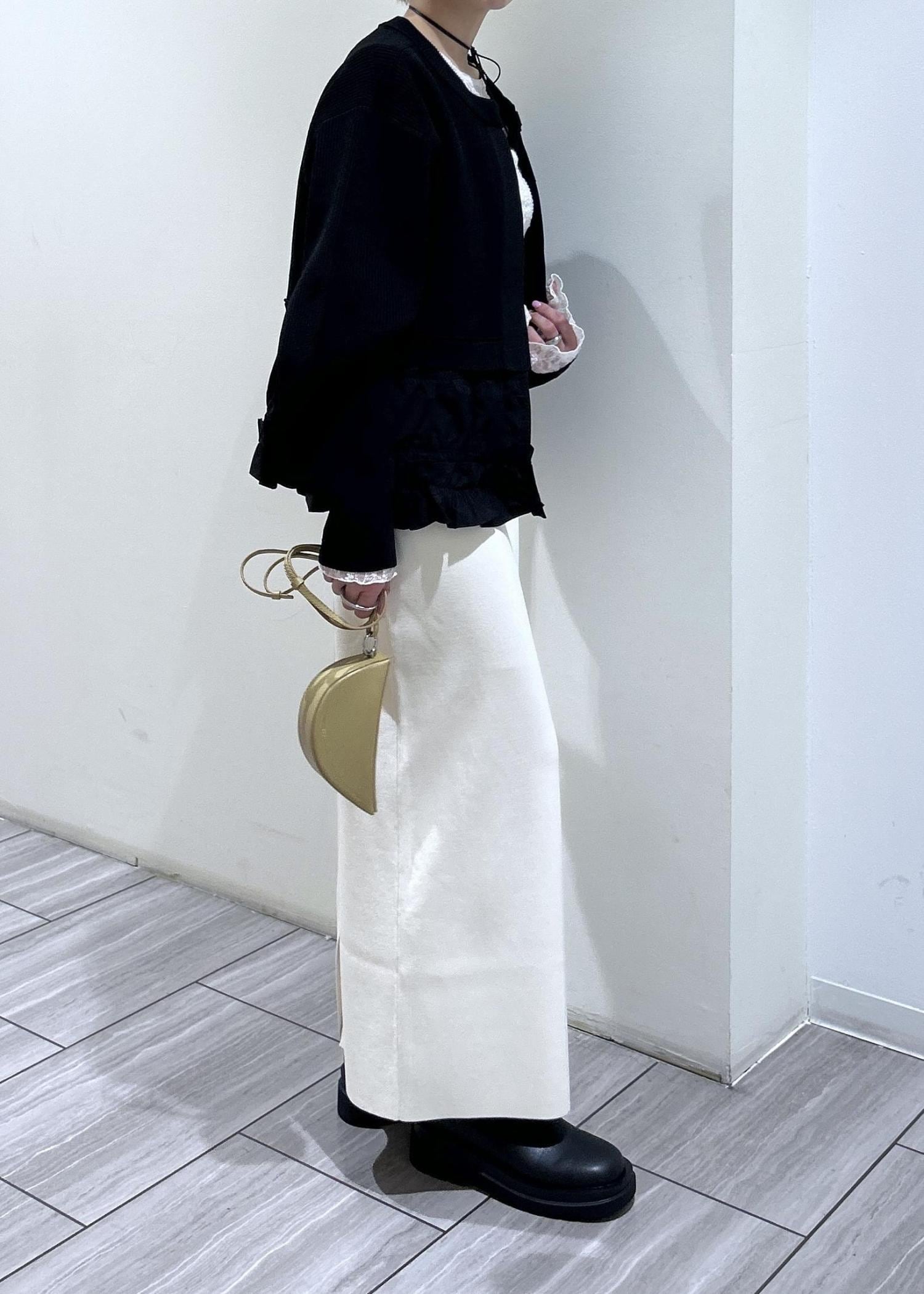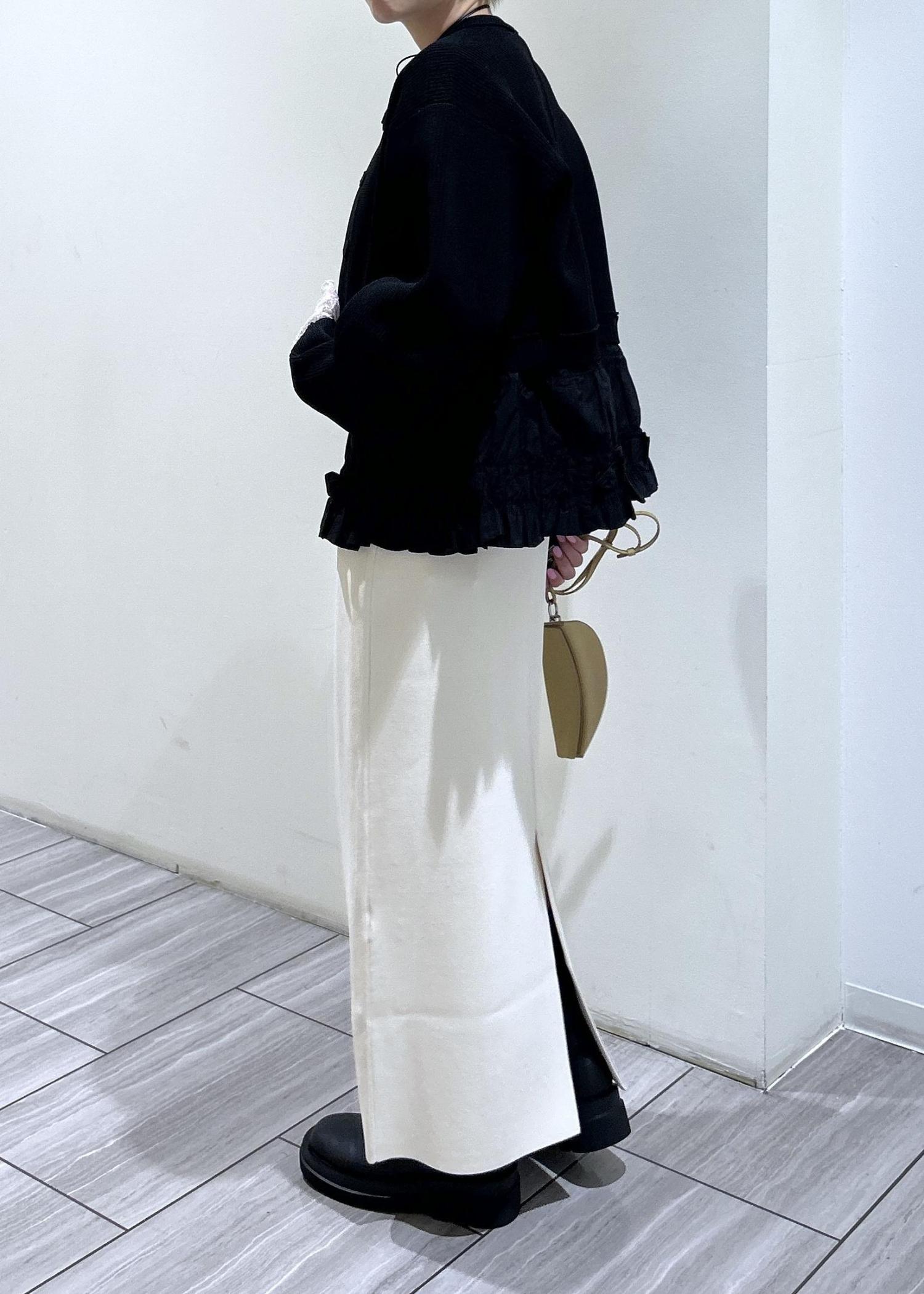 ADAM ET ROPÉ FEMME【サステナブル】ニットストレートスカートオフホワイト / 36¥17,600レビュー身体のラインを拾いすぎず、程良いシルエットで着用できます!ウエストはゴム仕様になっています◎