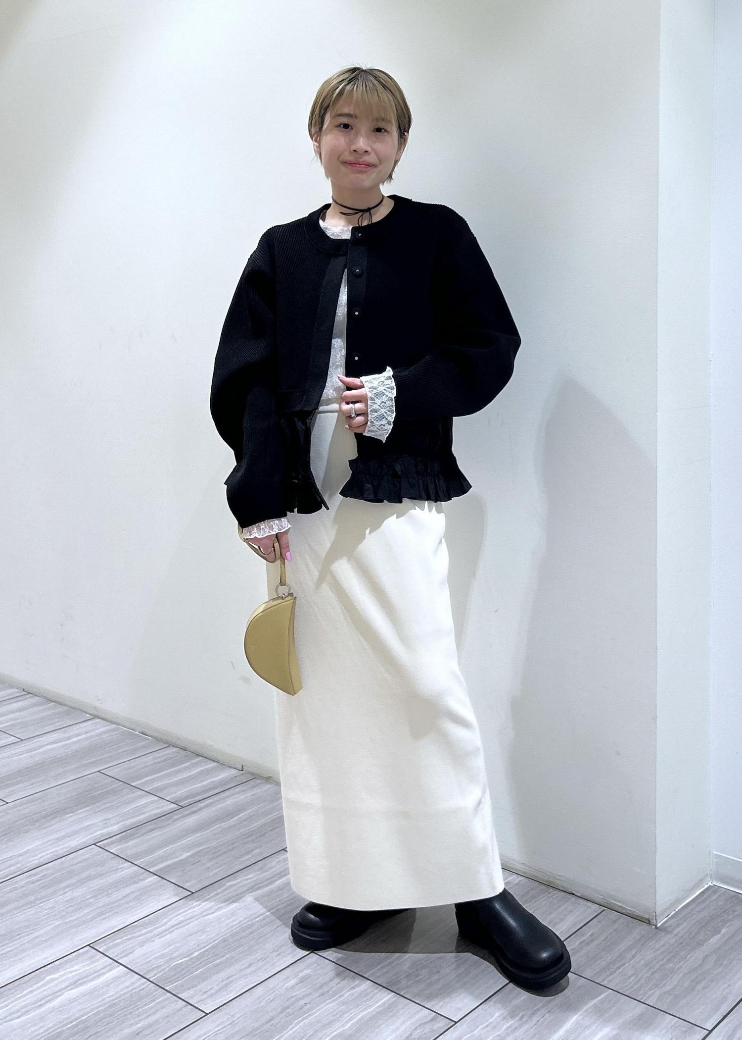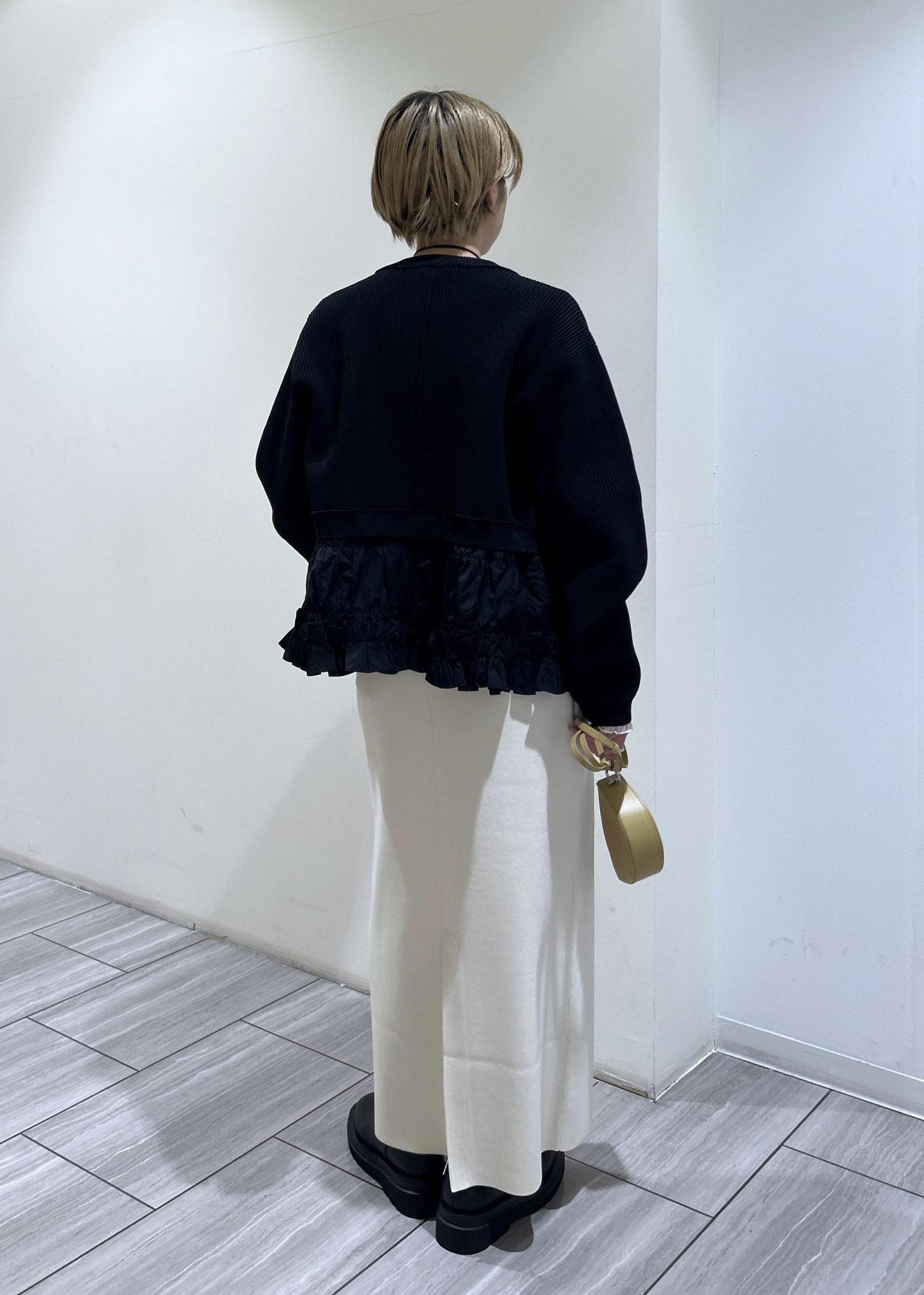 ADAM ET ROPÉ FEMME【サステナブル】ギャザーフリルコンビカーディガンブラック / F¥18,700レビュー1枚着としても羽織としても着回しできます!生地感はしっかりしていて、袖のフォルムがポイント◎