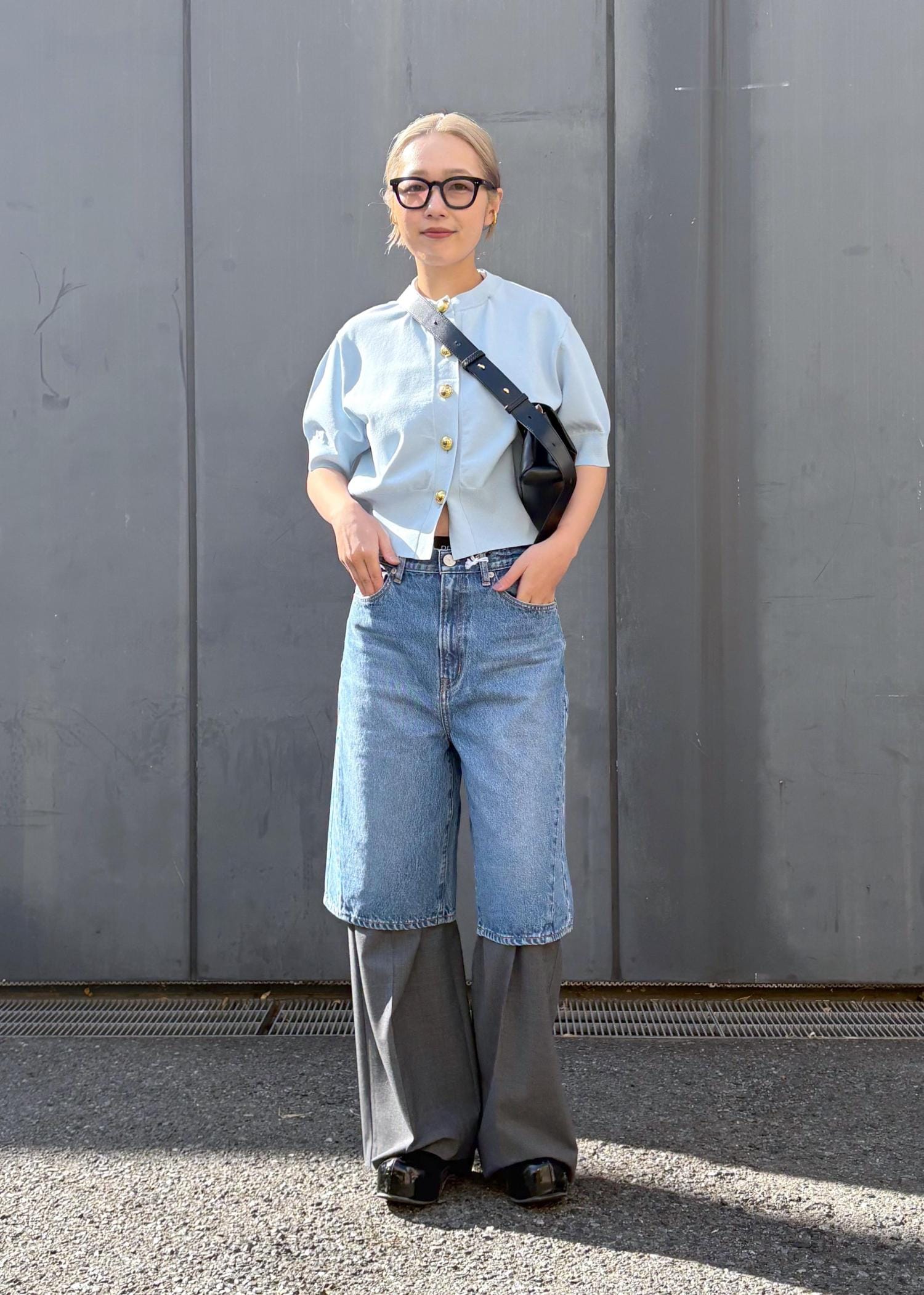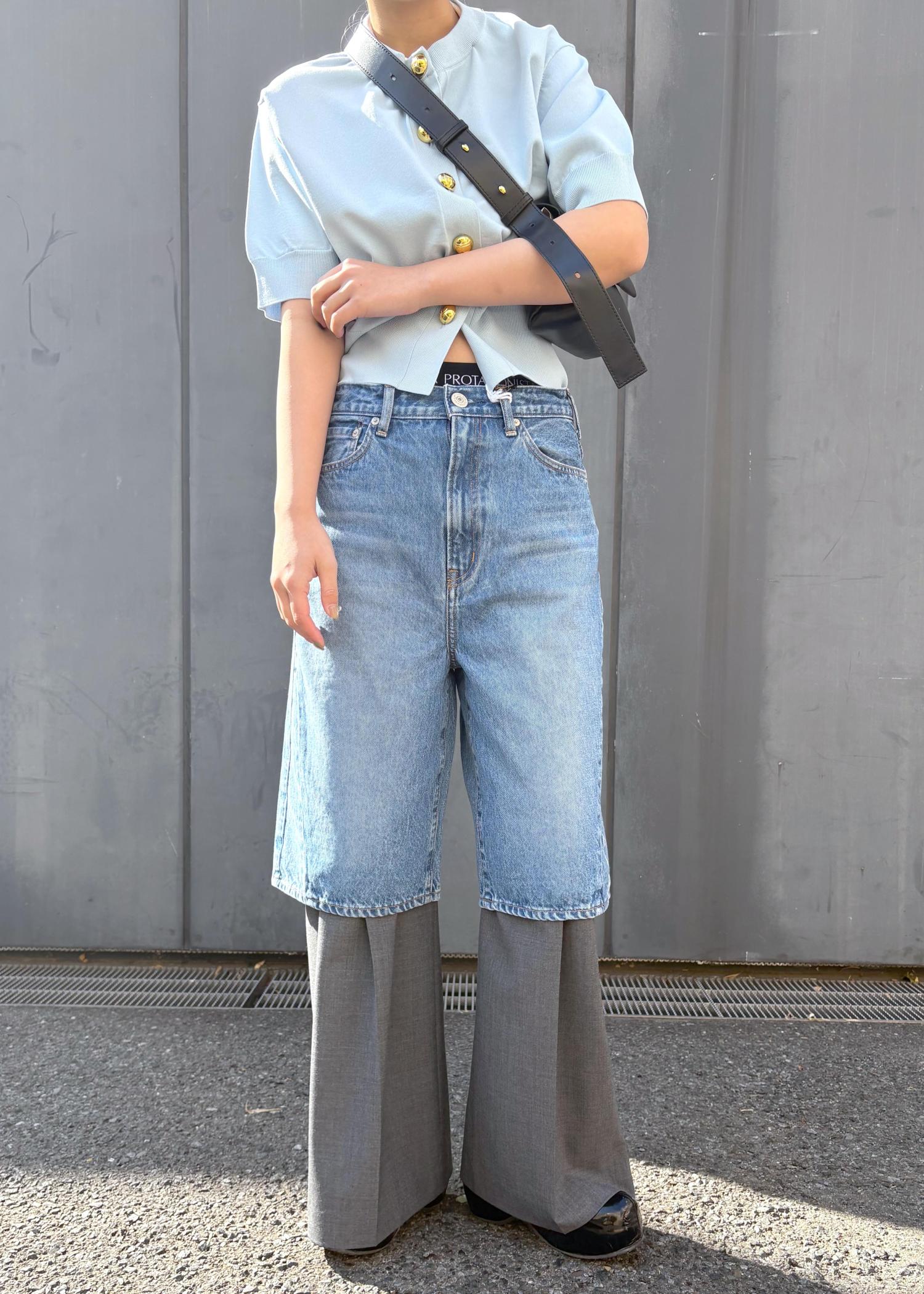 コンパクトなシルエットにハーフデニムをレイヤード。