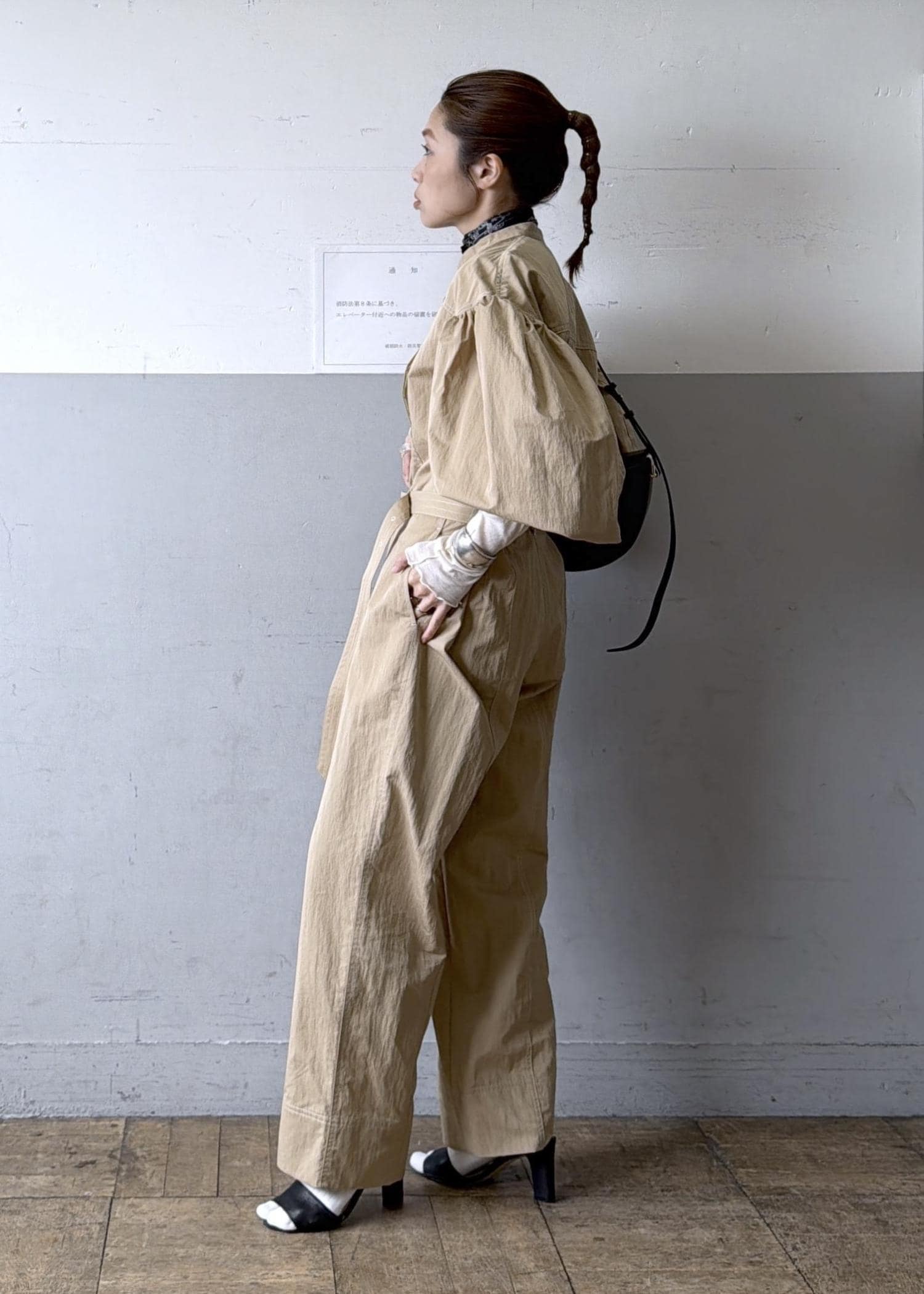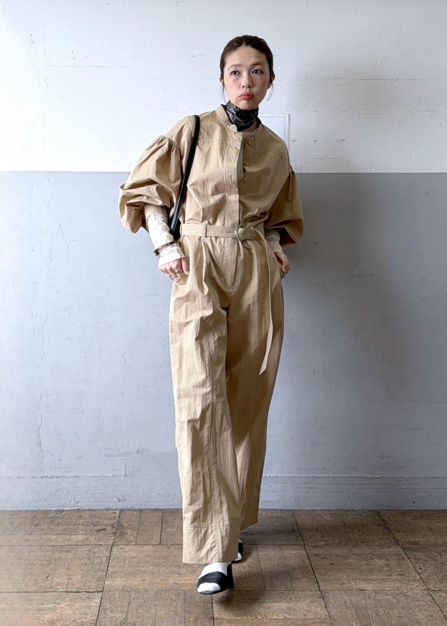 EMOELLE【EMOELLE】パフスリーブオールインワンベージュ / 36¥41,800レビュー普段36を着用し、こちらも同サイズでフラットシューズで合わせられる着丈でした。