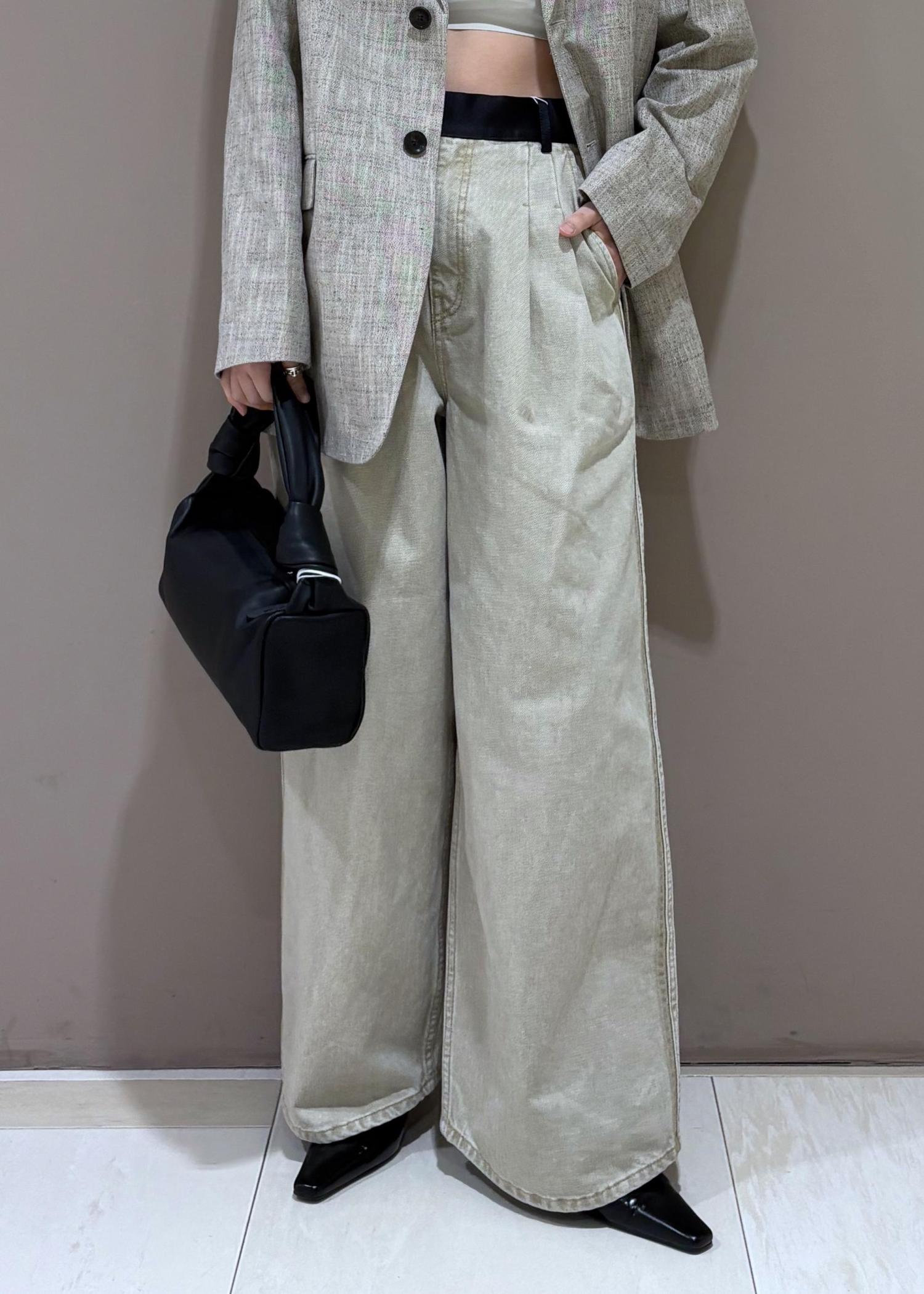NEW!EMOELLE【EMOELLE】ドレスデニムパンツ(バイオ加工)ベージュ系 / 36¥24,200レビュー162cm.38サイズ着用。
