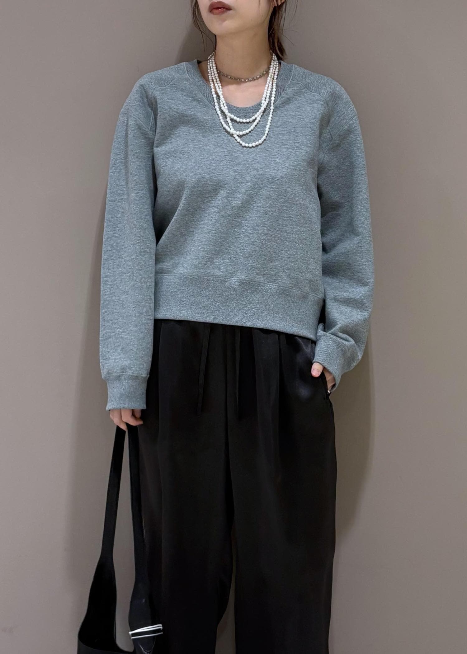NEW!EMOELLE【EMOELLE】スウェットプルオーバーグレー / F¥19,800レビュー162cm.フリーサイズ着用。