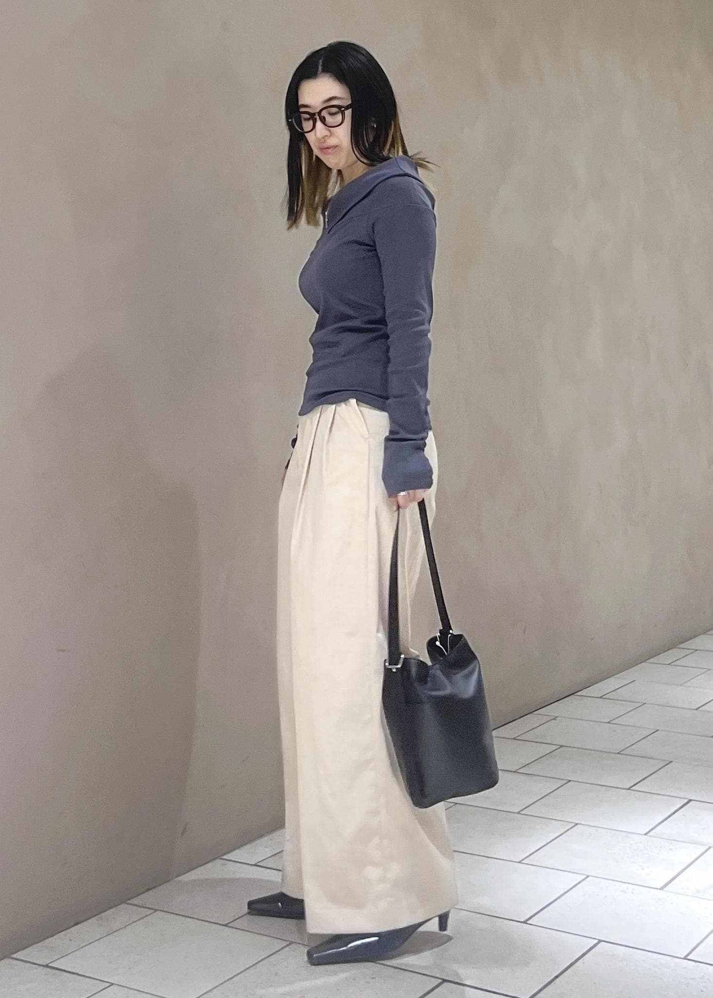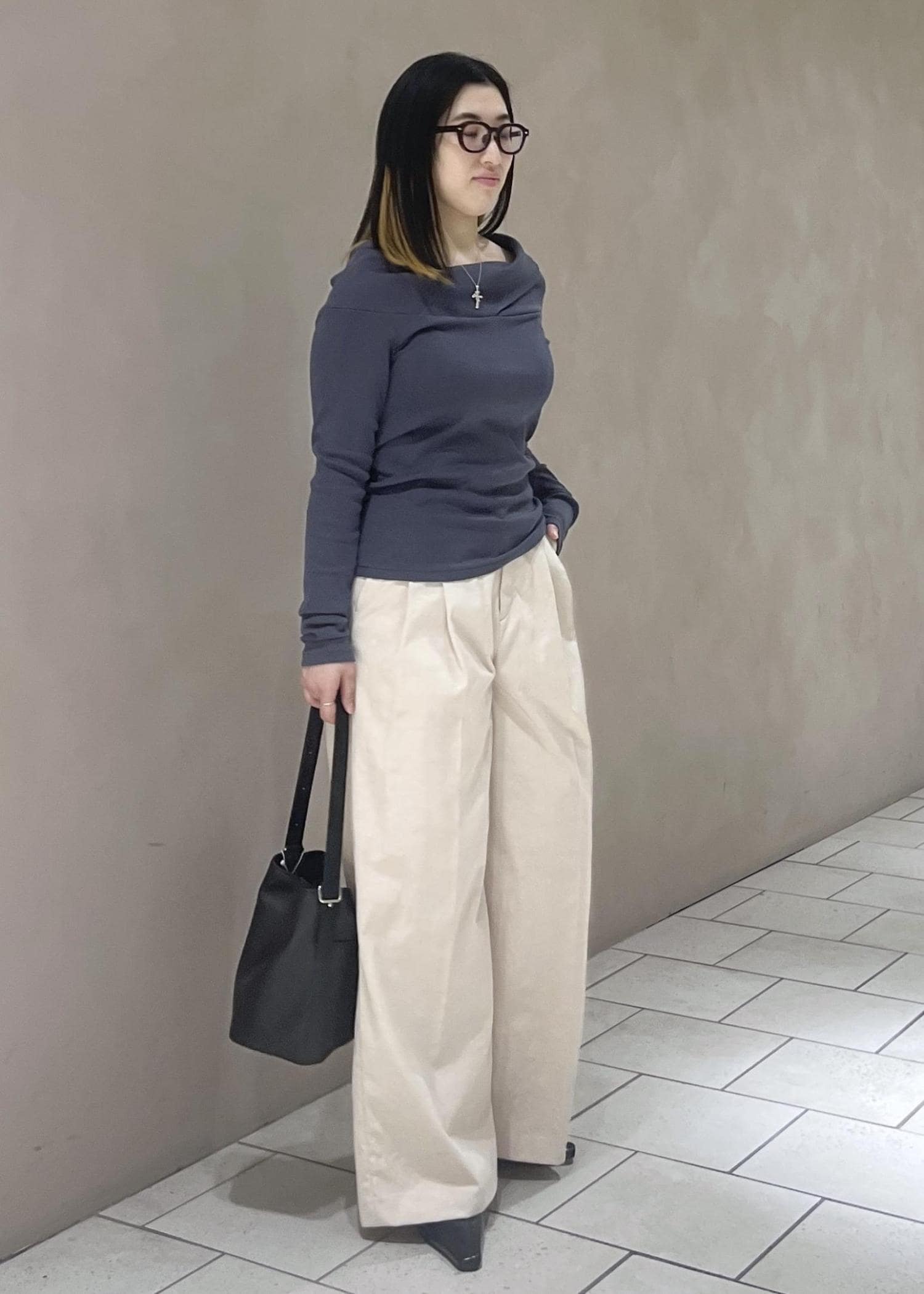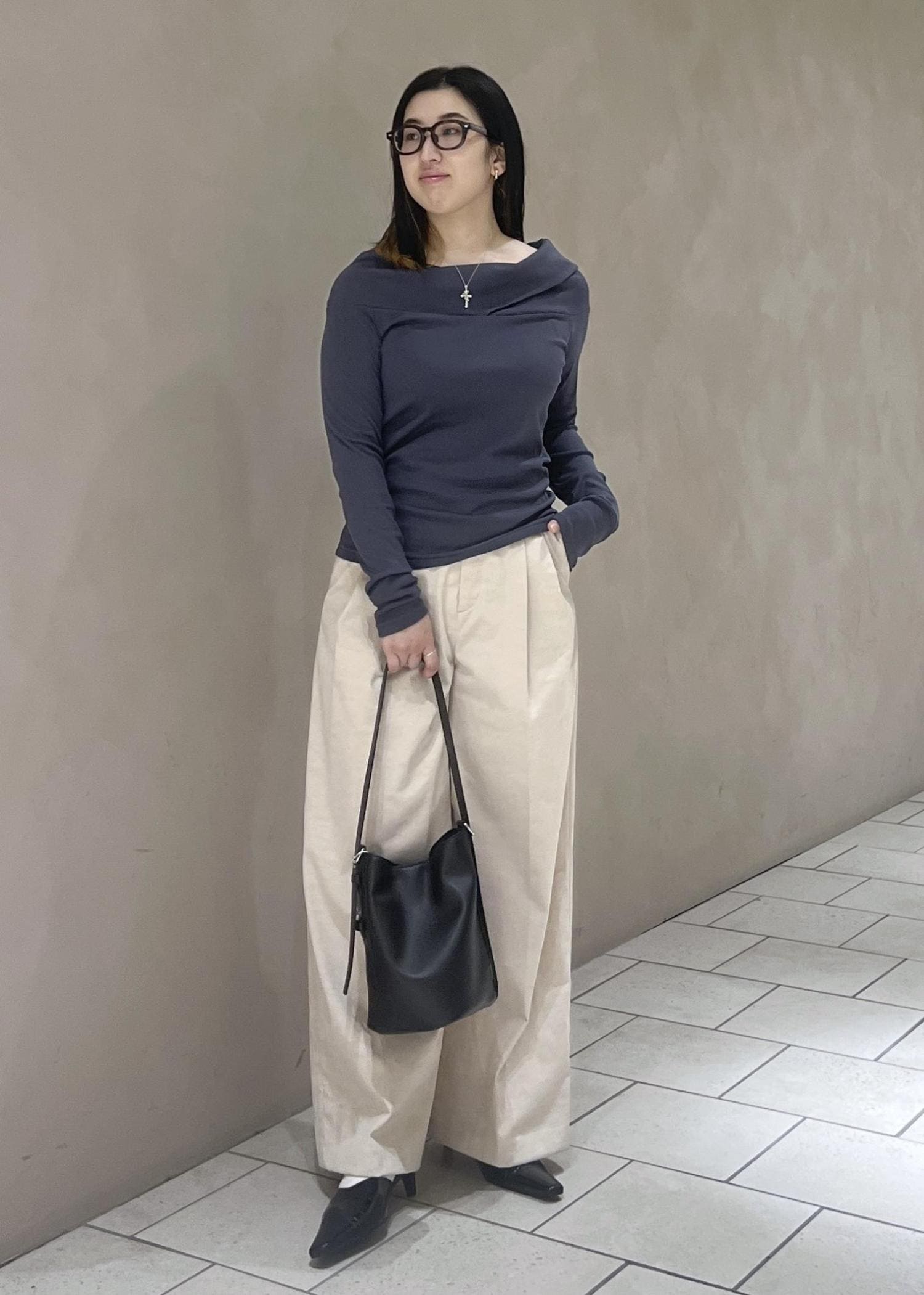 オフホワイトの色感が絶妙で何にでも合わせやすく上品な印象にしてくれます♪