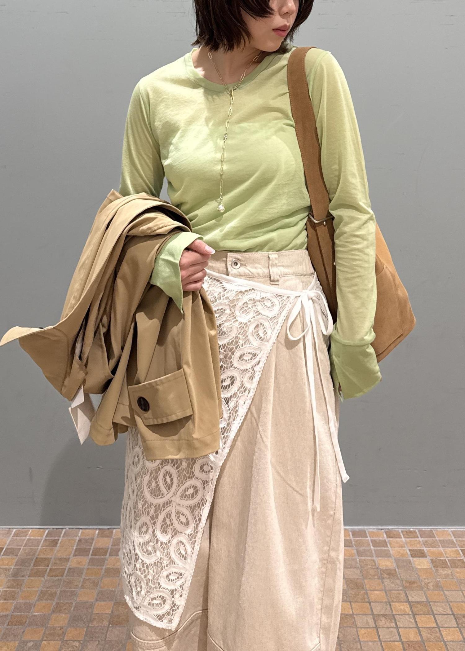 今回は、春らしいカラーが目を引くトップスをコーデのポイントに使いました!