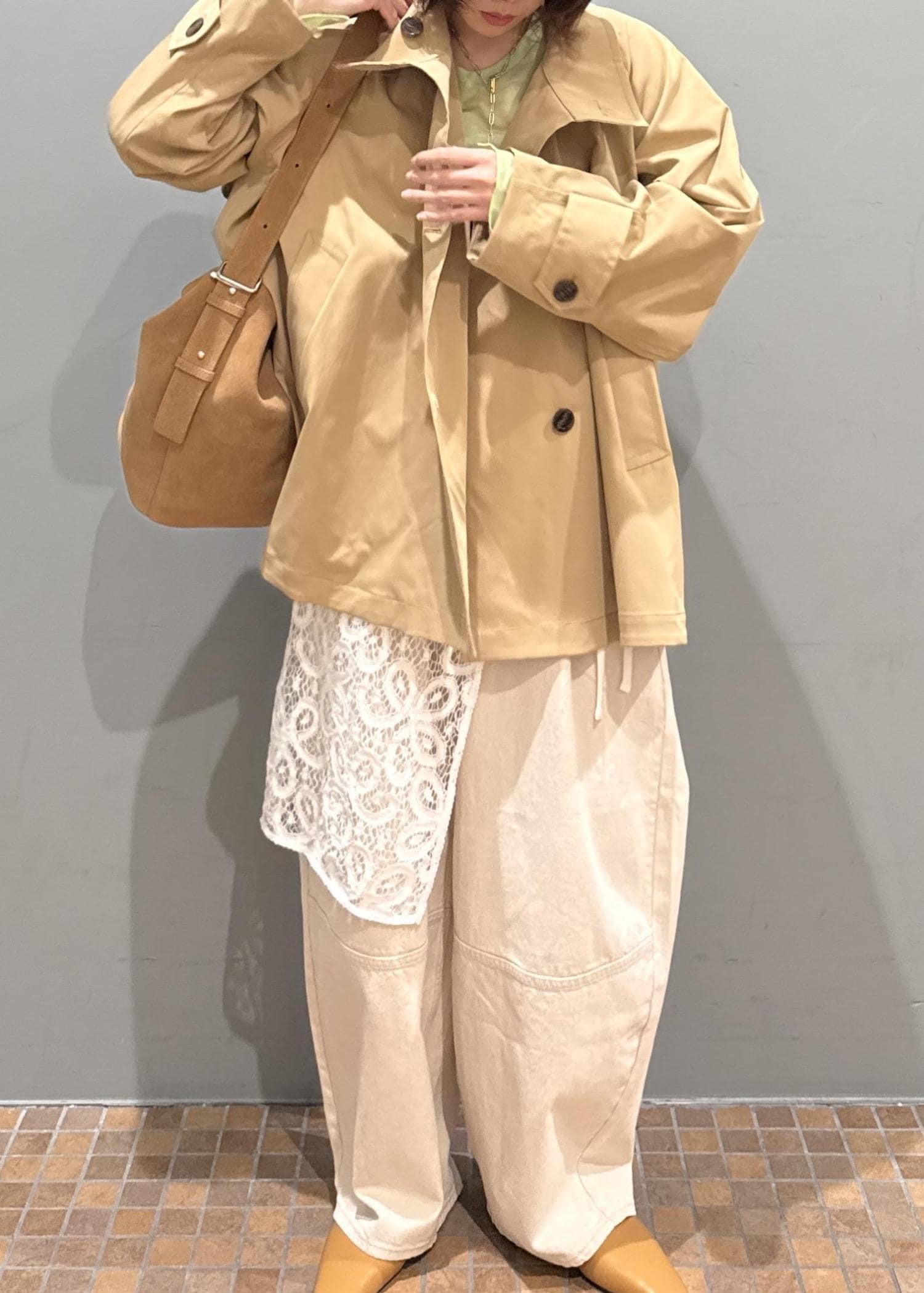 ADAM ET ROPÉ FEMMEフレアーミドルトレンチコートベージュ / F¥33,000レビューゆったりとしたサイズのため、サッと羽織るだけでこなれ感を演出してくれます。襟を立てて着用も可能なのでシーンに合わせて使えるのも嬉しいポイント。