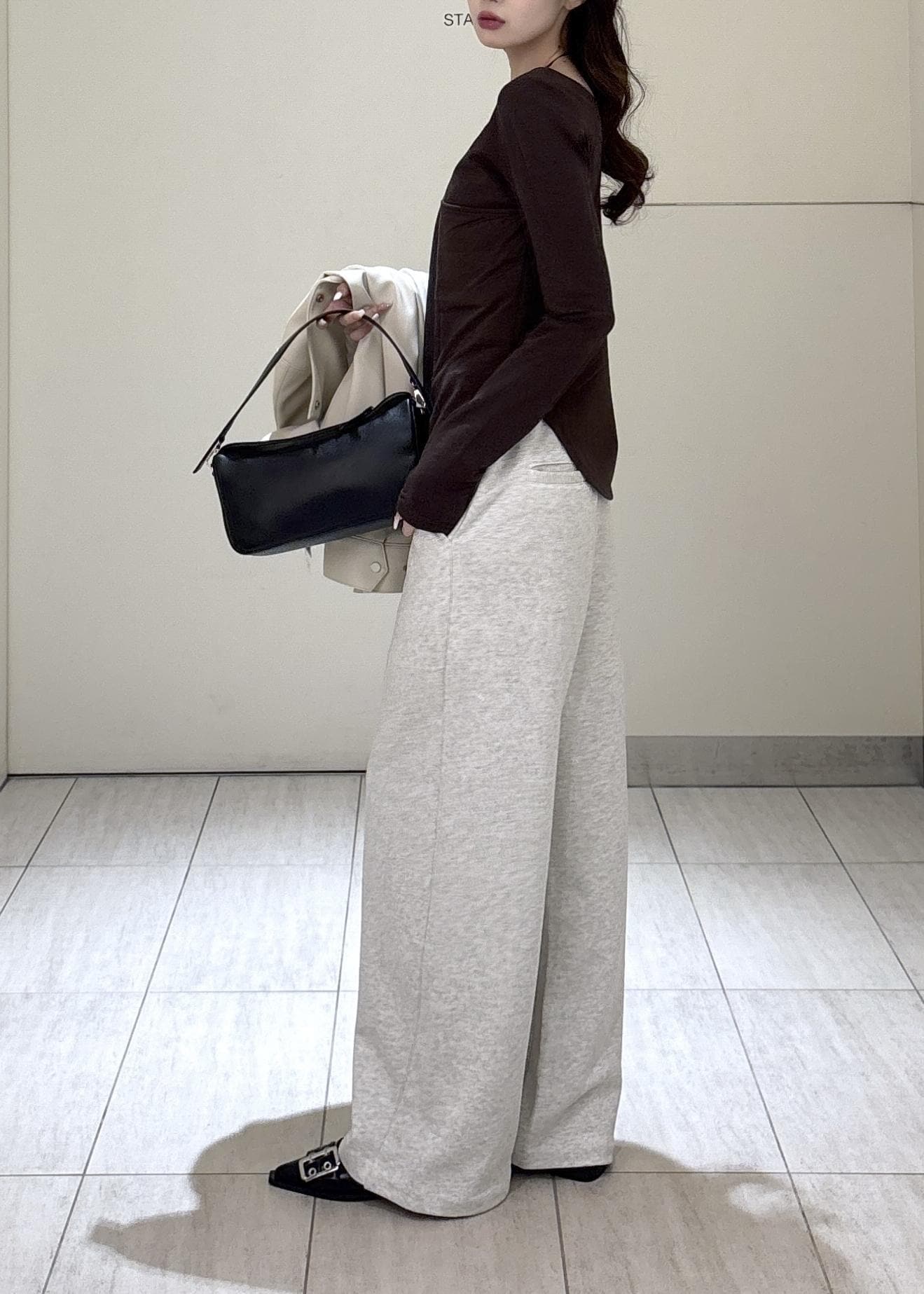 ウエストのデザインがスタイリングのポイントとなり、スウェットですがシンプルになりすぎず使いやすいです! -