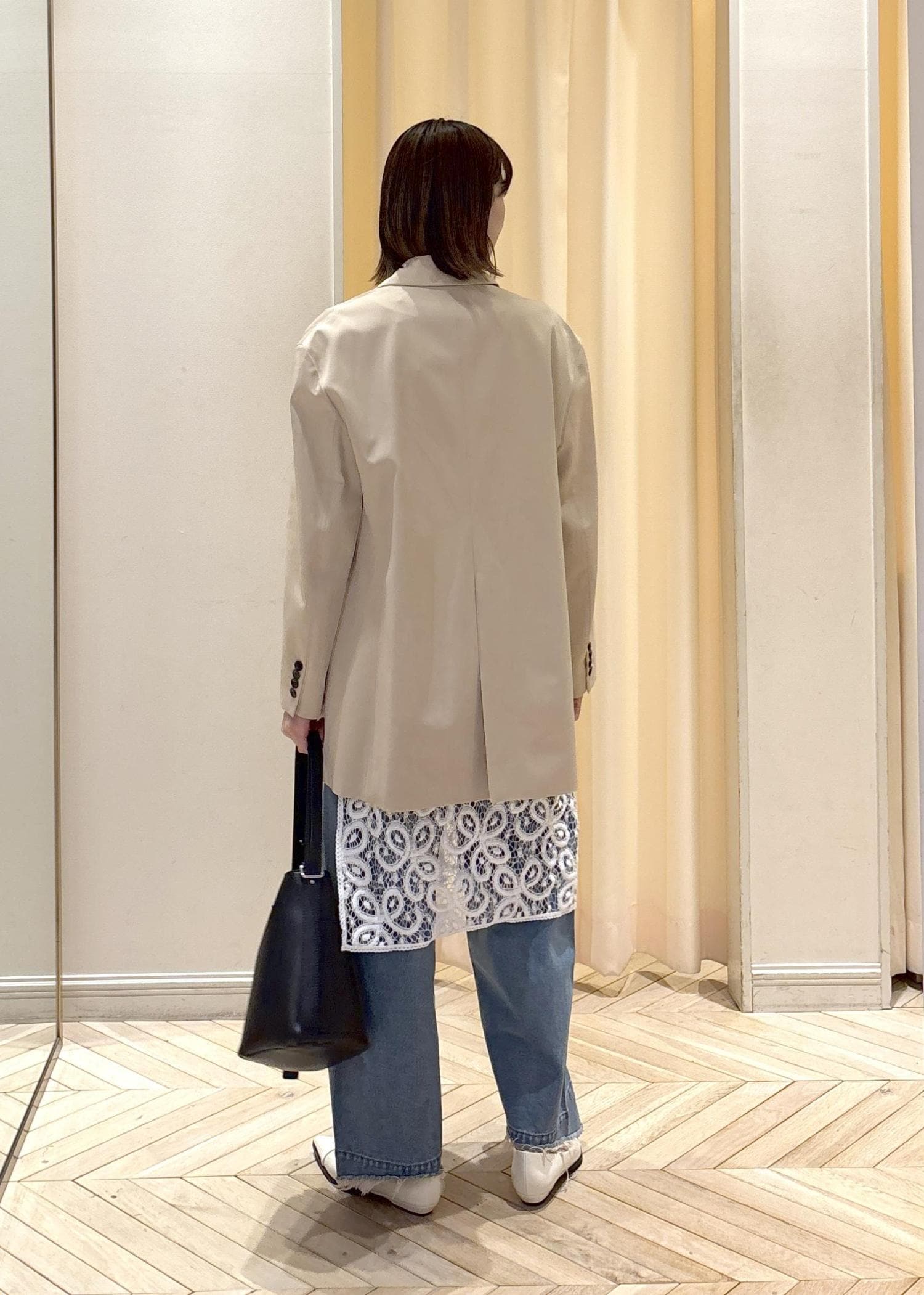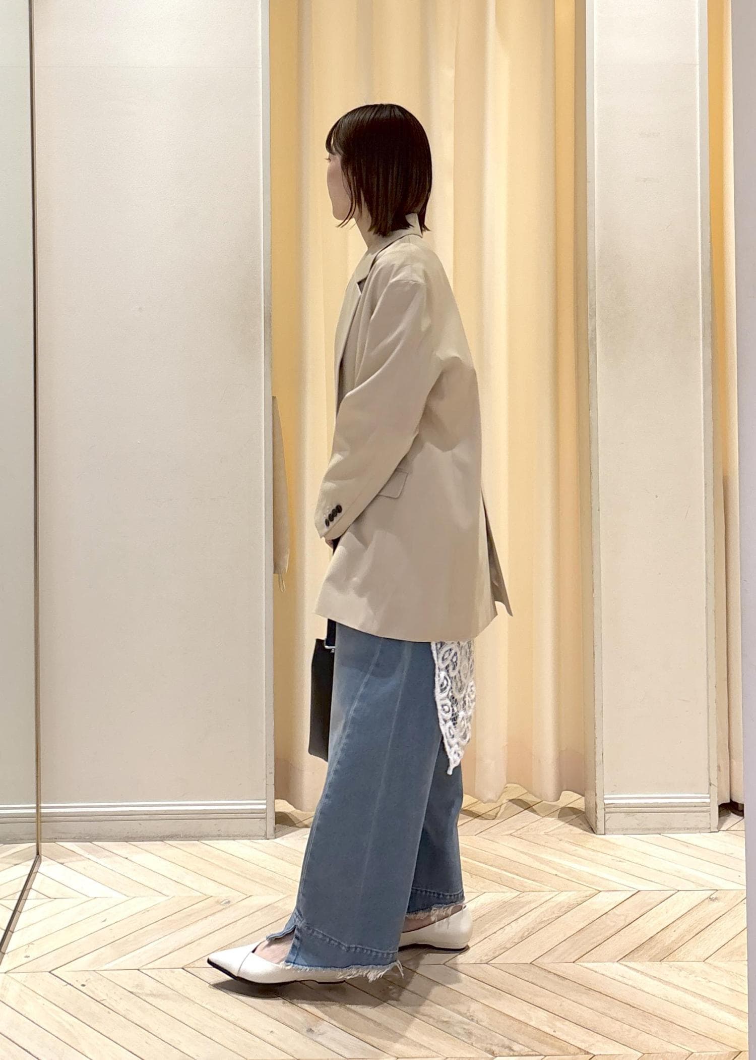 ADAM ET ROPÉ FEMMEシルキーリラックスジャケットベージュ / 36¥29,700レビュー身長160cmで、36サイズを着用。