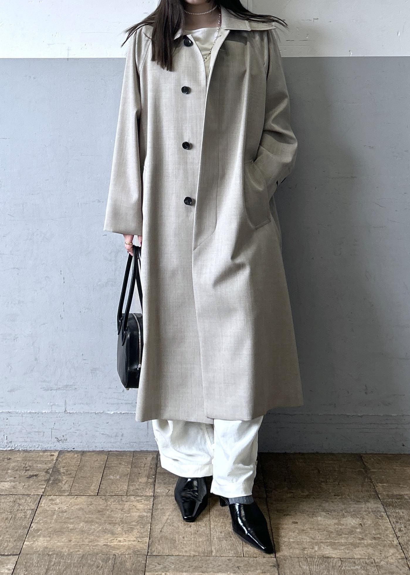 グレージュのようなカラーで、アイテムを選ばず合わせていただけます。