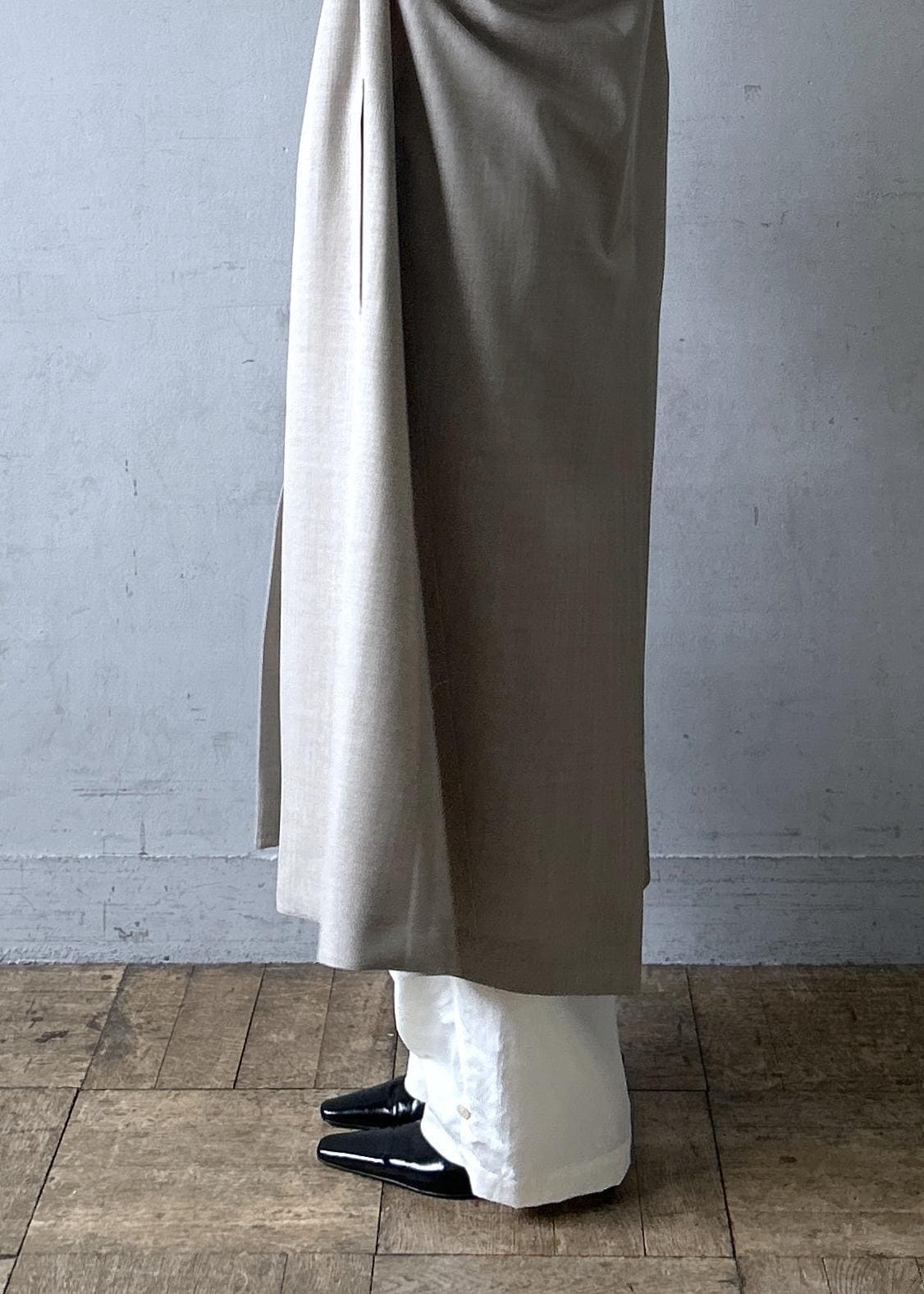 ボタンで裾の広がりを調節できるようになっているので、印象を変えて使っていただけるデザインです。