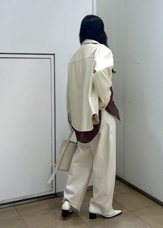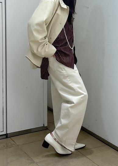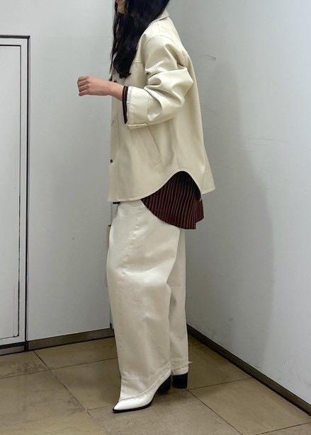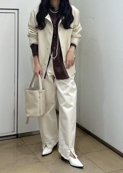 パンツの裾部分がポイントで前が少し長くスリットが入っており、後ろは少し短くなってます。 -
