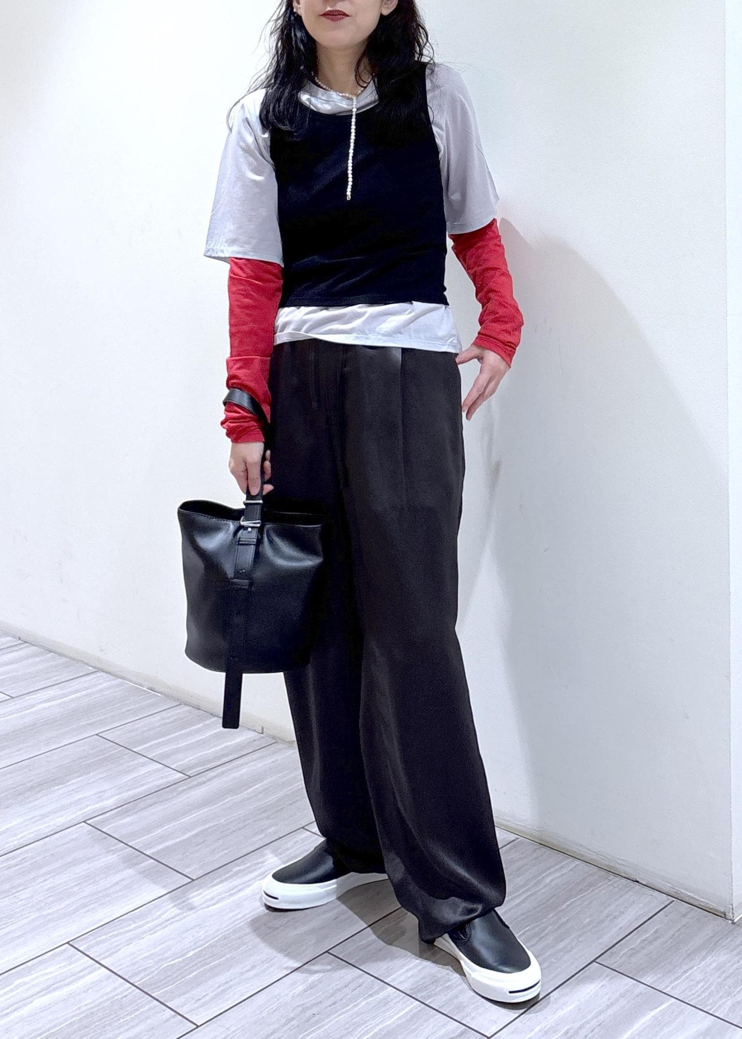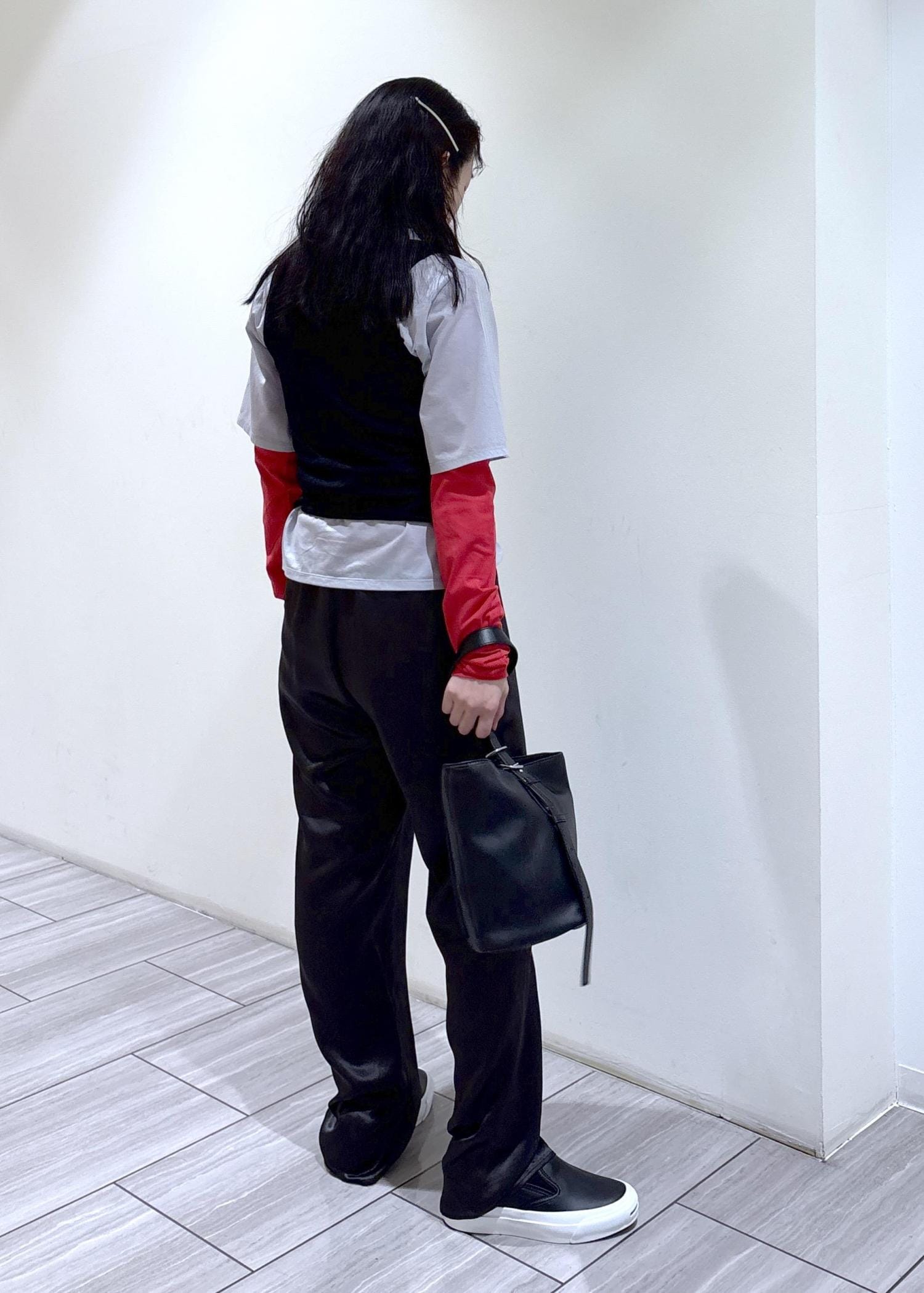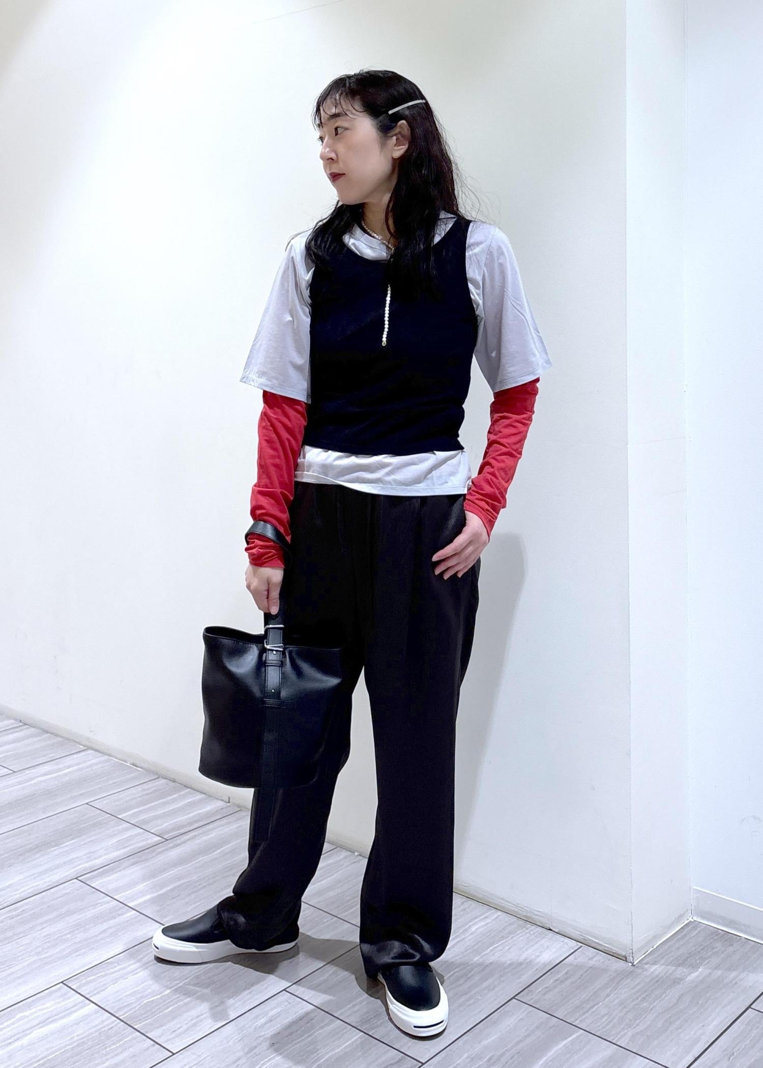 今回はシンプルにサテンパンツでスタイリングし、トップスのデザインを引き立たせてみました^ ^