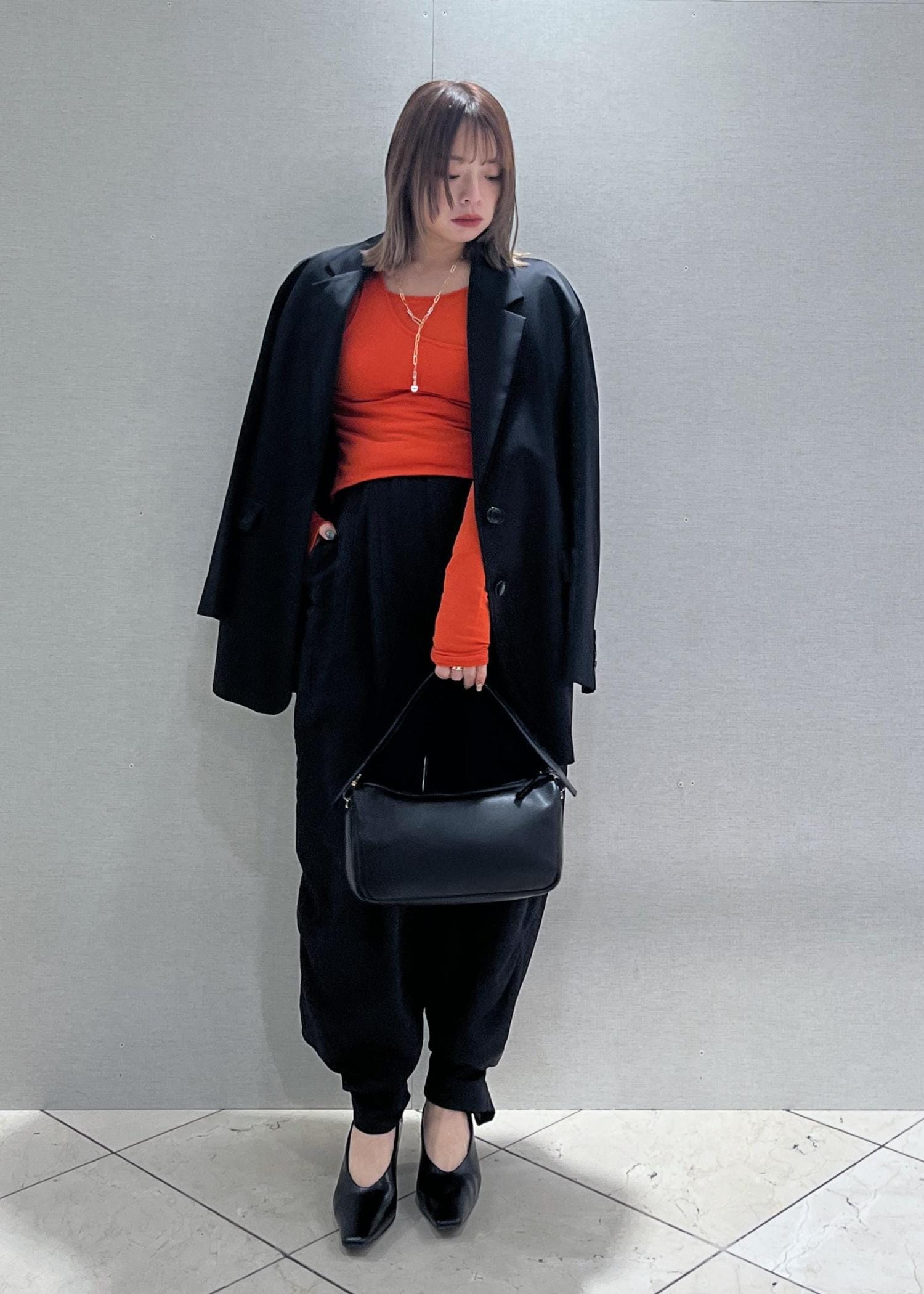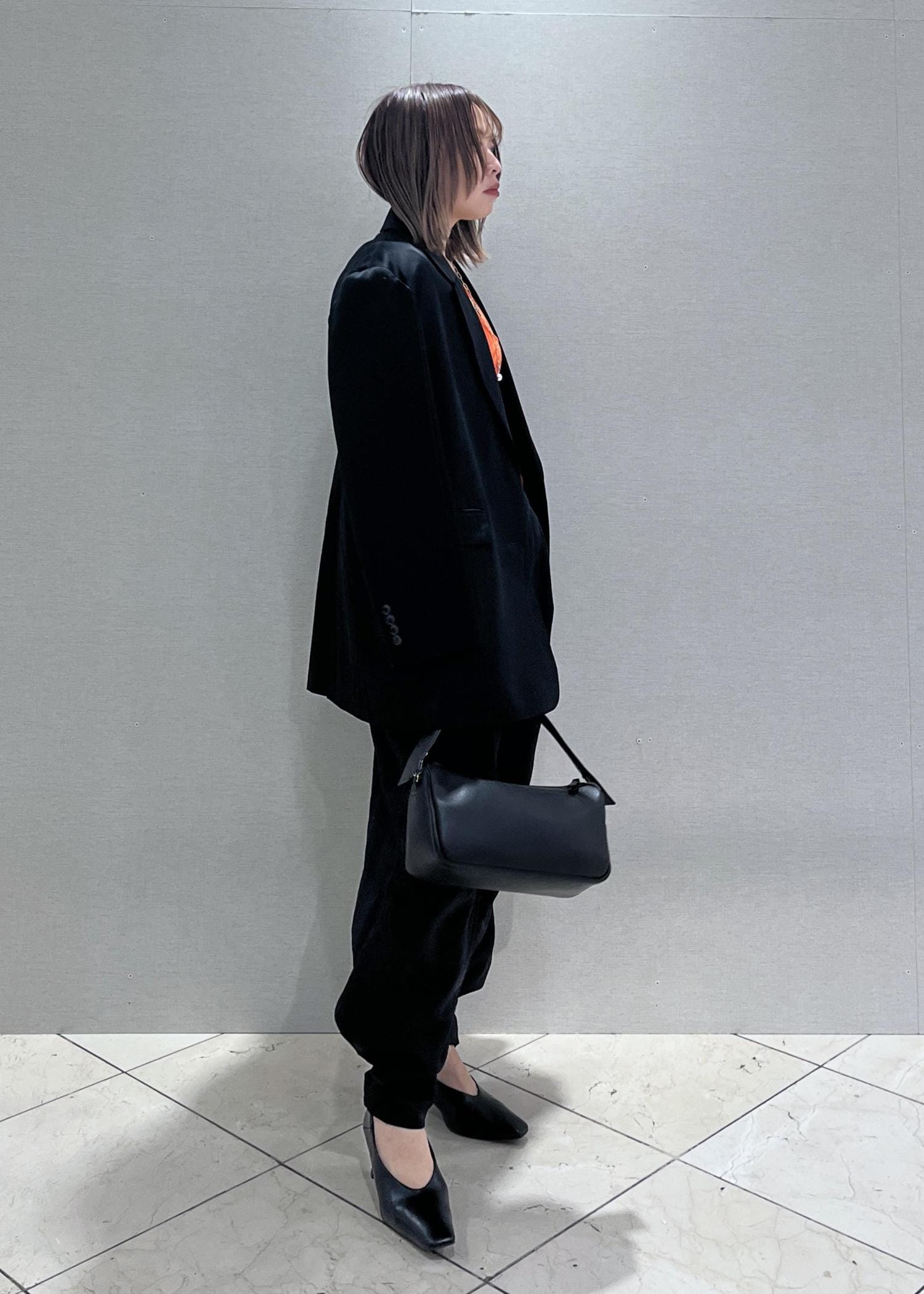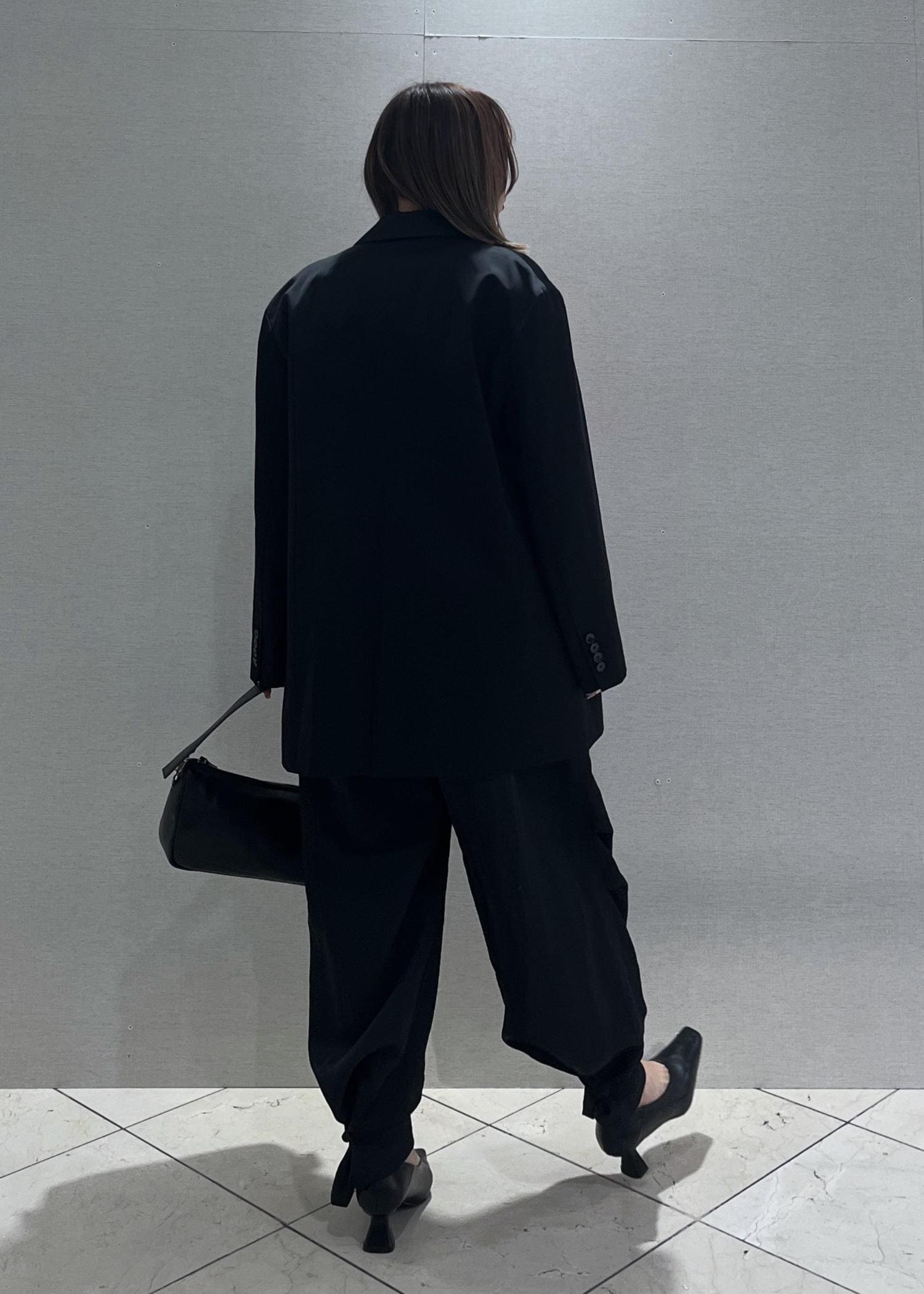 ADAM ET ROPÉ FEMMEシルキーリラックスジャケットブラック / 38¥29,700レビューサタン生地の光沢感があるジャケットです。生地は少し硬めでしっかりしています!丈感は長めですが肩のラインはオーバーすぎずきちんと感もあります。