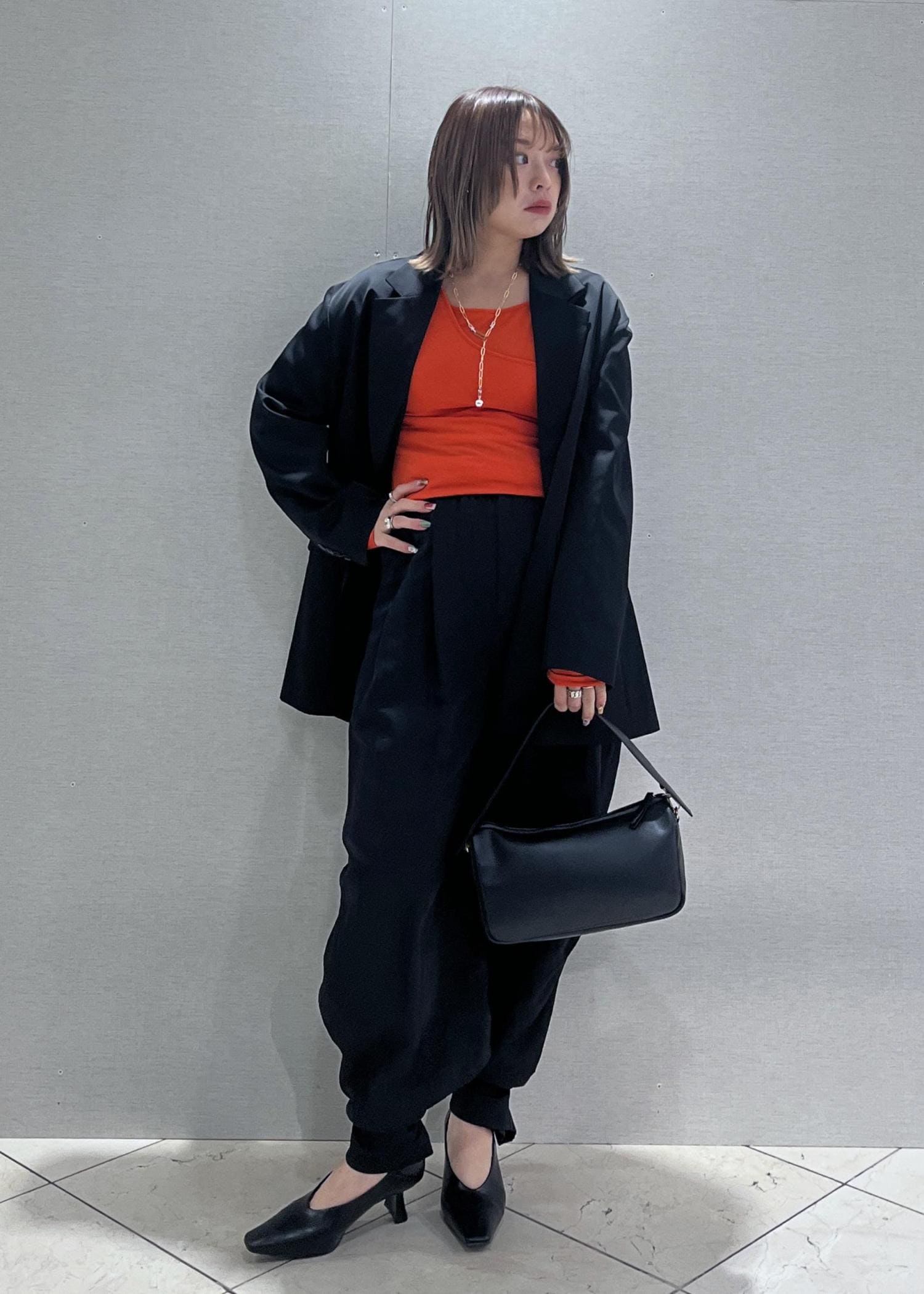 今回はトップスとボトムスはカジュアルに、ジャケットとヒールで外したTheモードコーデにしてみました♡