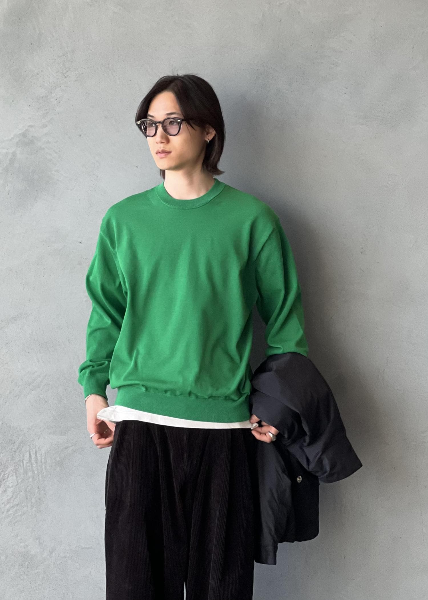ADAM ET ROPÉ HOMME強撚プレーティングニットプルオーバーグリーン / M¥12,100レビューハイゲージでやや薄手。シャリ感があります。