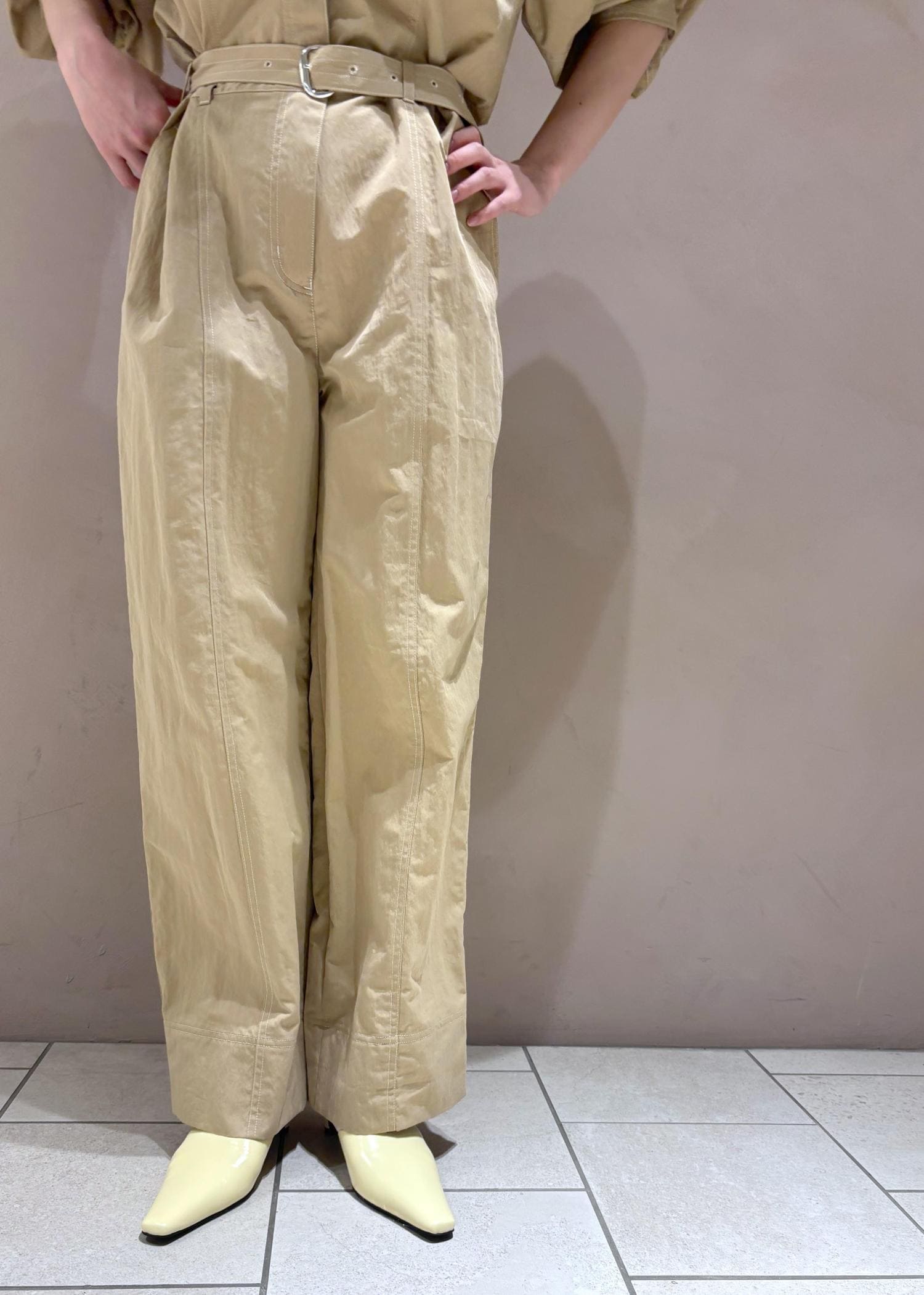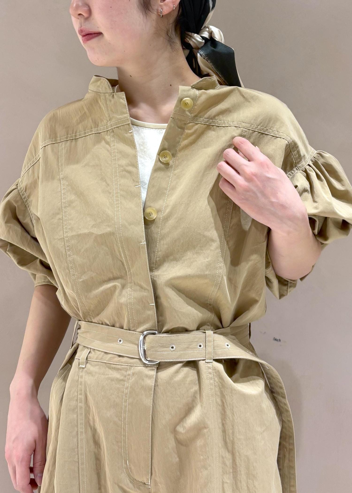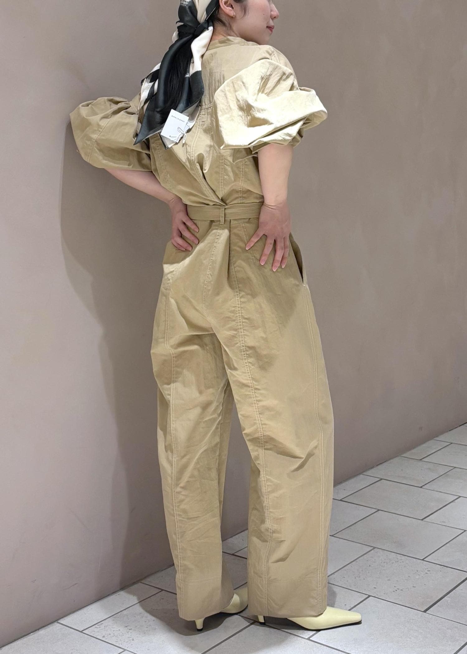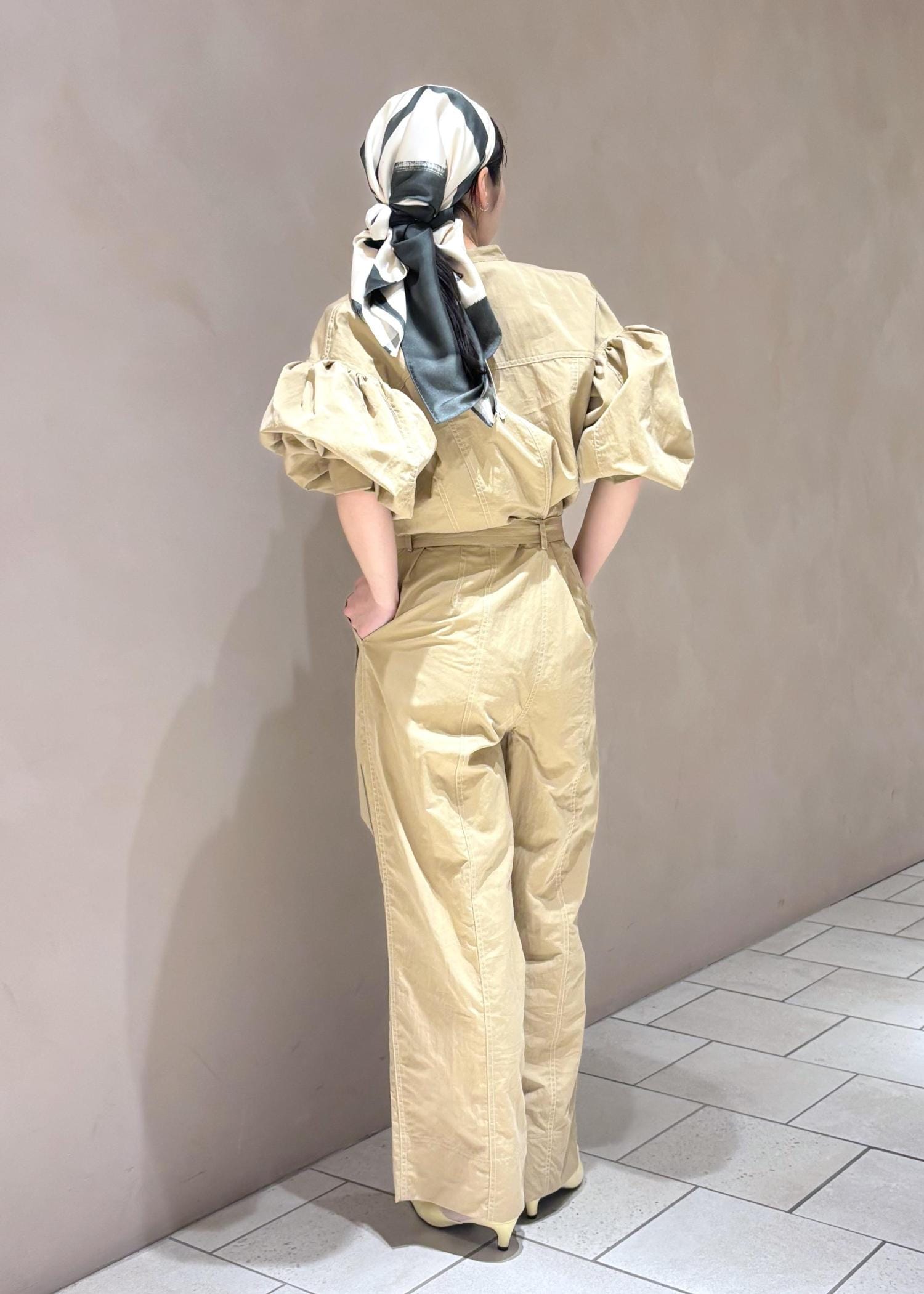EMOELLE【EMOELLE】パフスリーブオールインワンベージュ / 38¥41,800レビュー38だと丈が短すぎず、ベルトを閉めた時の丈感が丁度いい。