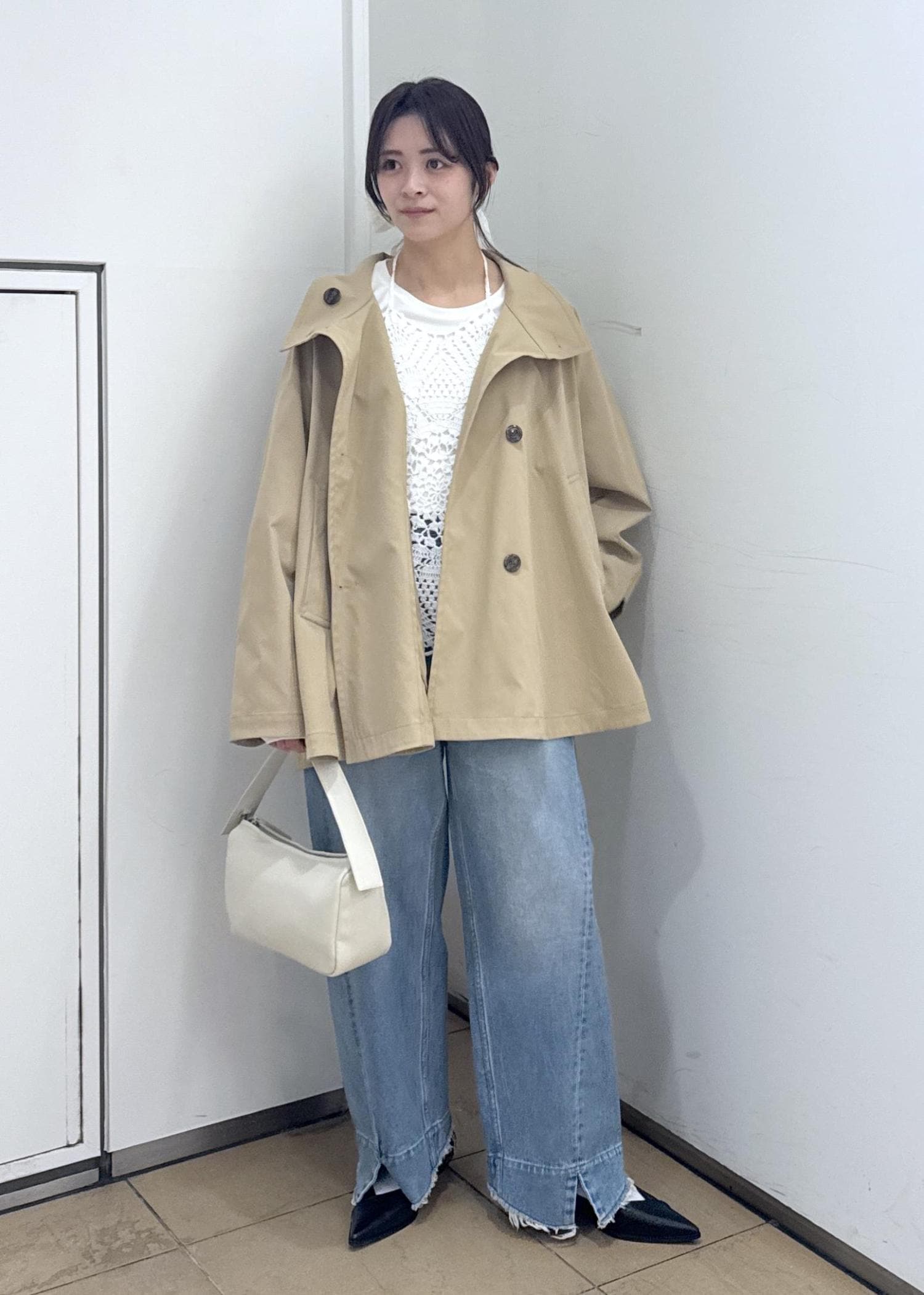 ADAM ET ROPÉ FEMMEフレアーミドルトレンチコートベージュ / F¥33,000レビュー軽くてさらっと着用していただけます。